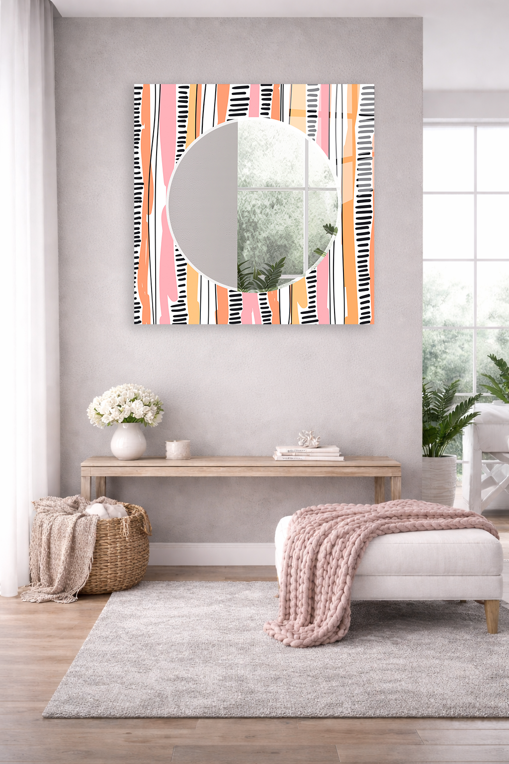 HEM TABLO HEM AYNA PASTEL RENKLİ FIRÇA DESEN CAM DUVAR AYNASI EV DEKORU