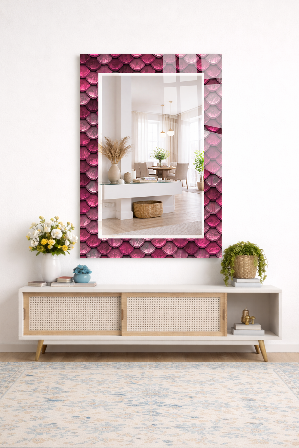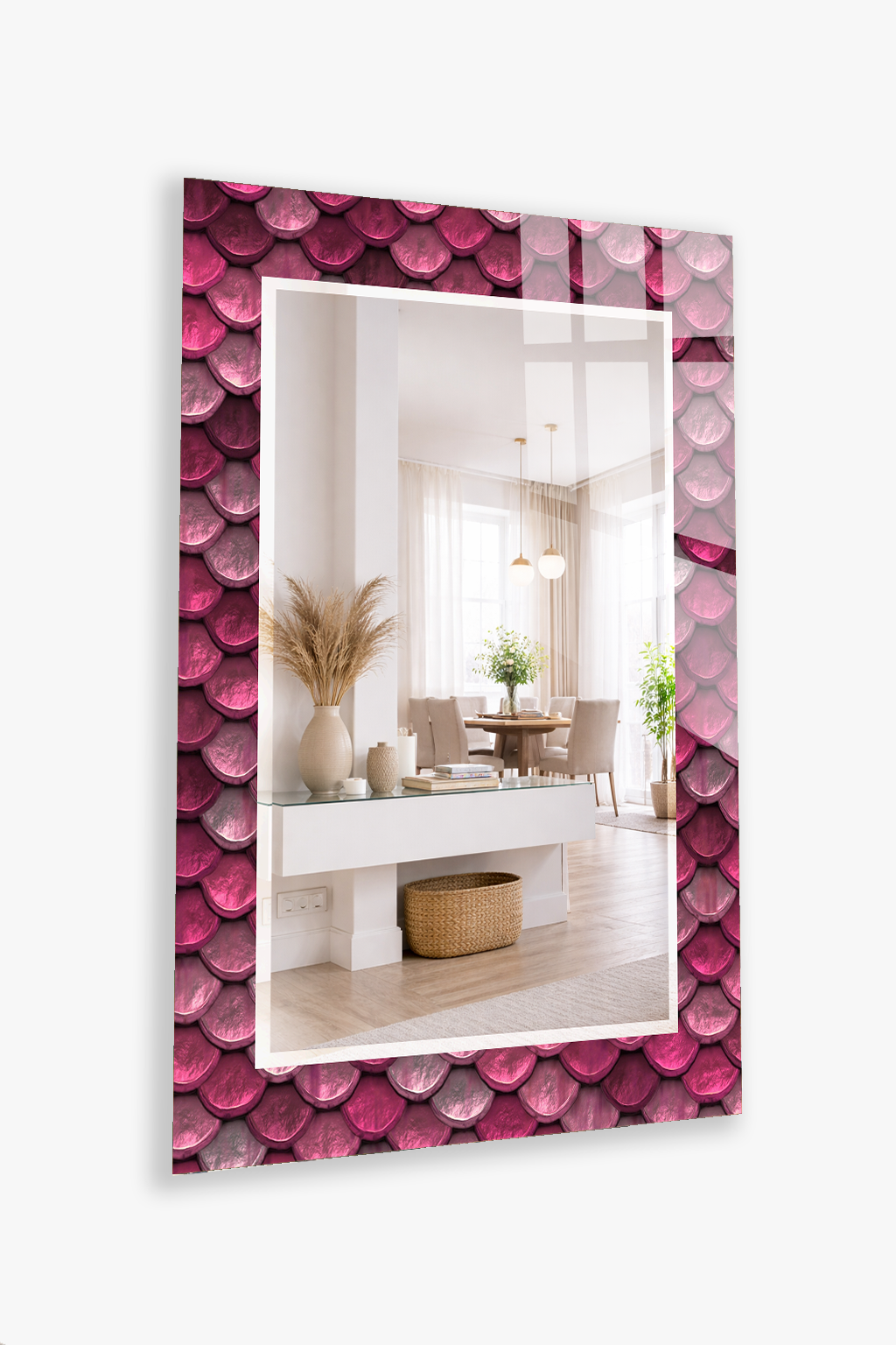 HEM TABLO HEM AYNA PEMBE BALIK PULU DESEN CAM DUVAR AYNASI EV DEKORU