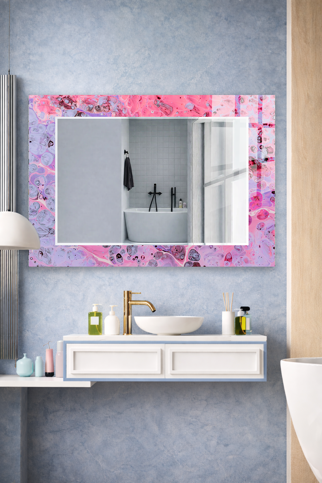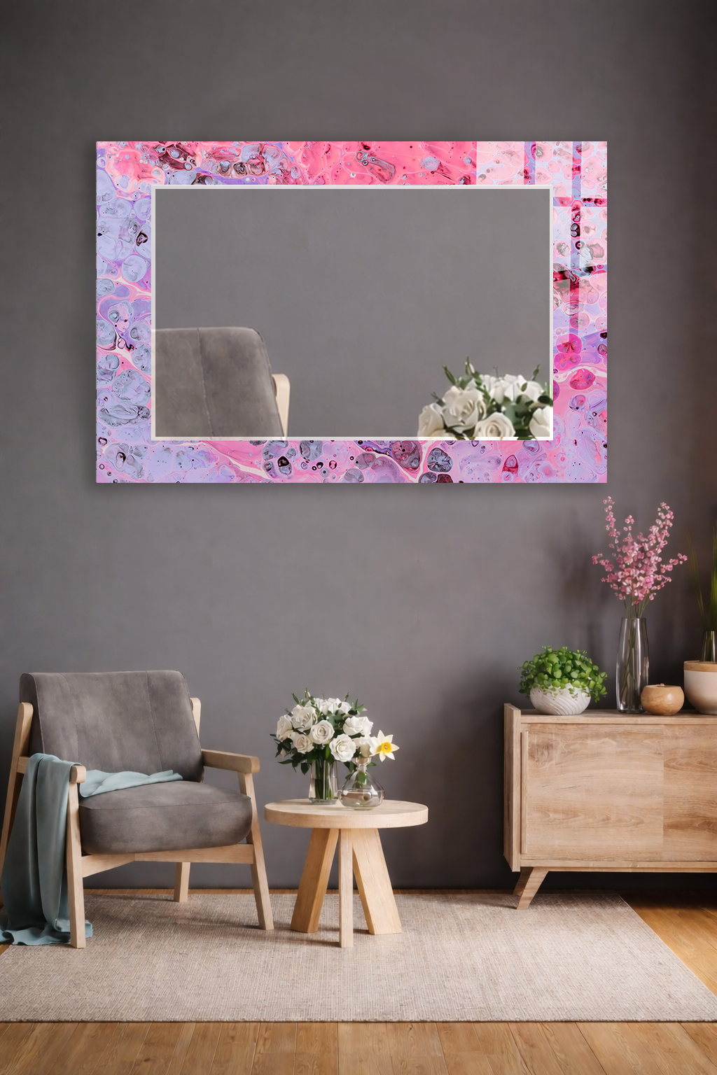 HEM TABLO HEM AYNA PEMBE SOYUT MERMER DESEN CAM DUVAR AYNASI EV DEKORU