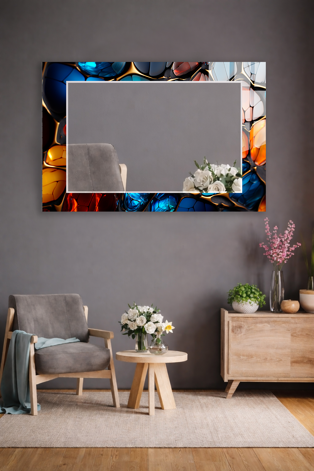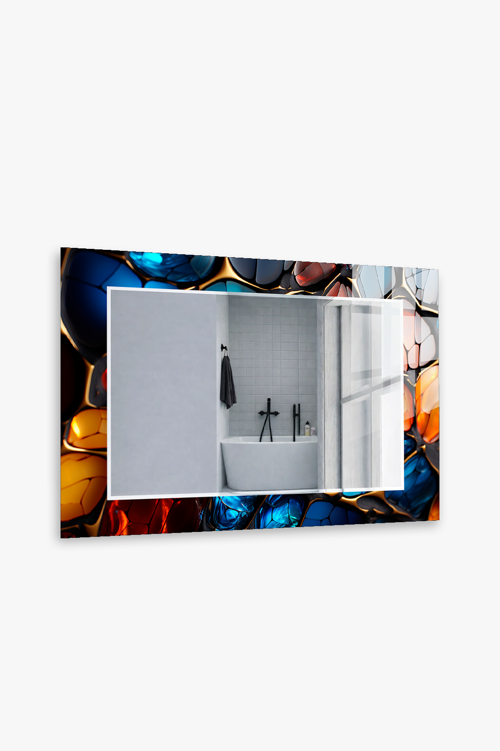 HEM TABLO HEM AYNA RENKLİ CAM MOZAİK SOYUT DESEN CAM DUVAR AYNASI EV DEKORU