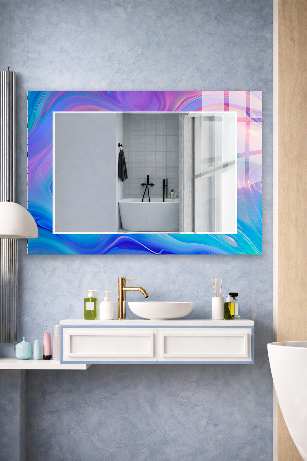HEM TABLO HEM AYNA RENKLİ DALGA SOYUT SANAT CAM DUVAR AYNASI EV DEKORU
