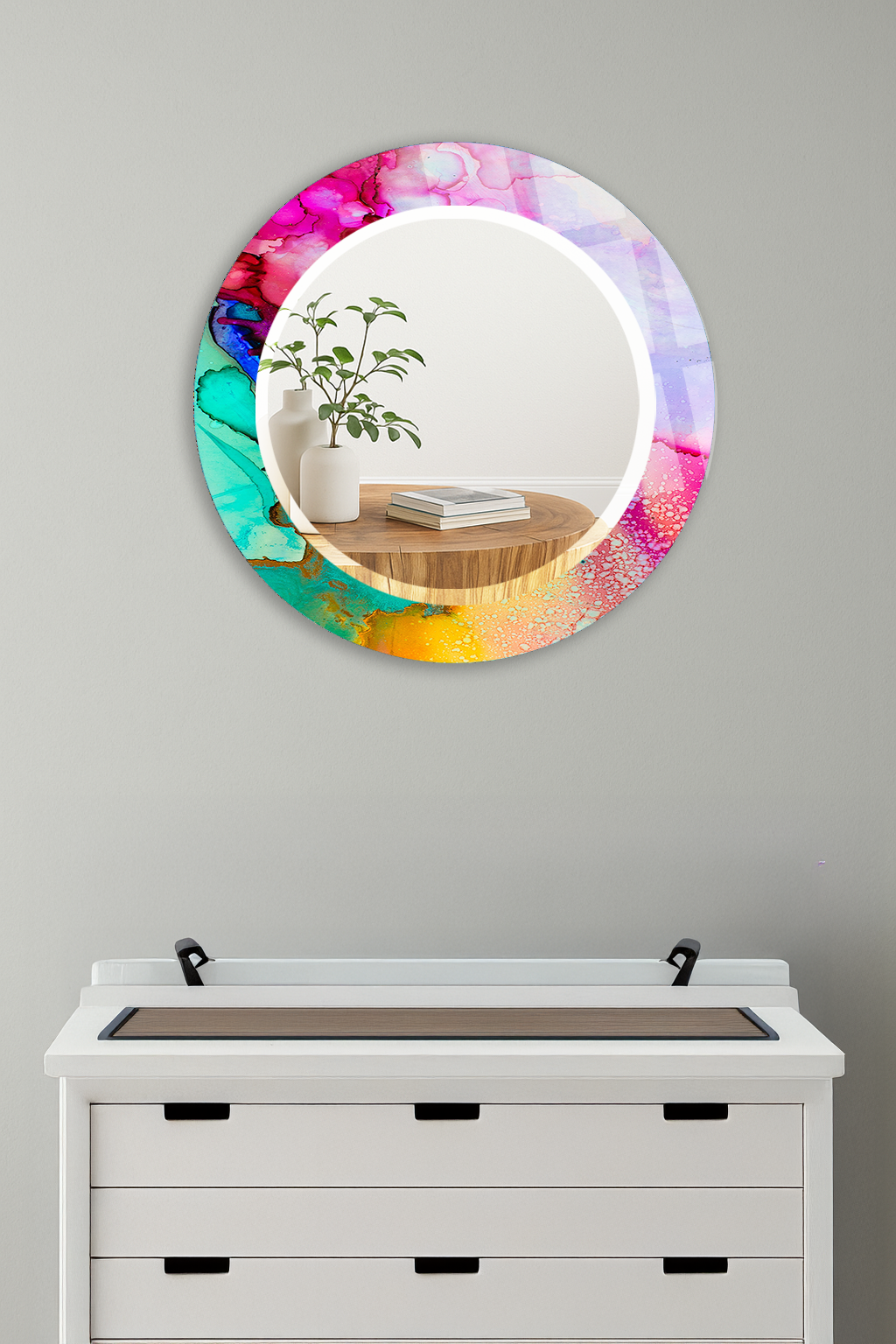 HEM TABLO HEM AYNA RENKLİ MERMER EFEKT DESENLİ DEKORATİF CAM DUVAR AYNASI BANYO VE EV DEKORU