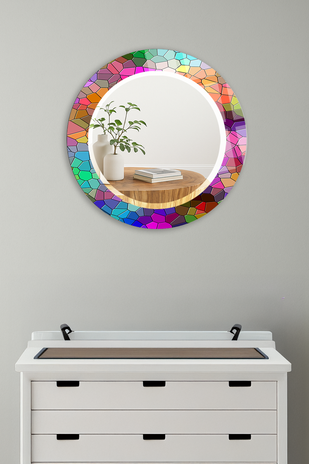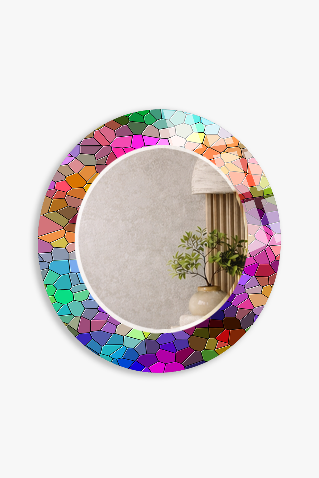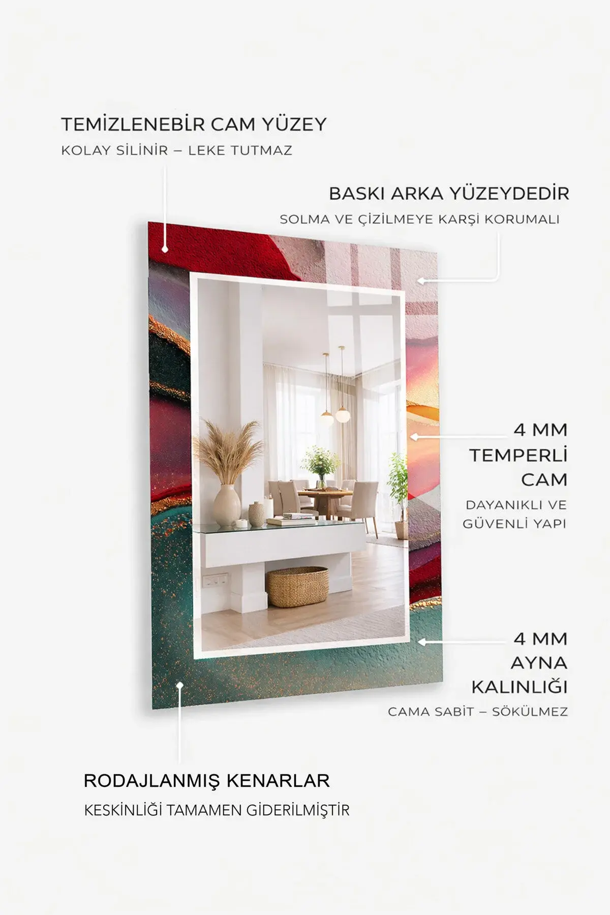 HEM TABLO HEM AYNA RENKLİ MOZAİK MODERN DESEN CAM DUVAR AYNASI EV DEKORU