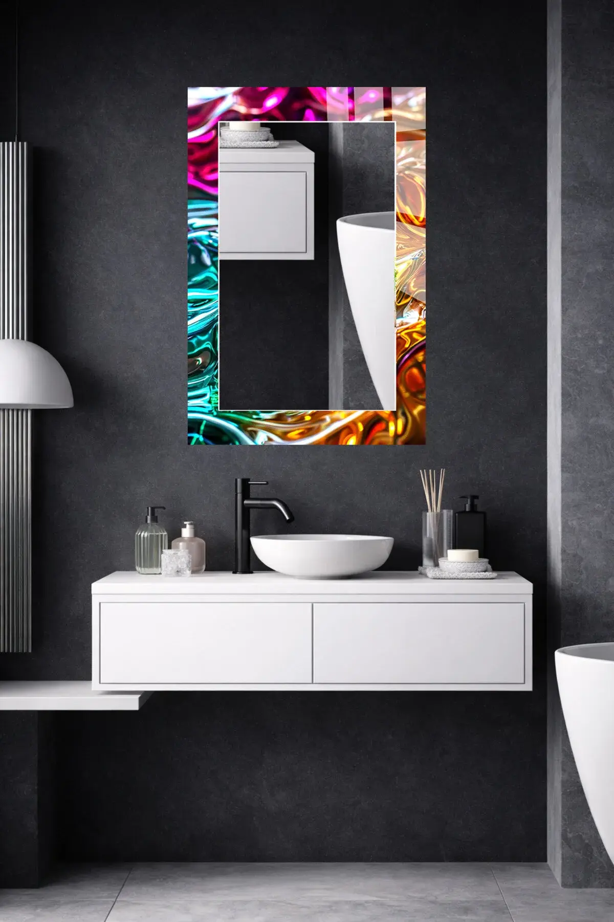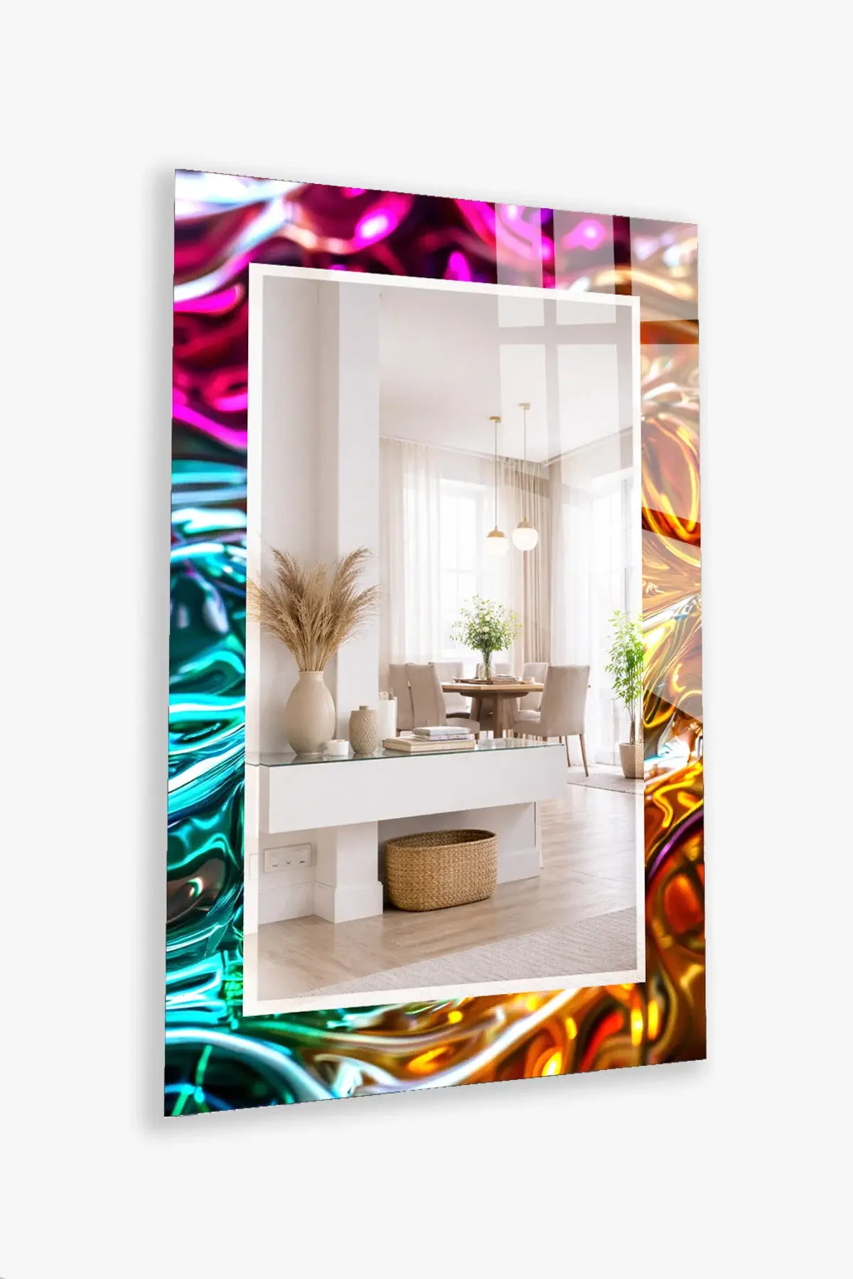 HEM TABLO HEM AYNA RENKLİ SOYUT TASARIM CAM DUVAR AYNASI EV DEKORU