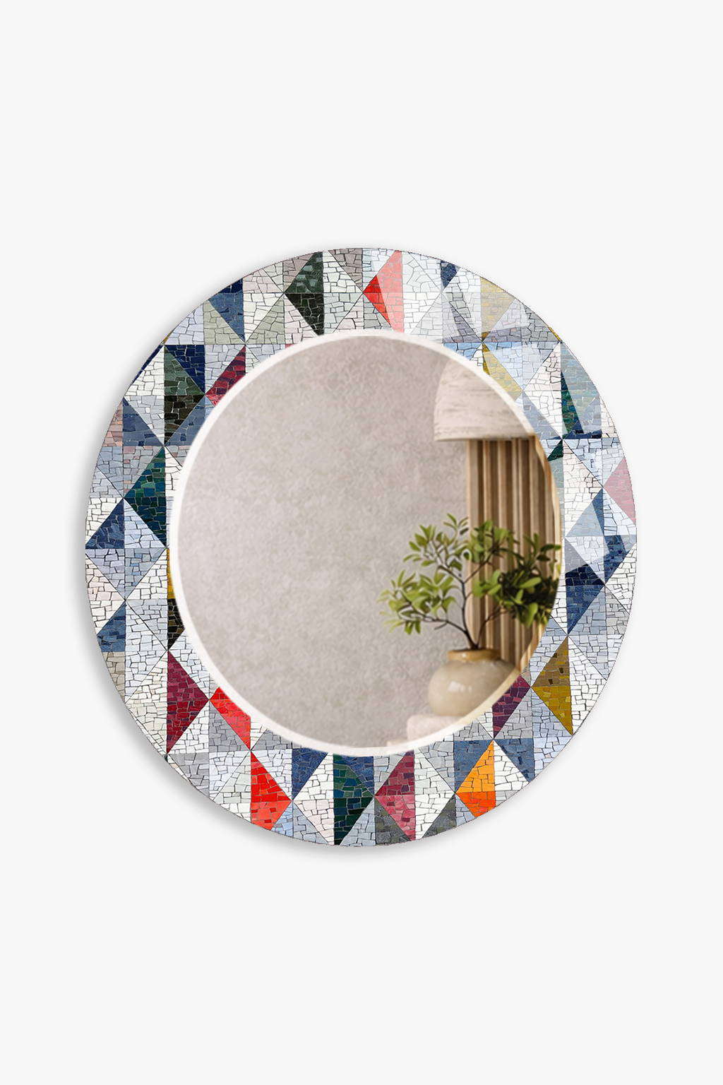 HEM TABLO HEM AYNA RENKLİ ÜÇGEN MOZAIK TASARIMLI CAM DUVAR AYNASI BANYO VE EV DEKORU