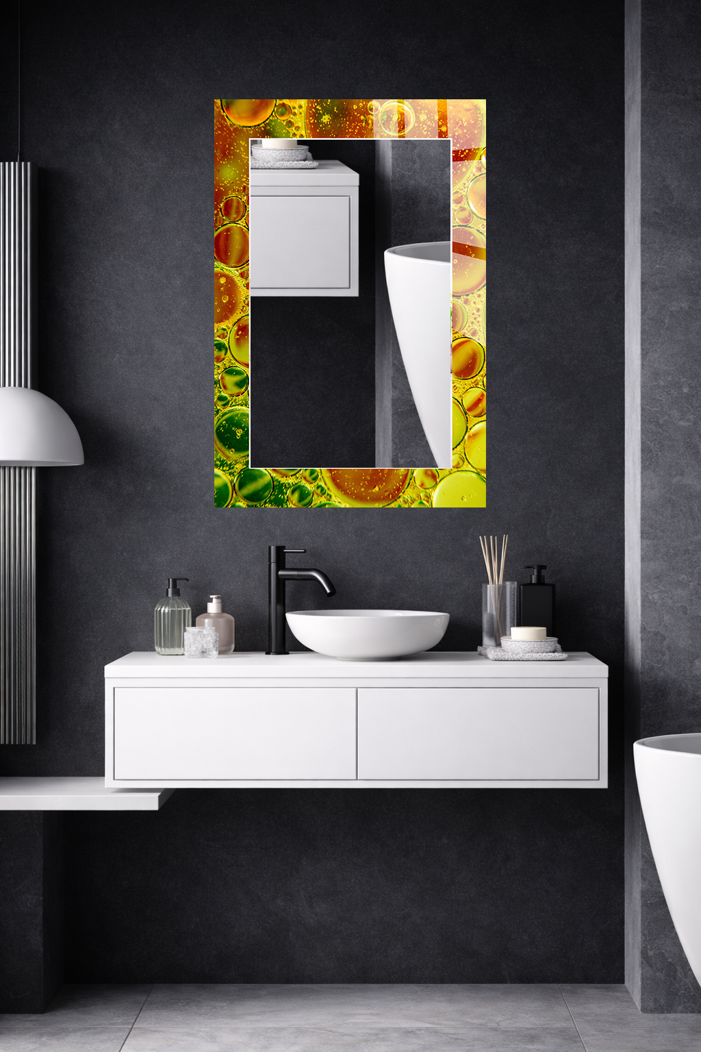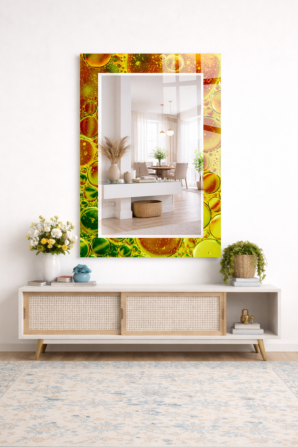 HEM TABLO HEM AYNA SARI YEŞİL SIVI DAMLA SOYUT CAM DUVAR AYNASI EV DEKORU