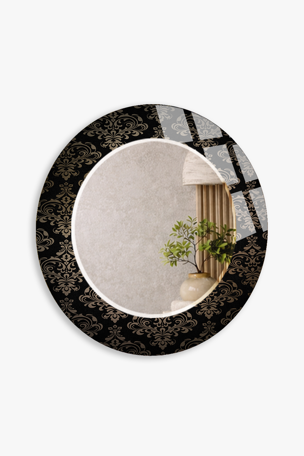 HEM TABLO HEM AYNA SİYAH GOLD DAMASK DESEN CAM DUVAR AYNASI EV DEKORU
