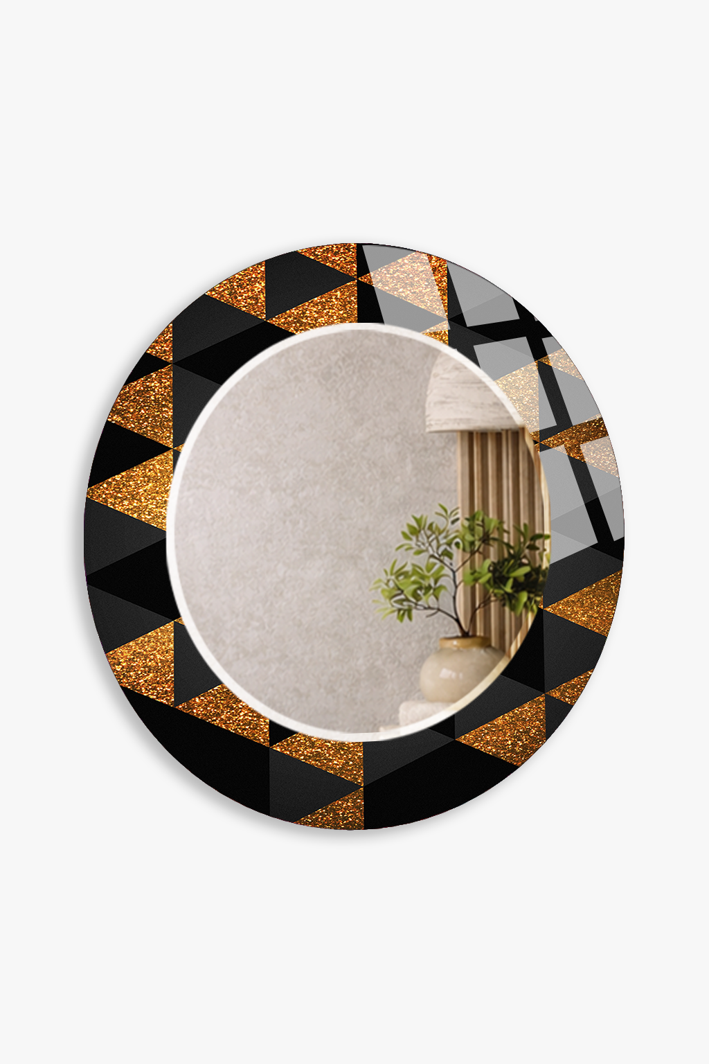 HEM TABLO HEM AYNA SİYAH GOLD GEOMETRİK ÜÇGEN DESEN CAM DUVAR AYNASI EV DEKORU