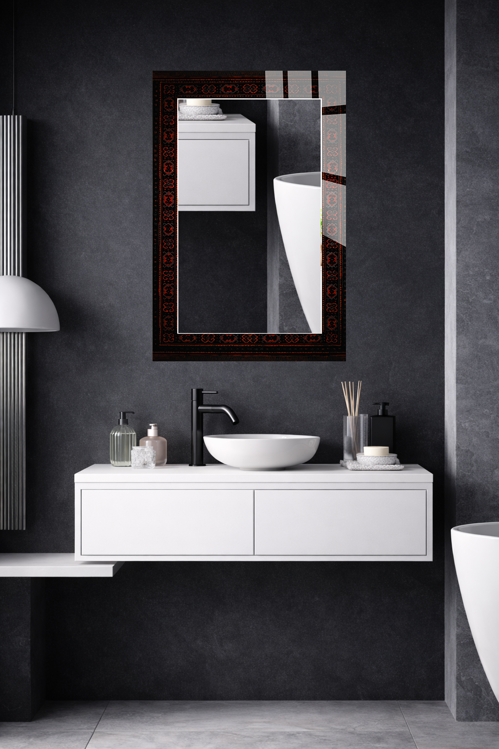 HEM TABLO HEM AYNA SİYAH KIRMIZI OSMANLI DESEN CAM DUVAR AYNASI EV DEKORU