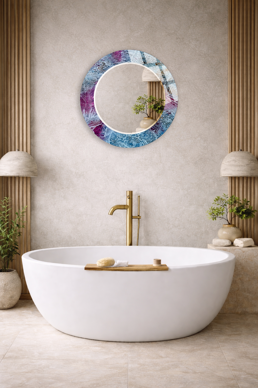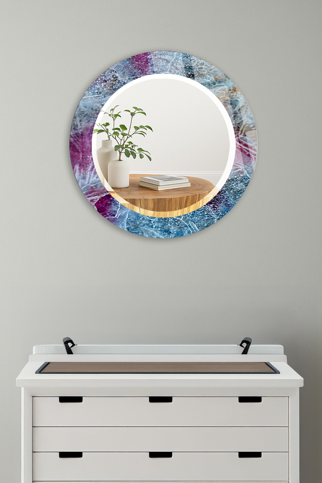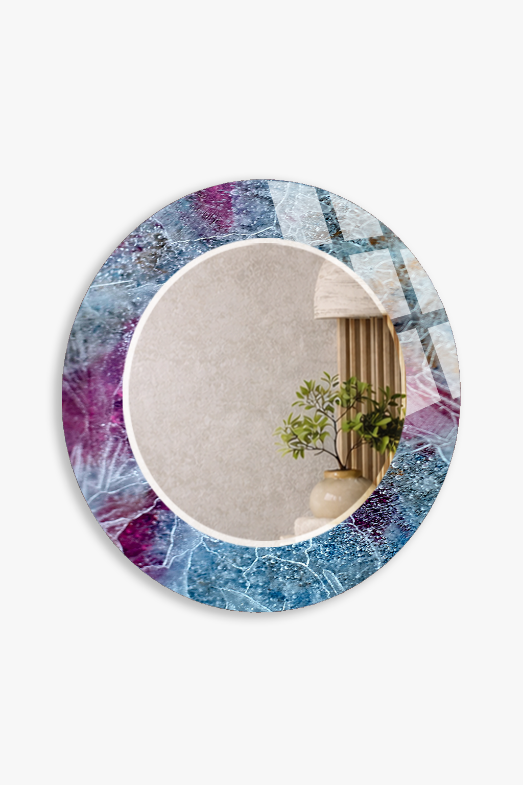 HEM TABLO HEM AYNA SOĞUK TON BUZ KRİSTAL DESEN CAM DUVAR AYNASI EV DEKORU