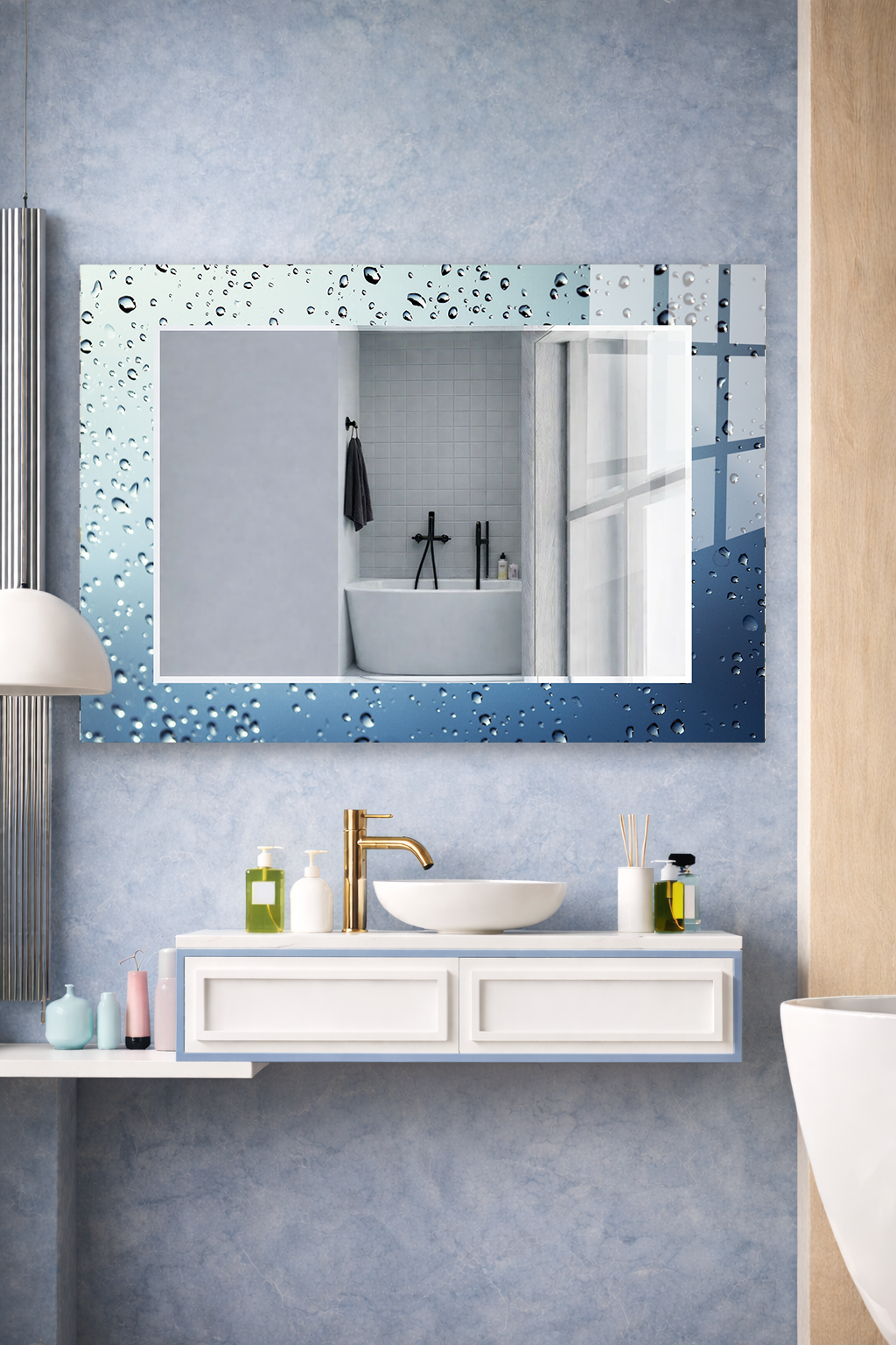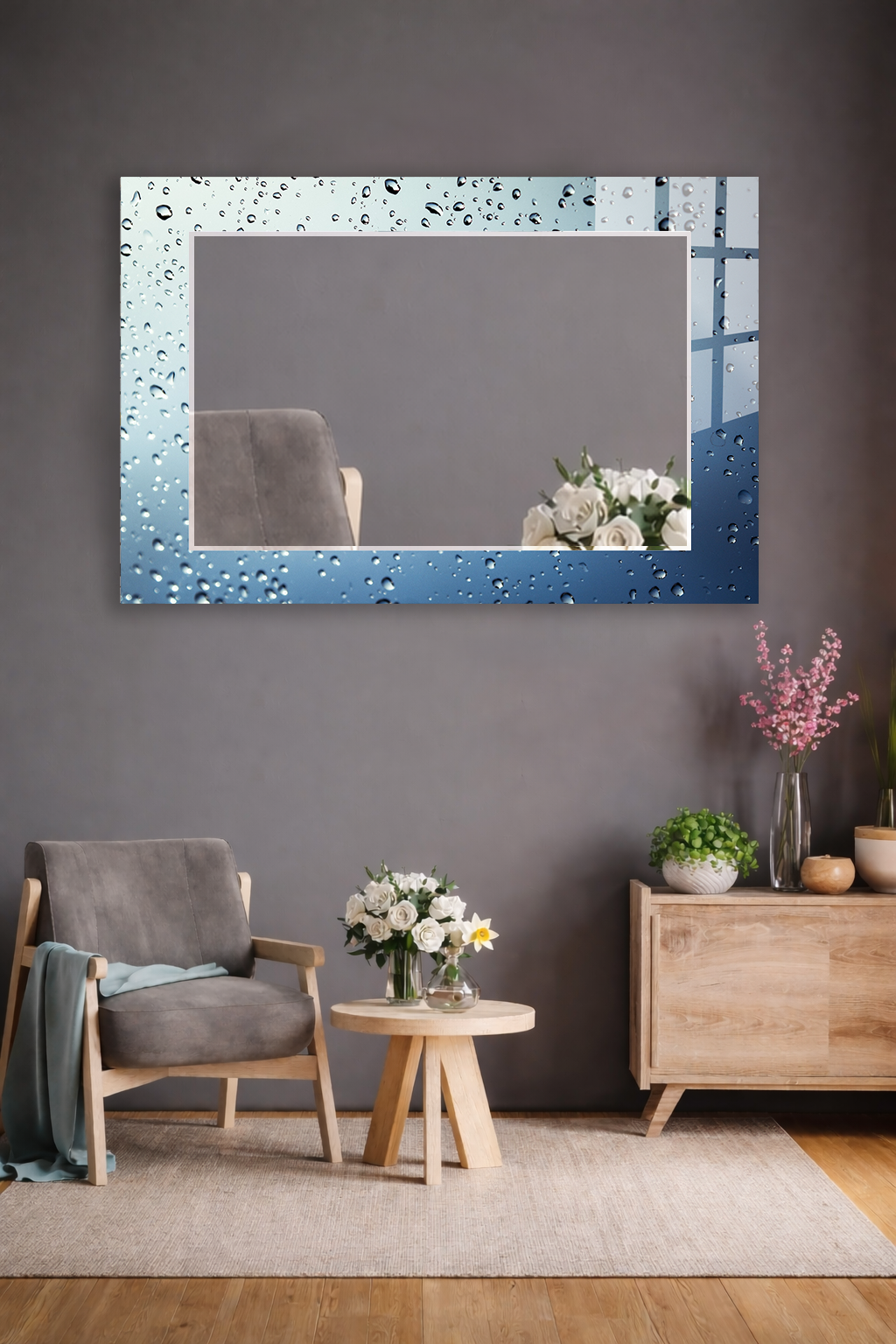 HEM TABLO HEM AYNA SU DAMLASI EFEKT DEKORATİF CAM DUVAR AYNASI EV DEKORU