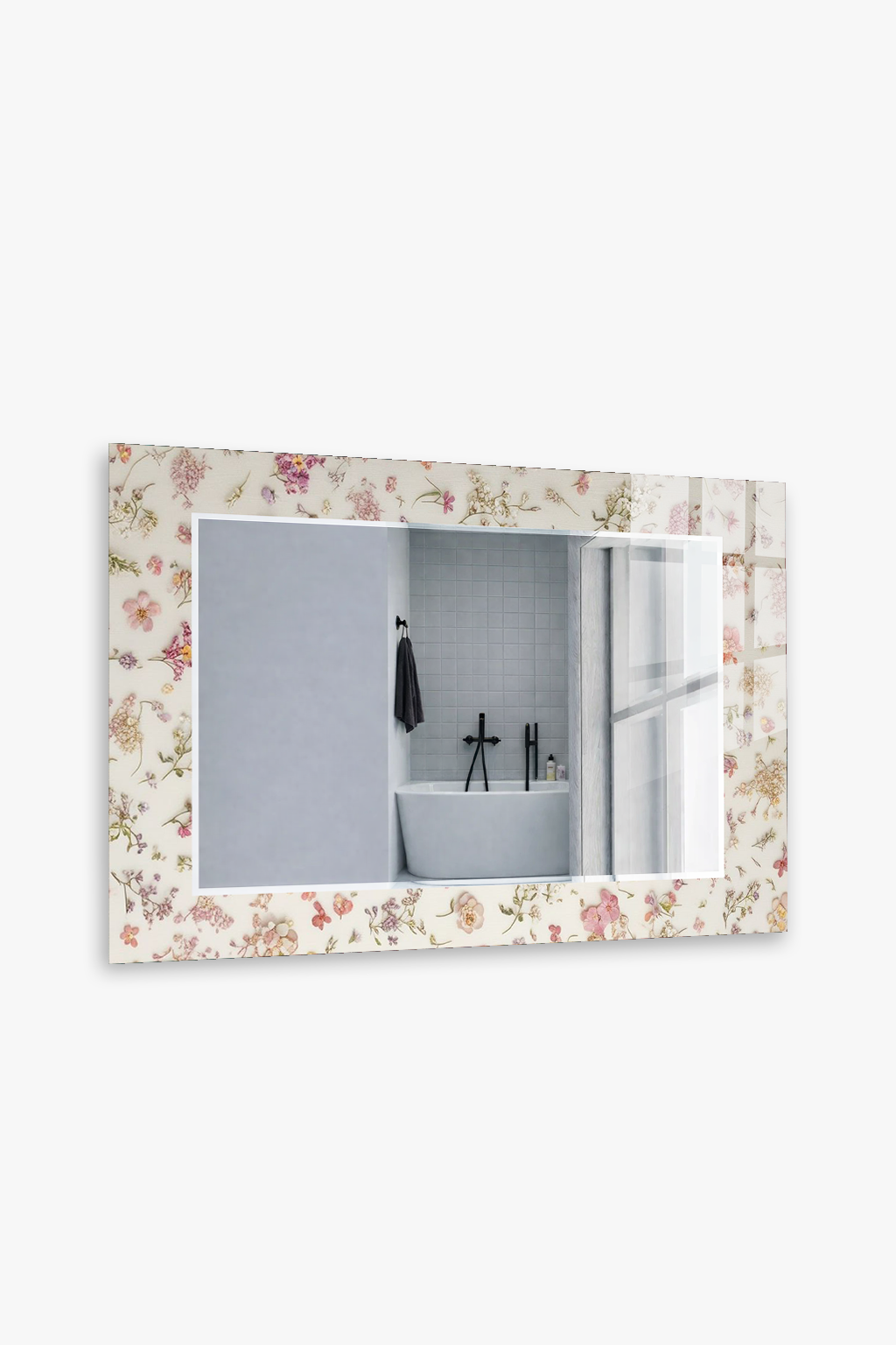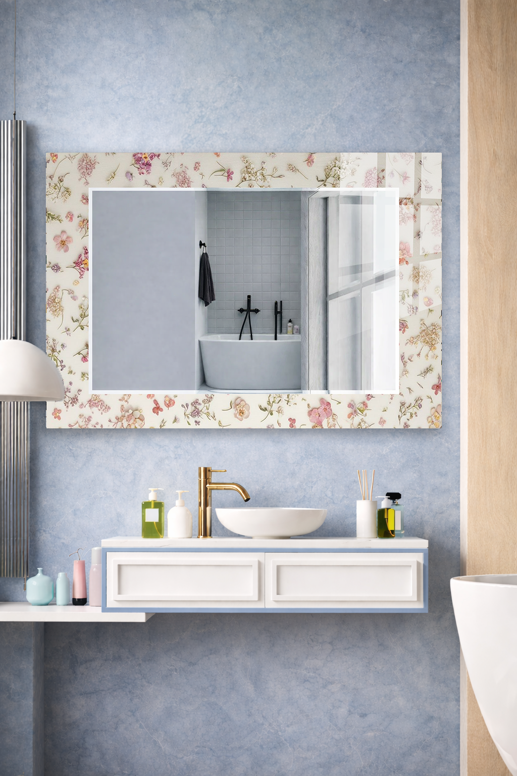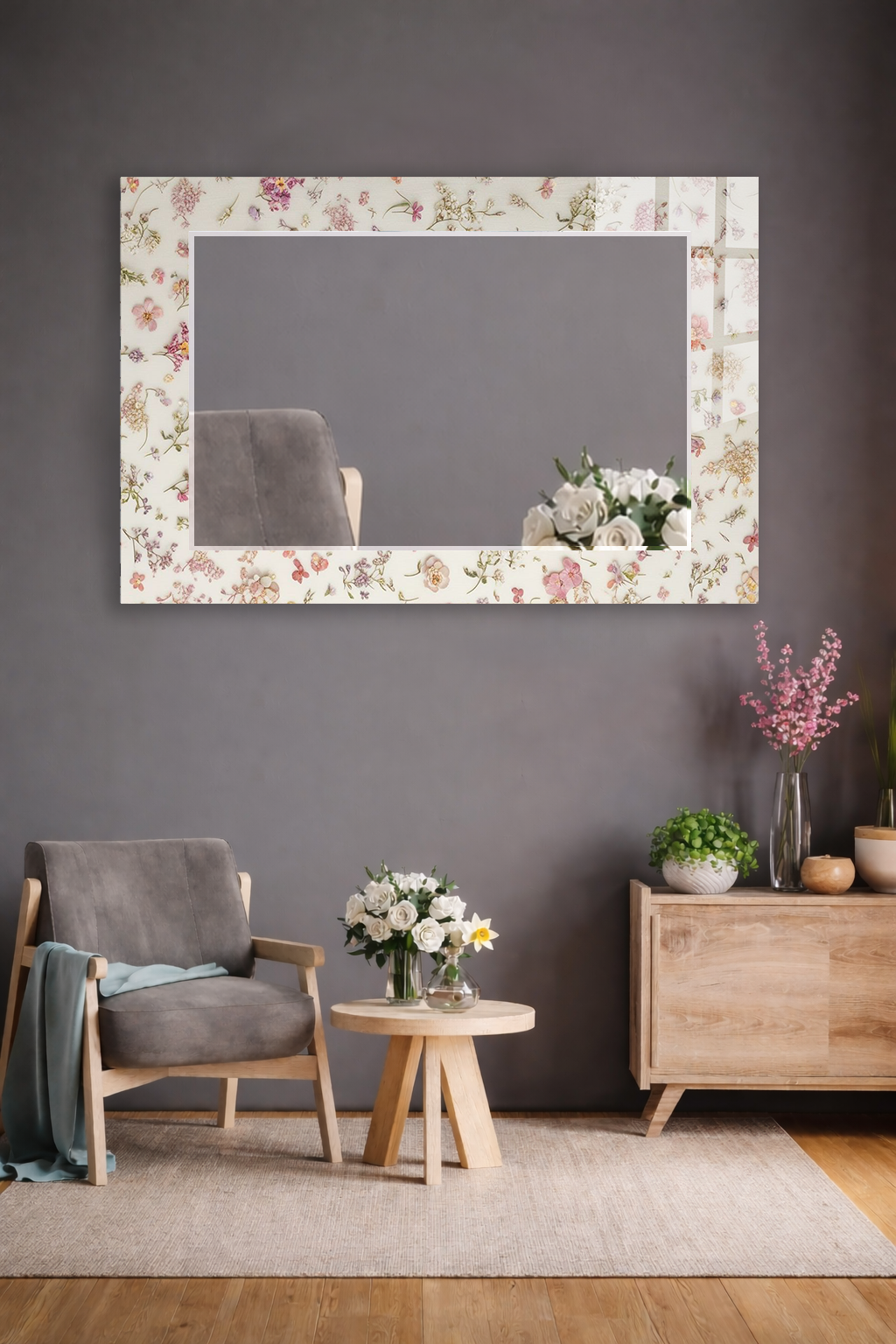 HEM TABLO HEM AYNA VİNTAGE ÇİÇEK DESEN DEKORATİF CAM DUVAR AYNASI EV DEKORU
