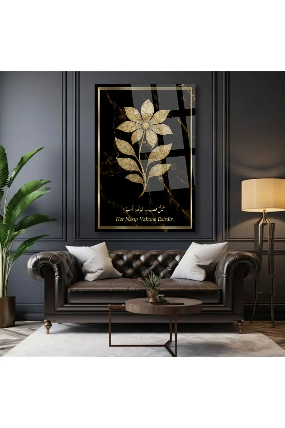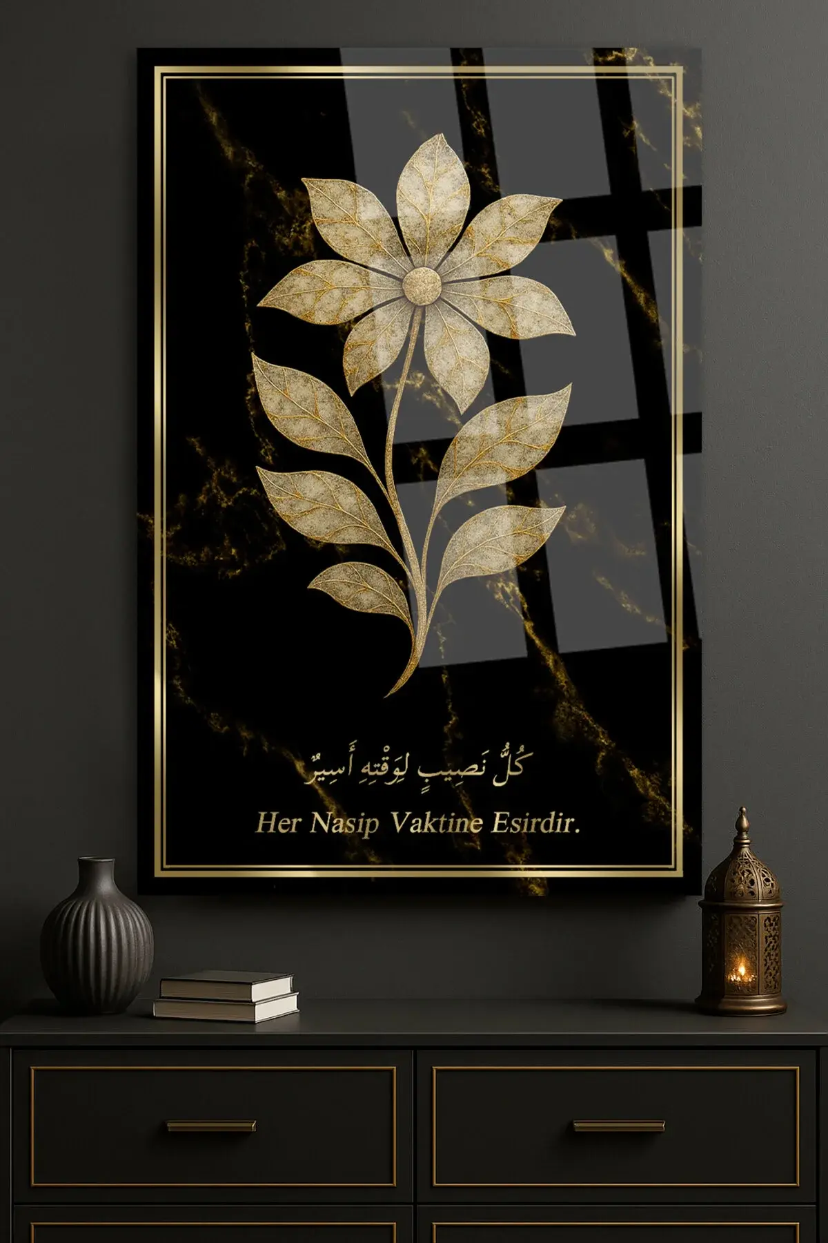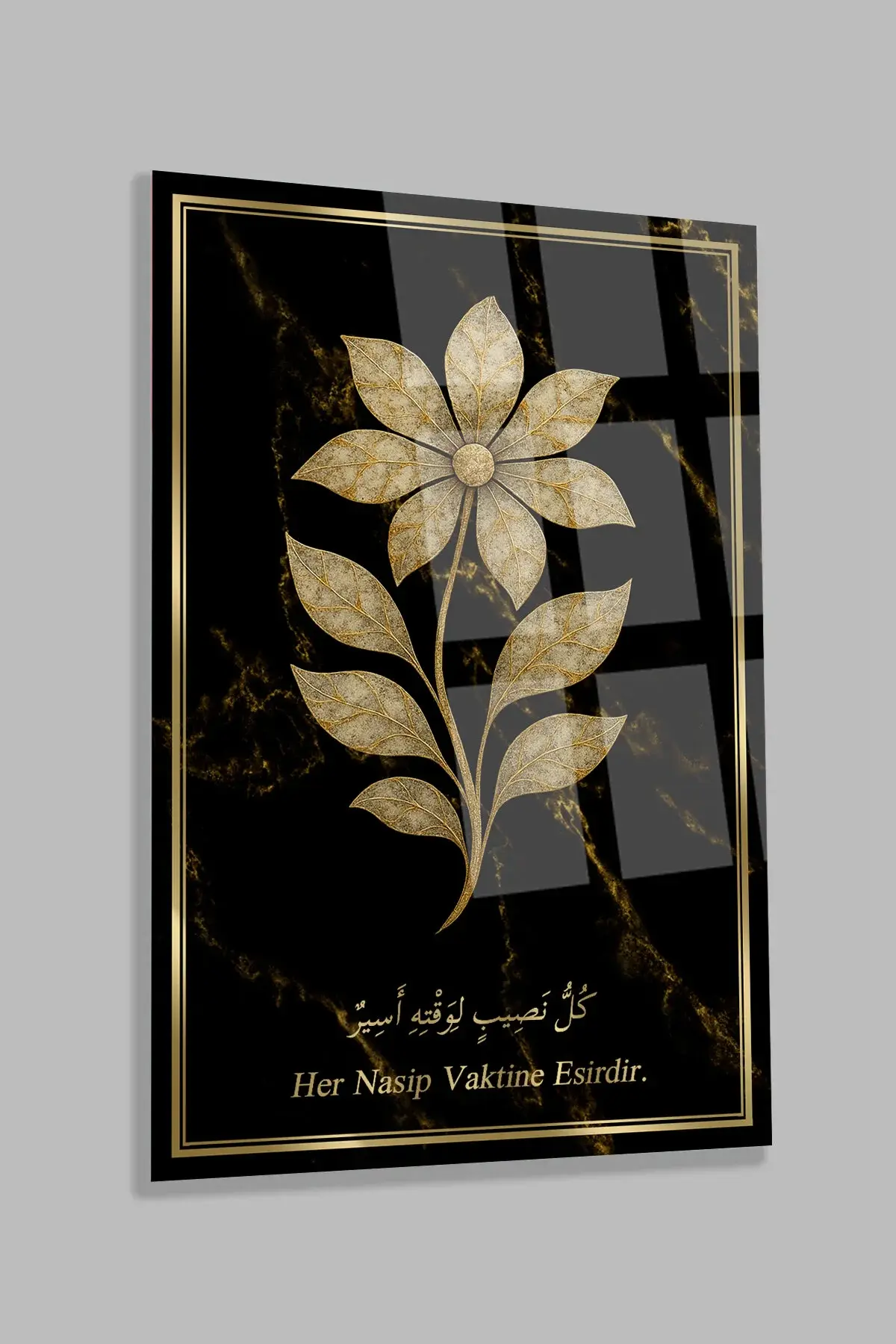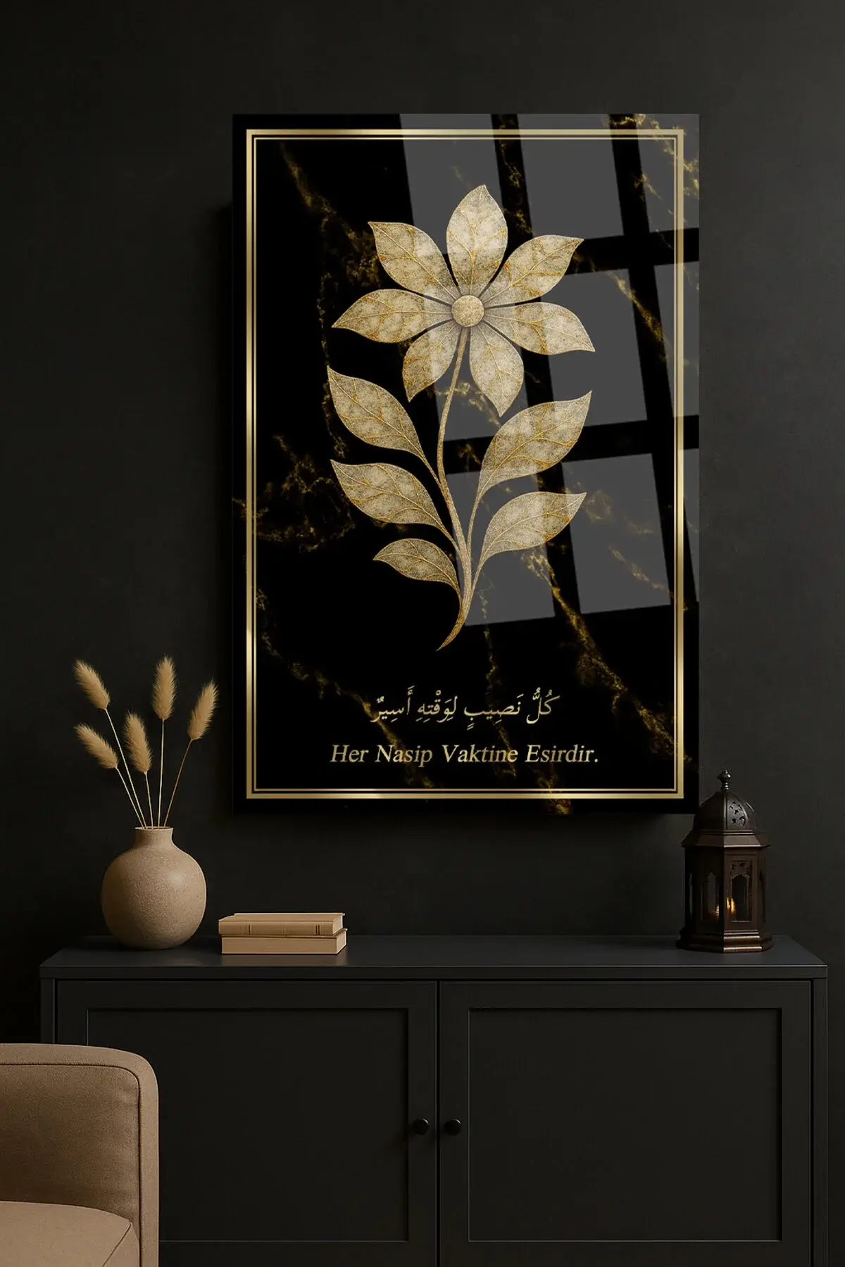 ''Her Nasip Vaktine Esirdir.'' Mermer Görünüm TABLO CAM TABLO EV HEDİYESİ ULTRA CANLI RENKLER Siyah