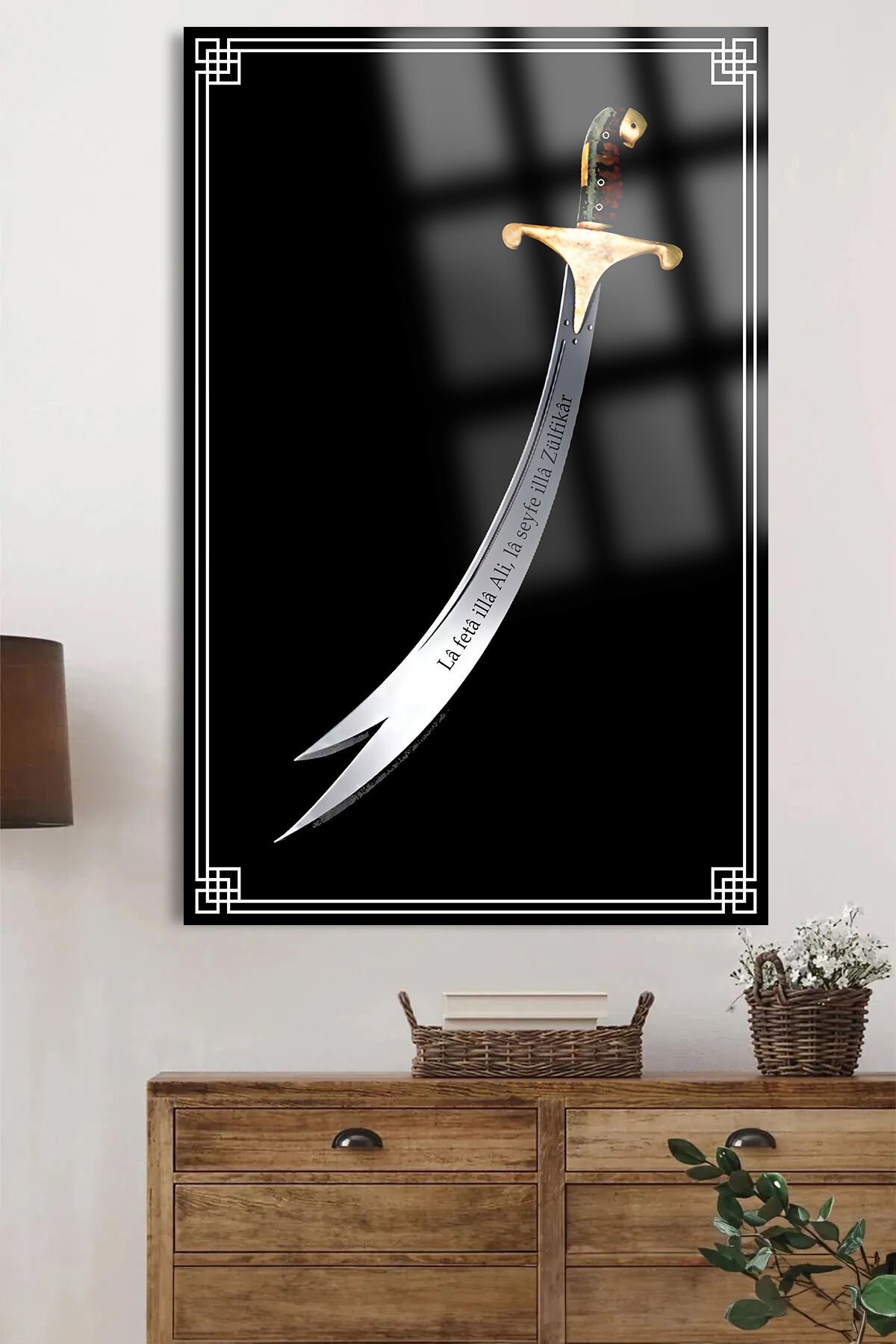 HZ.ALİ ZÜLFİKAR DİNİ İSLAMİ KIRILMAZ LÜKS CAM TABLO EV, İŞ YERİ, OFİS HEDİYESİ Siyah