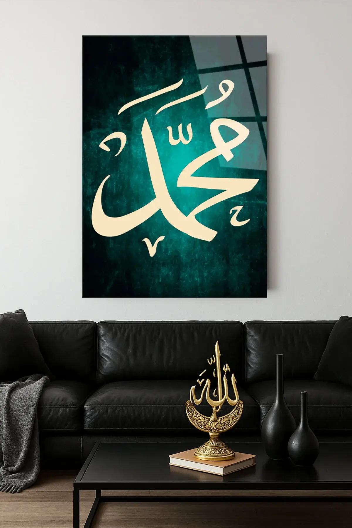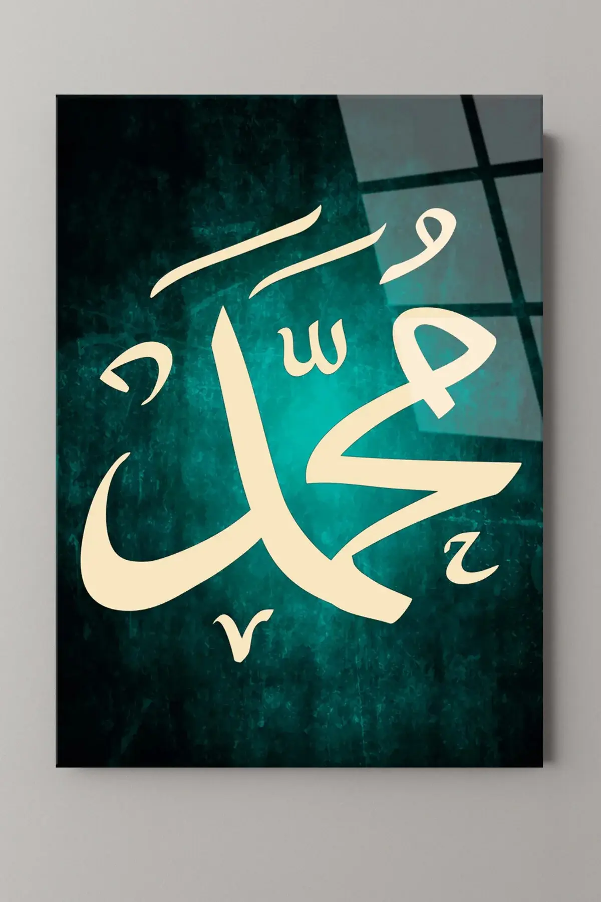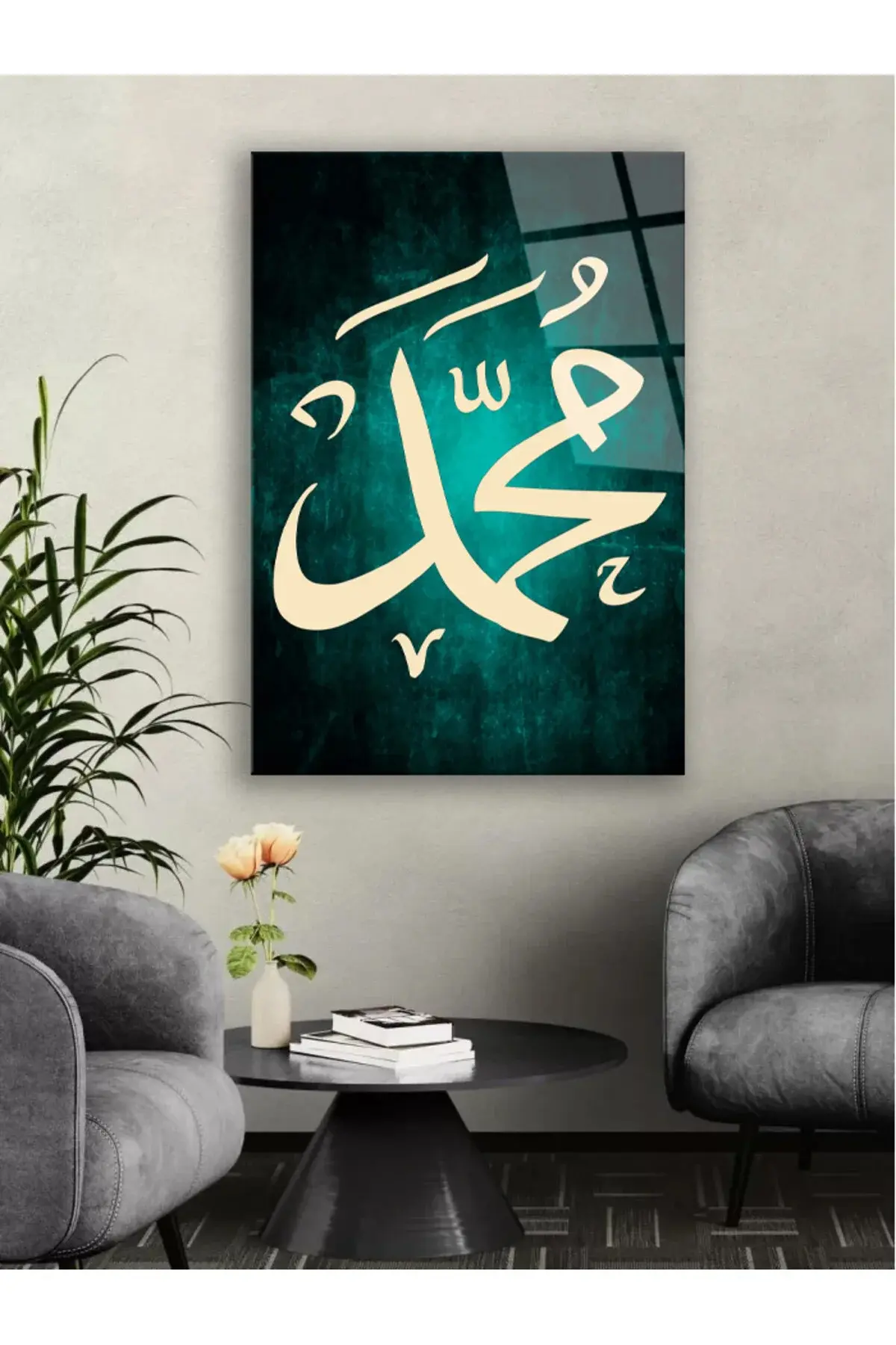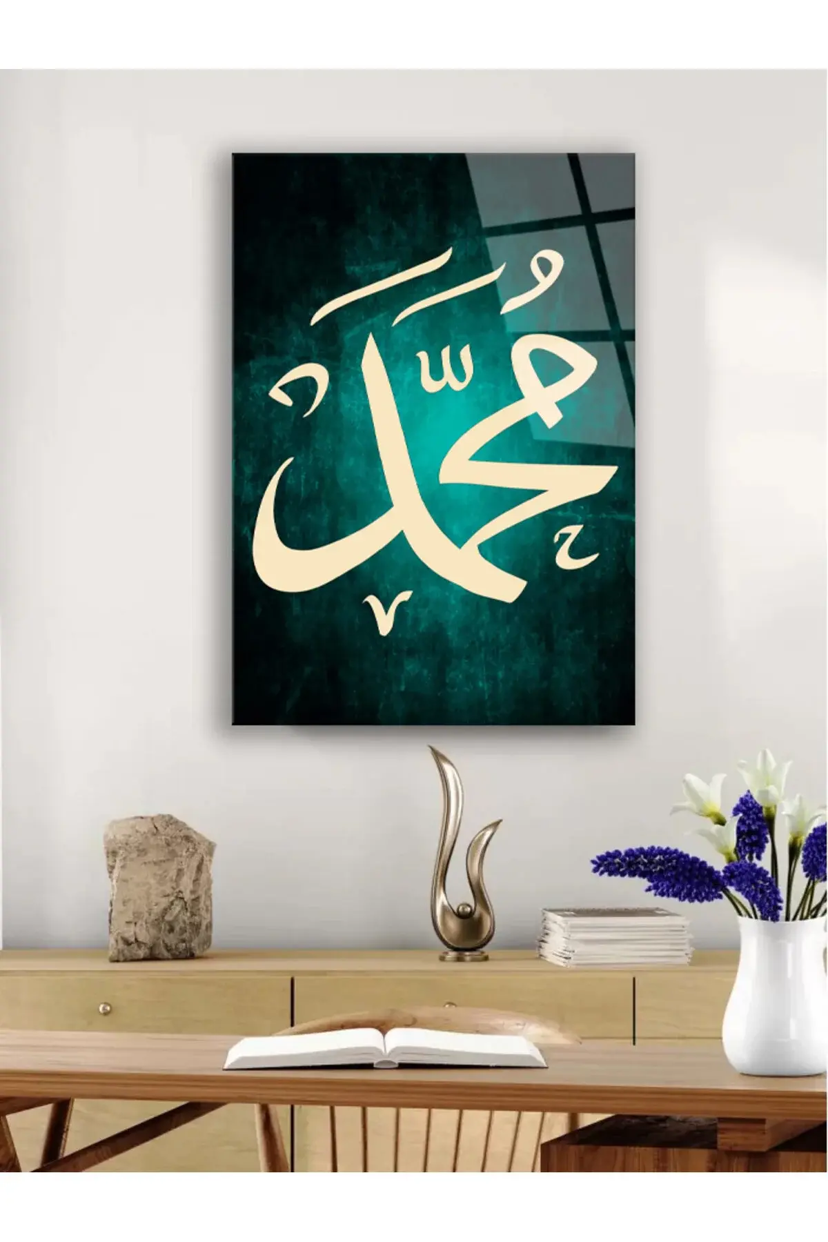HZ MUHAMMED DİNİ İSLAMİ CAM TABLO HARİKA TASARIM LÜKS MODERN KIRILMAZ CAM TABLO SETİ EV HEDİYESİ Yeşil