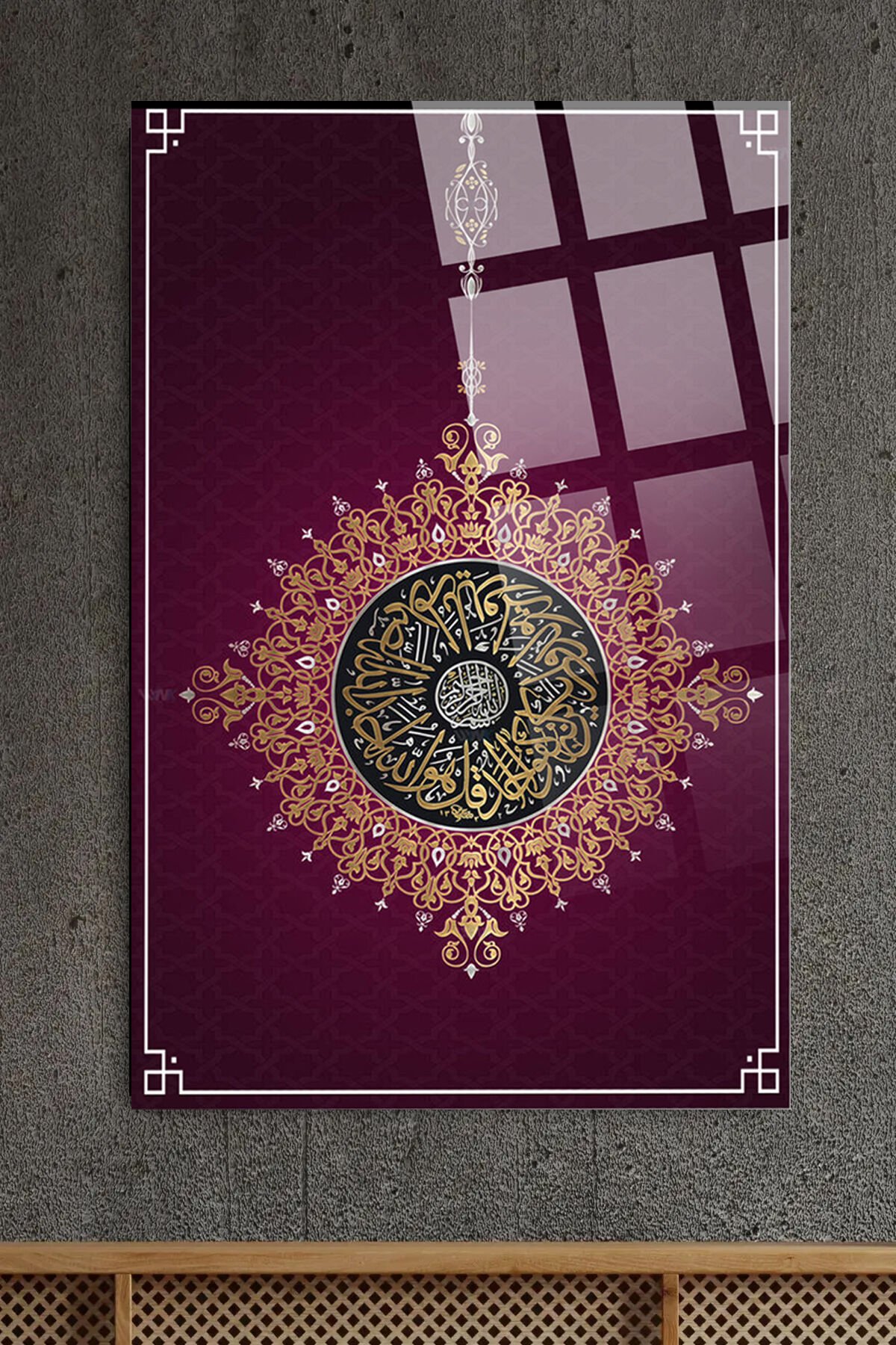 İhlas Suresi YAZILI LÜKS KIRILMAZ CAM TABLO EV, OFİS, İŞ YERİ HEDİYESİ DİNİ İSLAMİ CAM TABLO