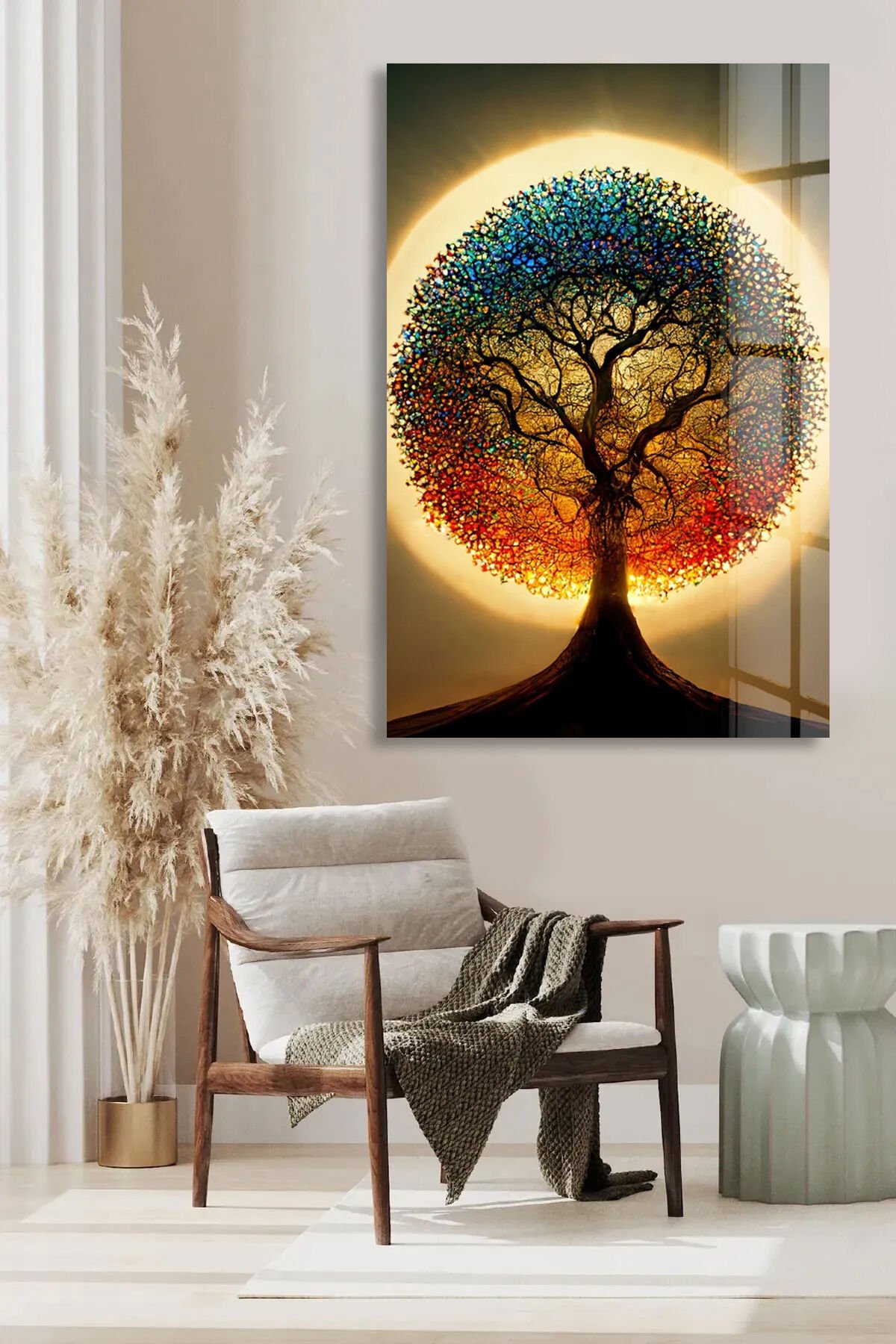 IŞIK SAÇAN AĞAÇ GÖRSELİ KIRILMAZ CAM TABLO EV HEDİYESİ İŞ YERİ HEDİYESİ LÜKS CAM TABLO
