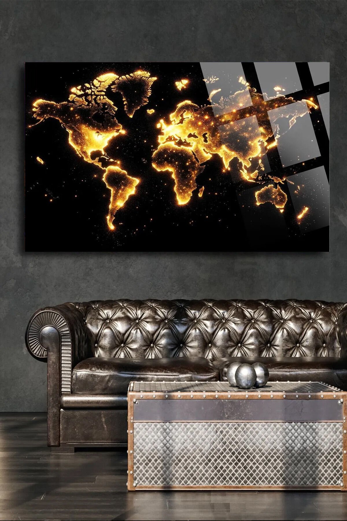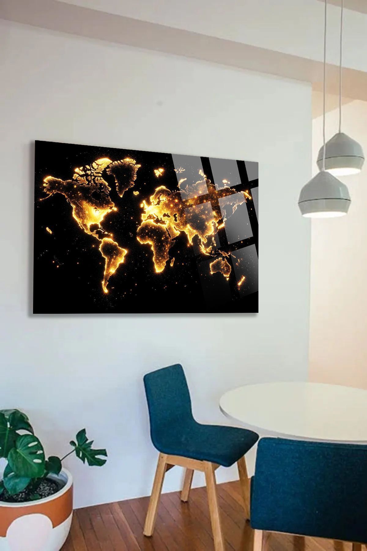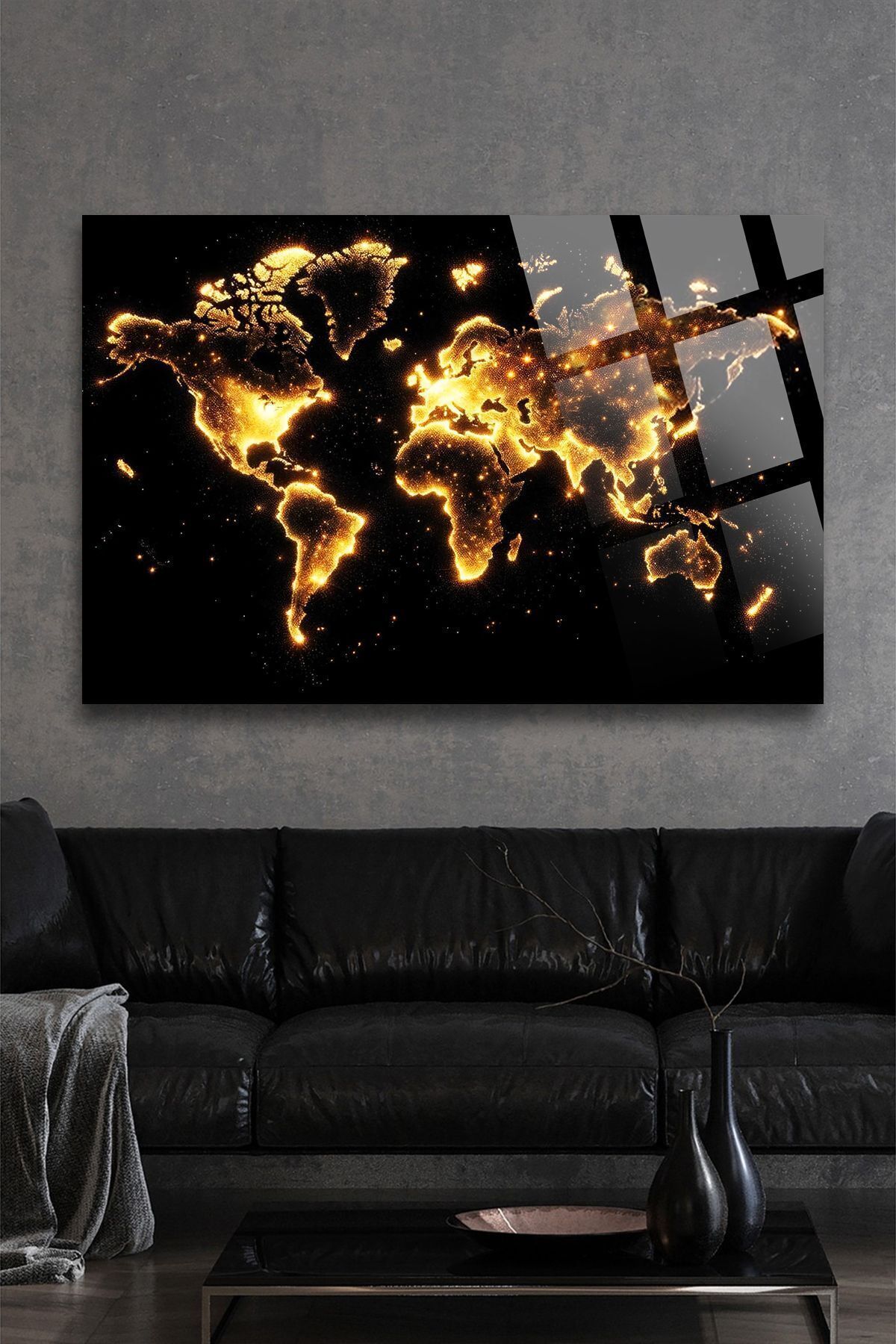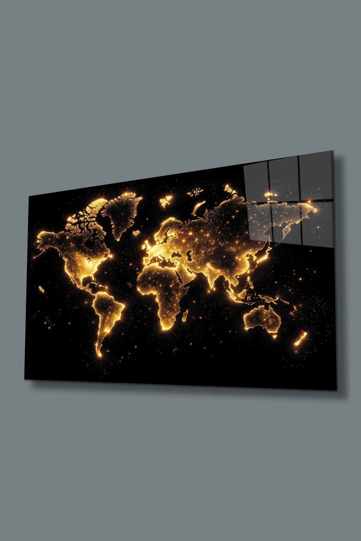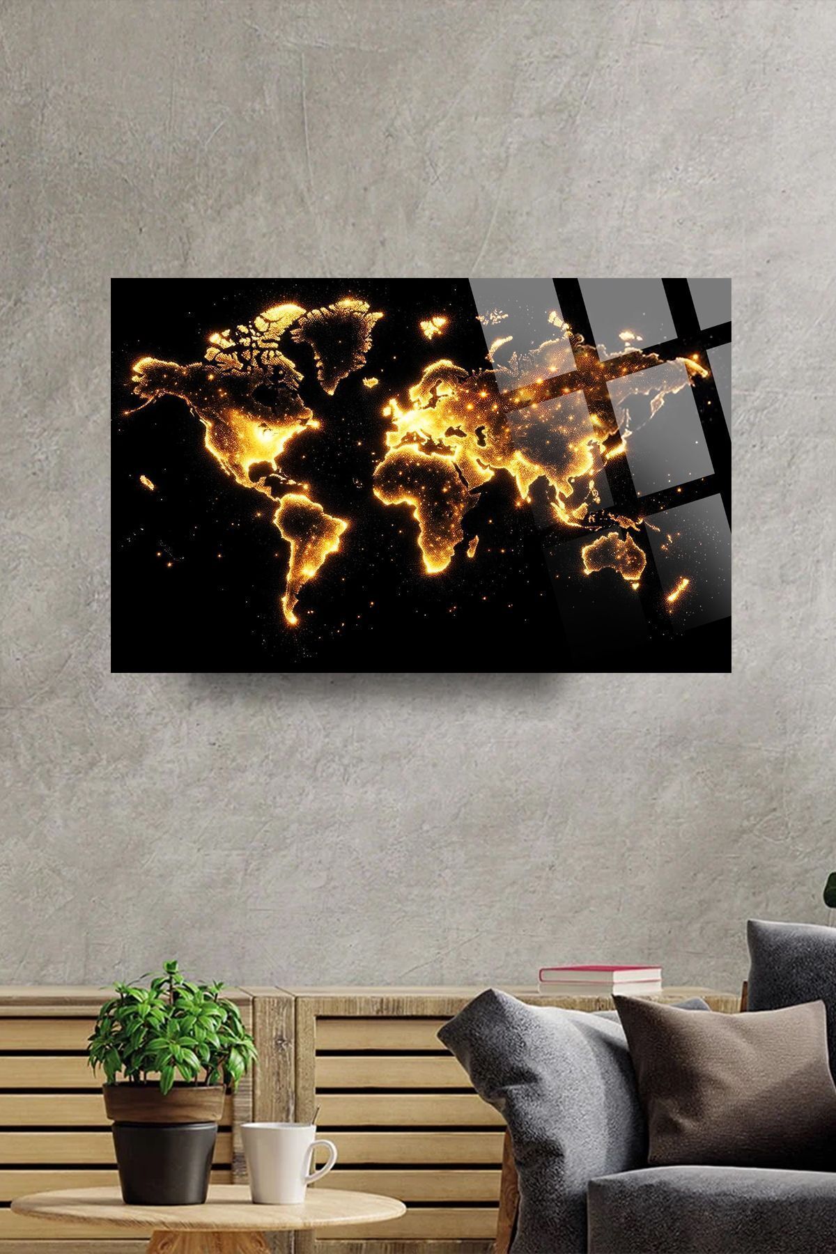 Işıklı Dünya Haritası Kırılmaz Lüks Cam Tablo, Ev Ve Ofis Hediyesi Yüksek Çözünürlüklü 4mm Cam Tablo sarı 773