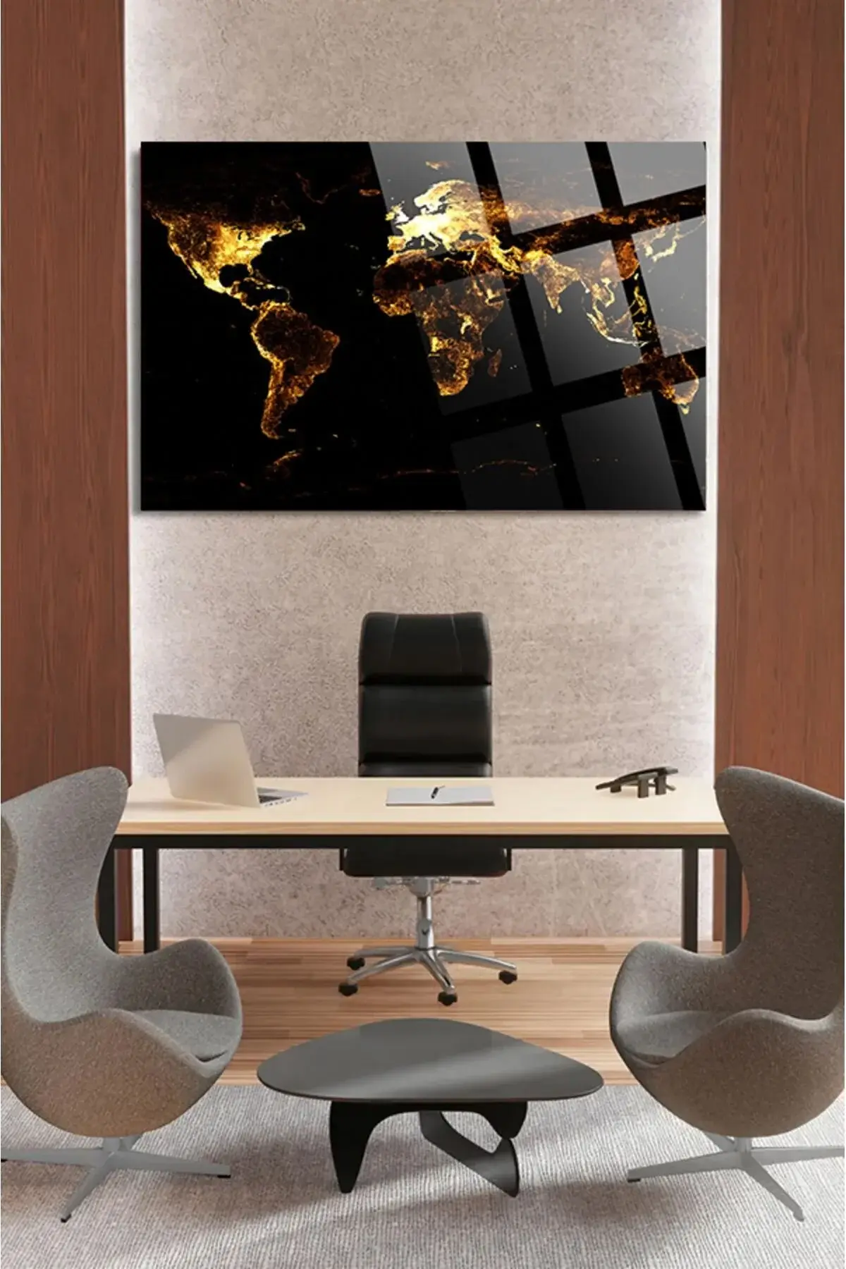 Işıltılı Dünya Haritası Ofis, Ev için Harita 4mm Kırılmaz Temperli Yüksek Çözünürlüklü Cam Tablo