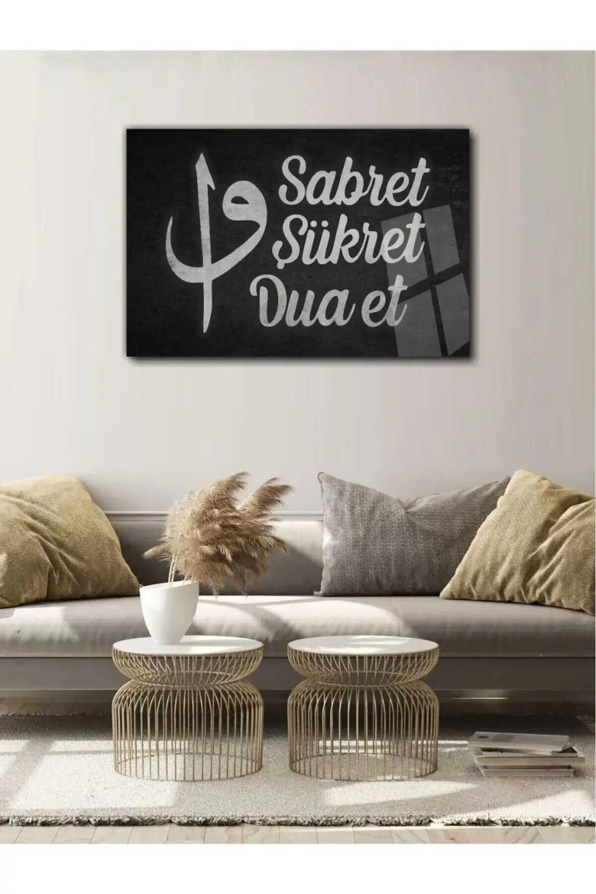 İslami Cam Tablo Sabret Şükret Dua Et SİYAH