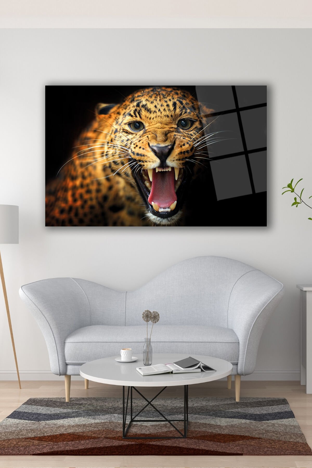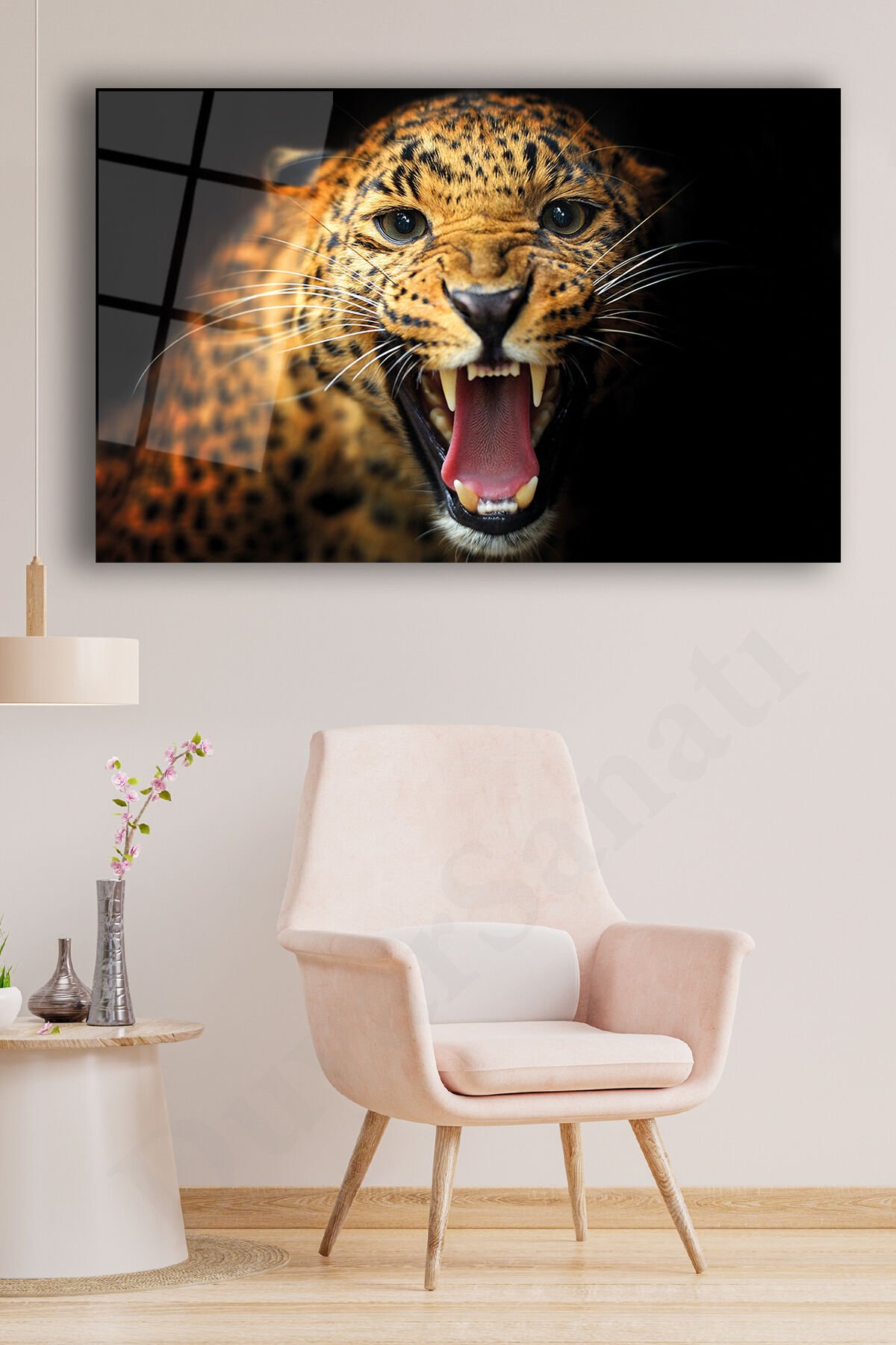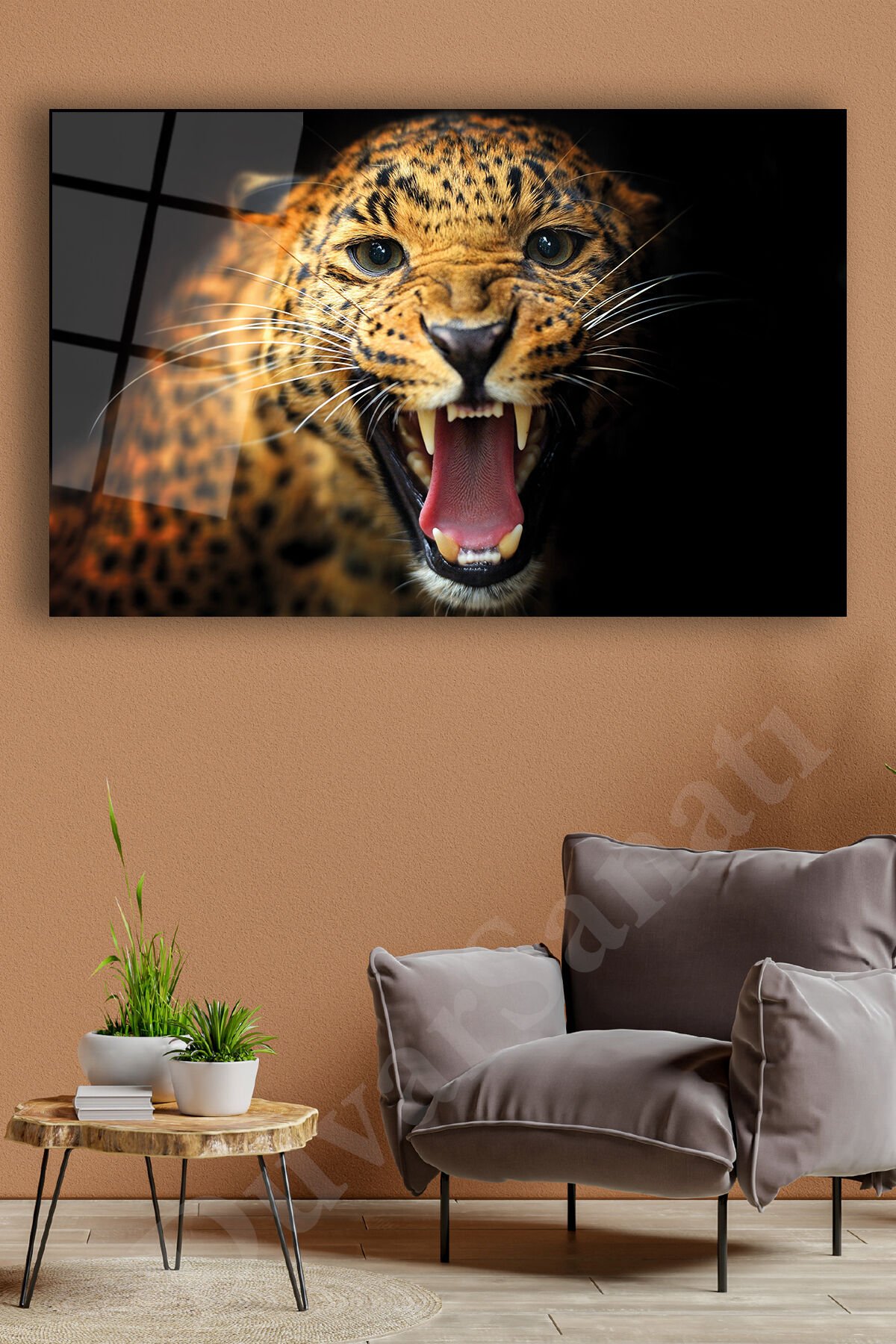 Jaguar Cam Tablo Modern Ev Ofis Salon Hediyelik Büyük Tablo Kahverengi