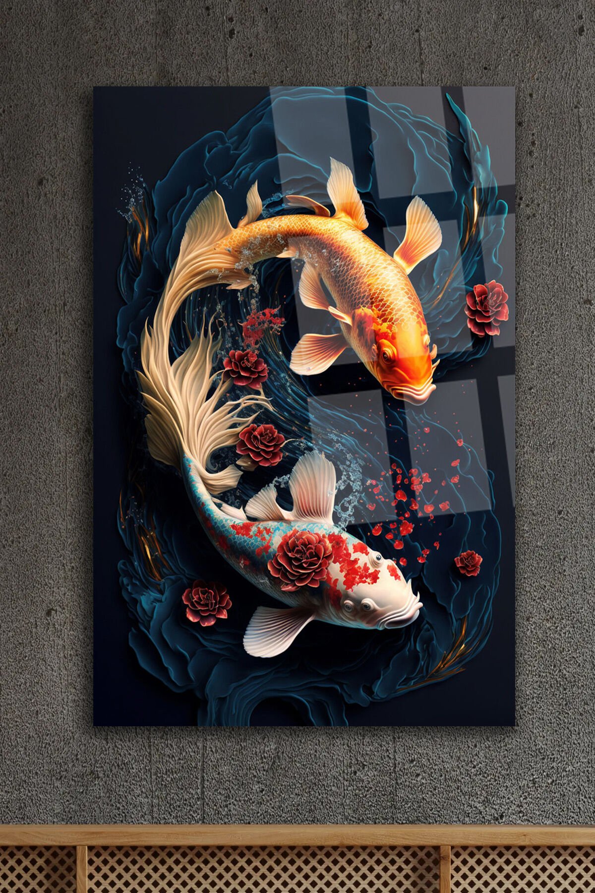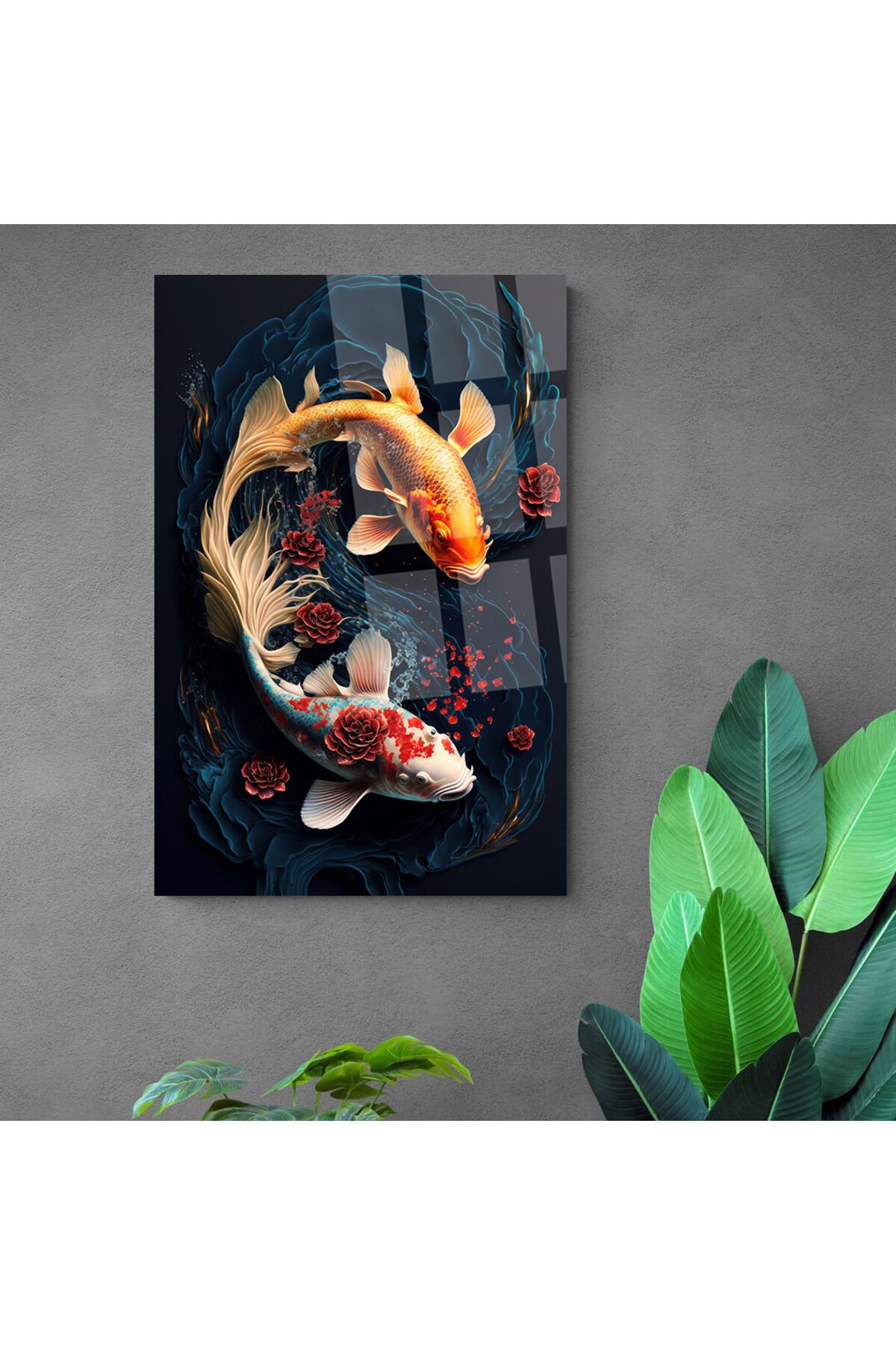 JAPON BALIKLARI KIRILMAZ CAM TABLO ULTRA CANLI RENKLER EV HEDİYESİ OFİS HEDİYESİ