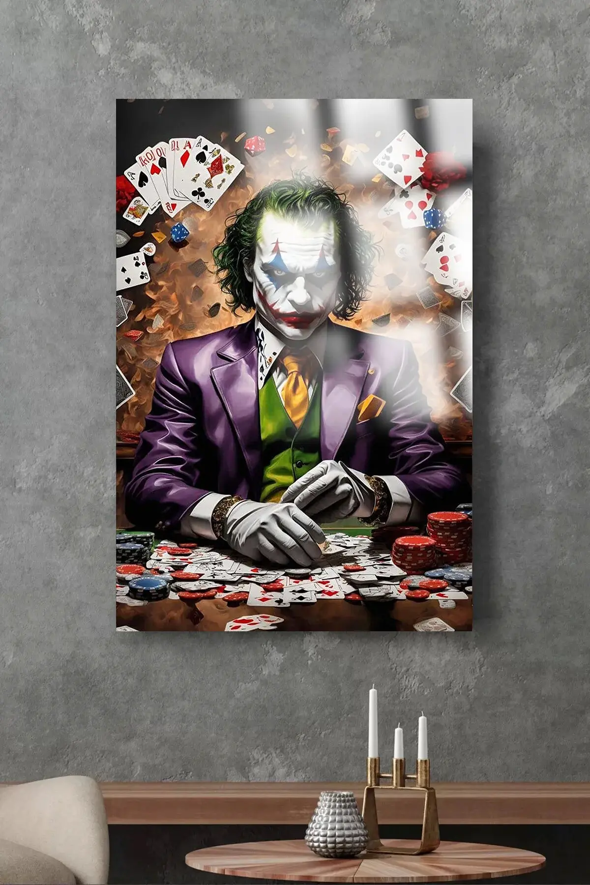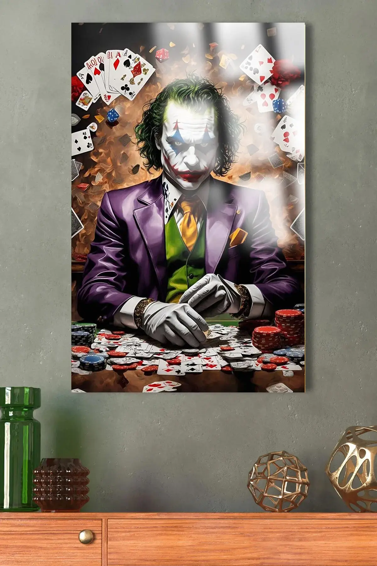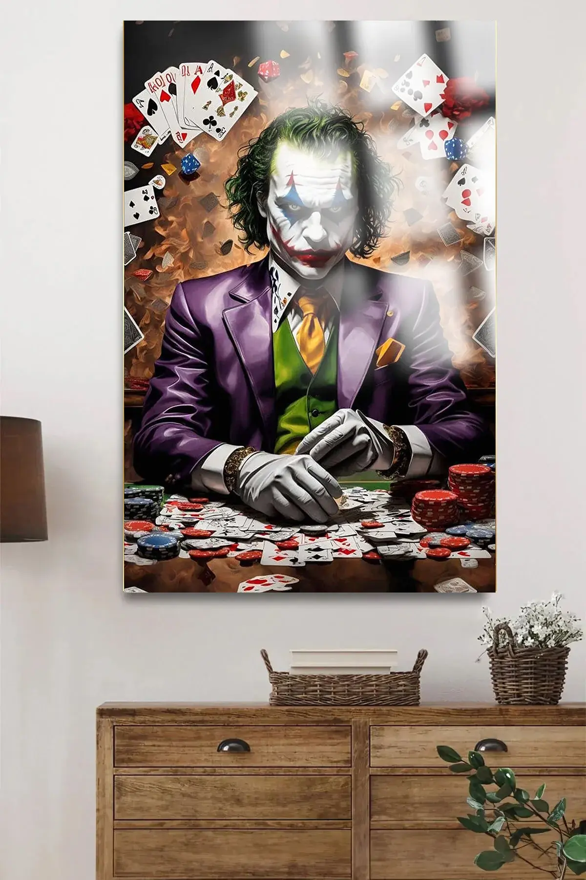 JOKER HARİKA KARTLI TASARIM KIRILMAZ LÜKS CAM TABLO ULTRA CANLI RENKLER EV, İŞ YERİ, OFİS HEDİYESİ