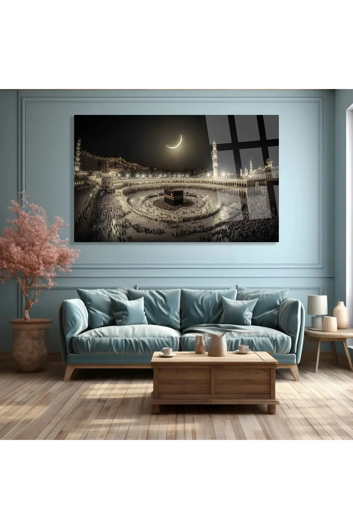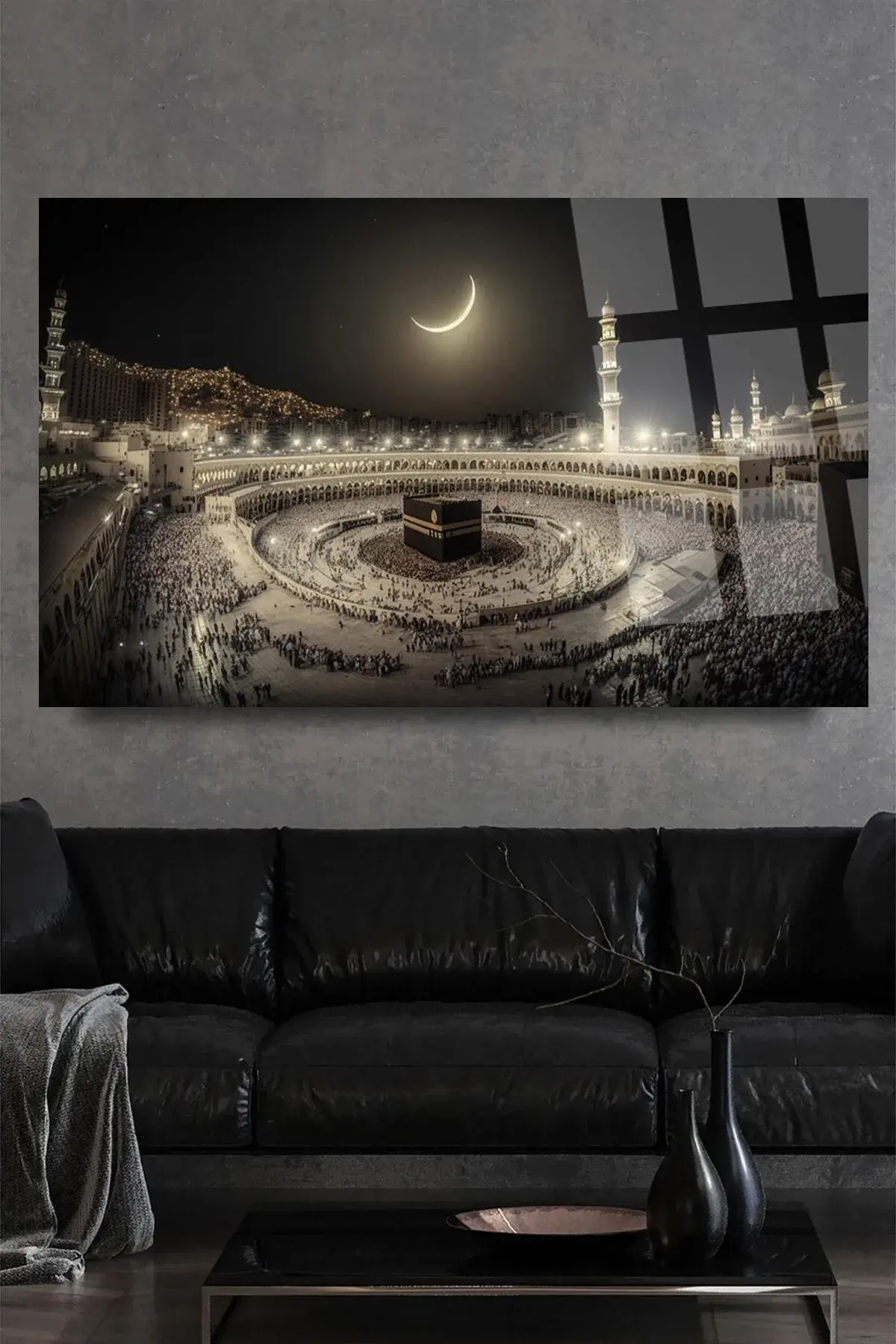 KABE MEKKE MANZAASI DİNİ İSLAMİ KIRILMAZ CAM TABLO ULTRA CANLI RENKLER EV HEDİYESİ OFİS HEDİYESİ Siyah