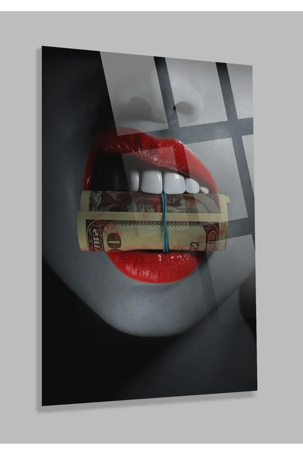 Kadın Ağzında Dolar Uv Baskılı Kırılmaz Cam Tablo, Ev Ve Ofis Yüksek Çözünürlüklü 4mm Cam Tablo