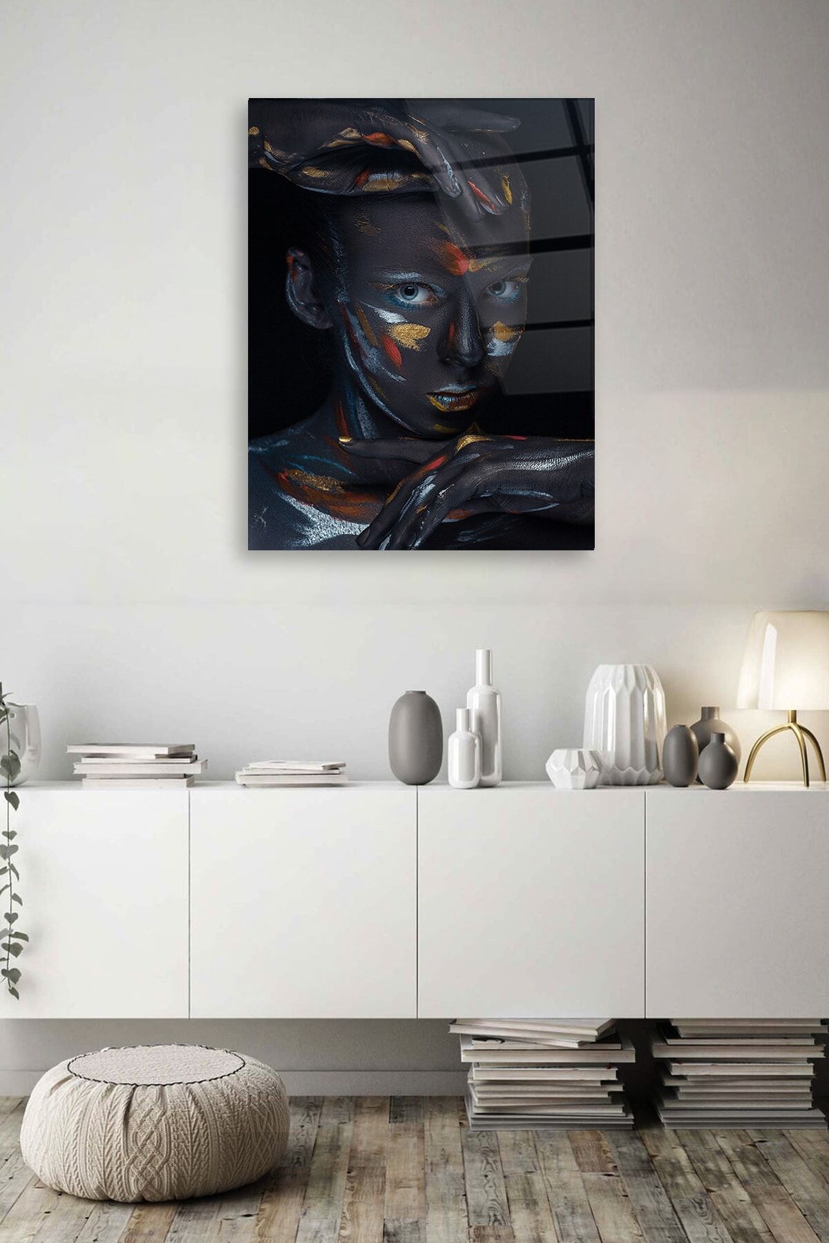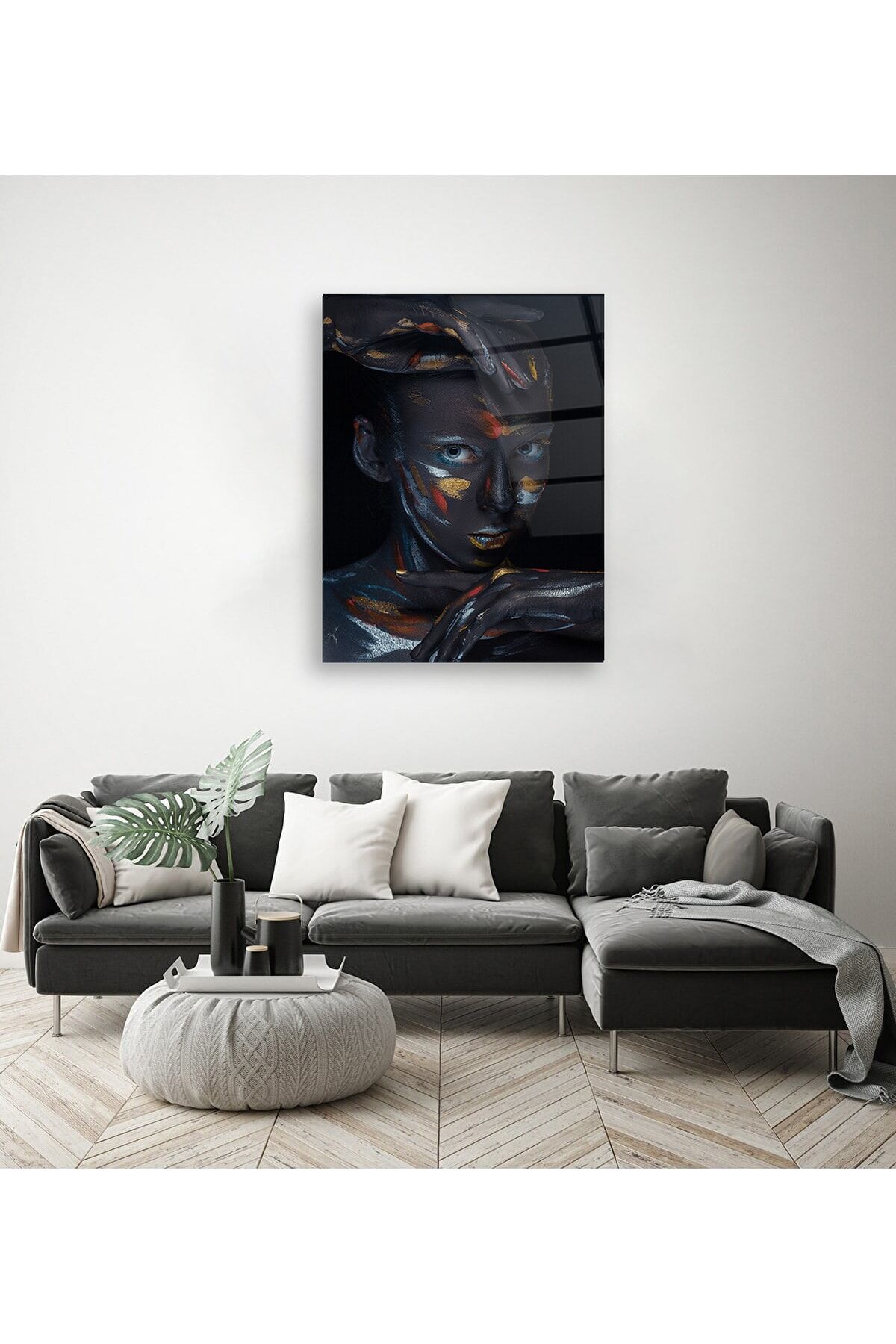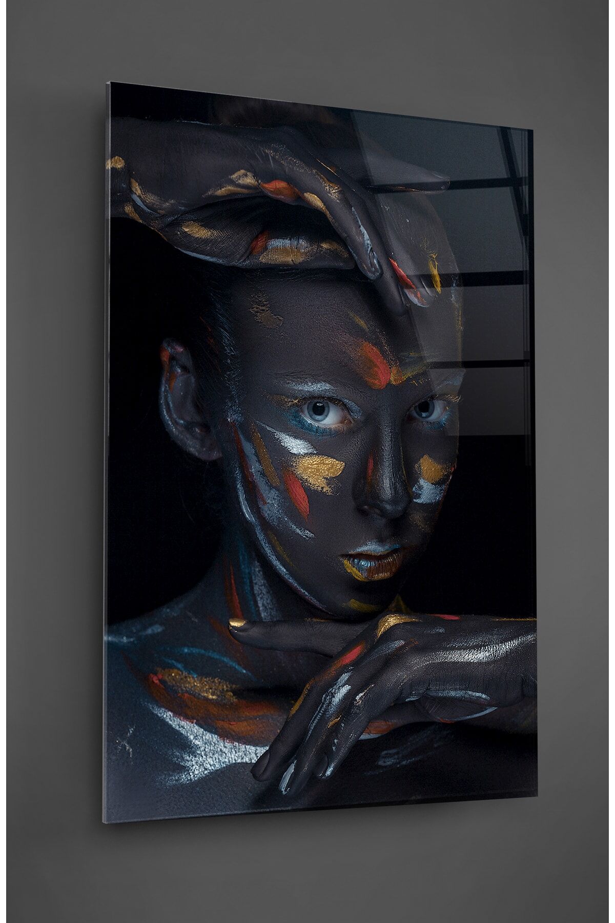 Kadın Renkli Fırça Darbeli Dikey Cam Tablo Renkli