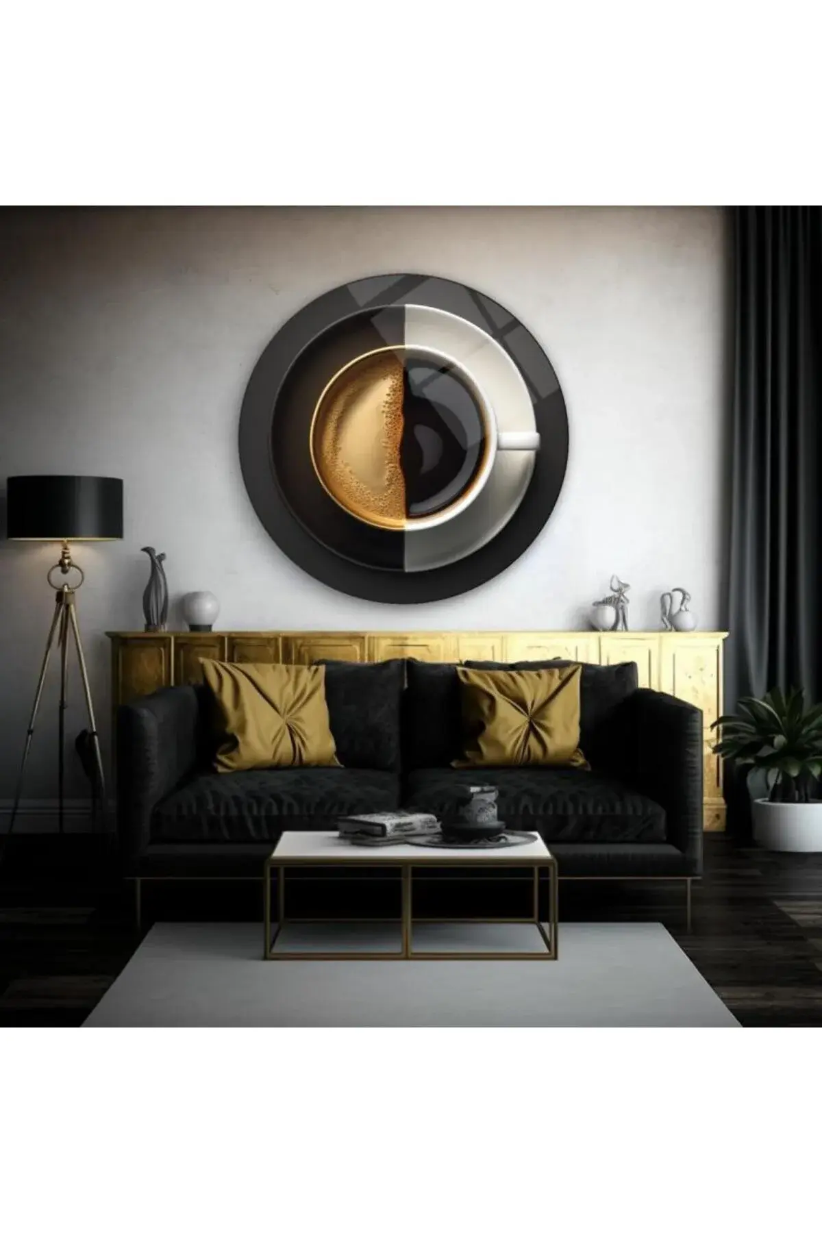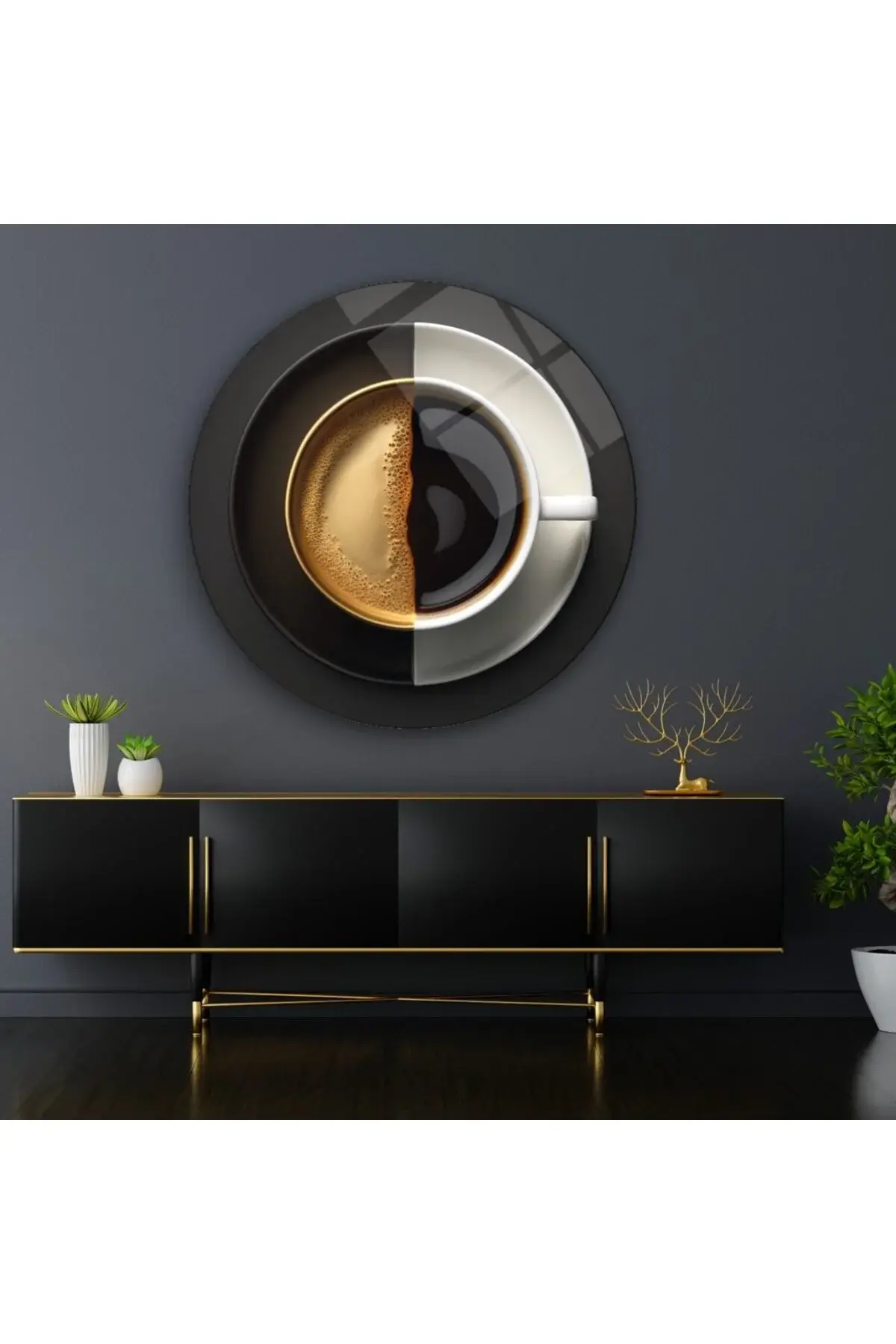 KAHVE TEMALI YUVARLAK MODERN KIRILMAZ CAM TABLO KAHVE TABLOSU Kahverengi