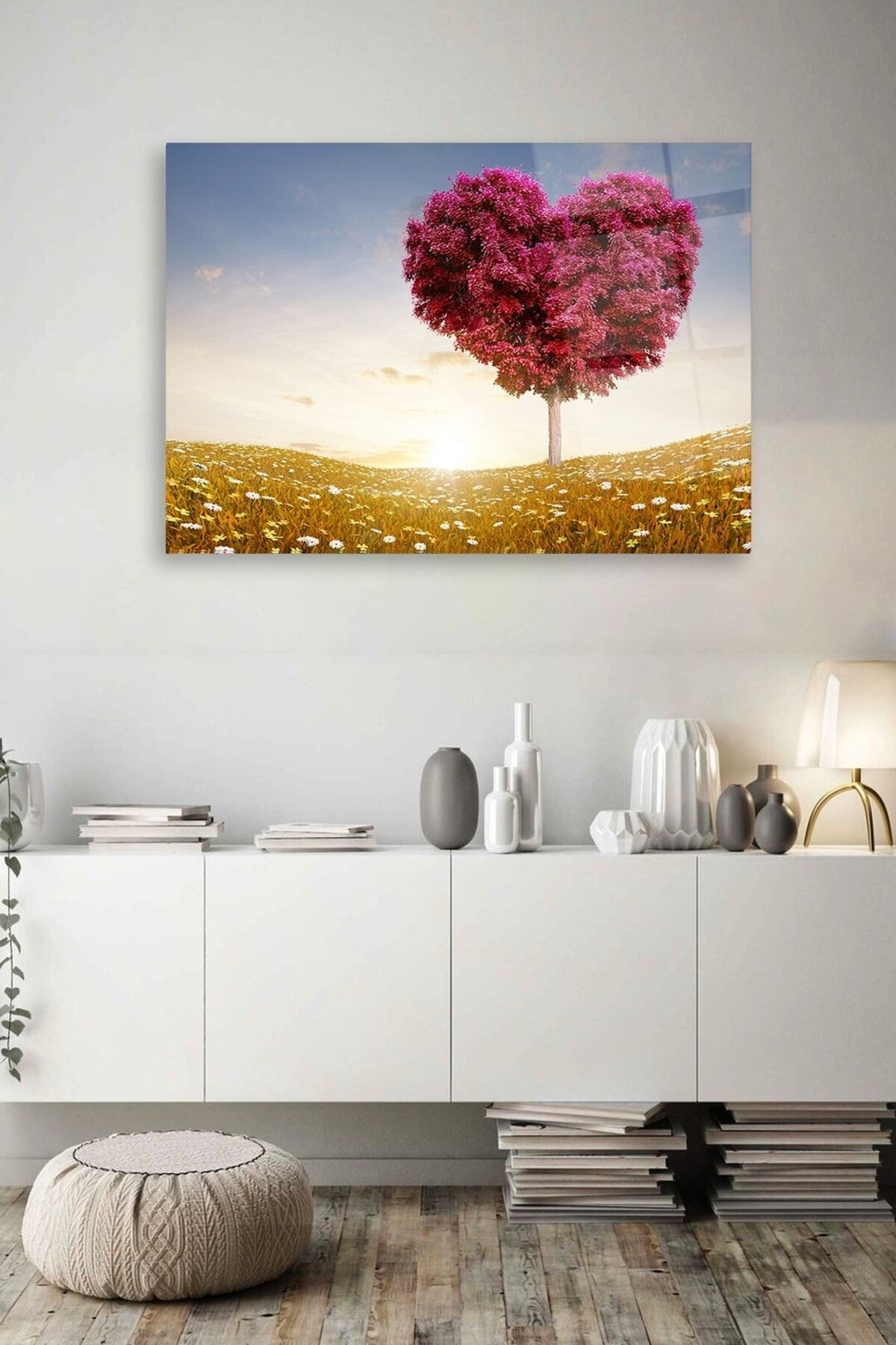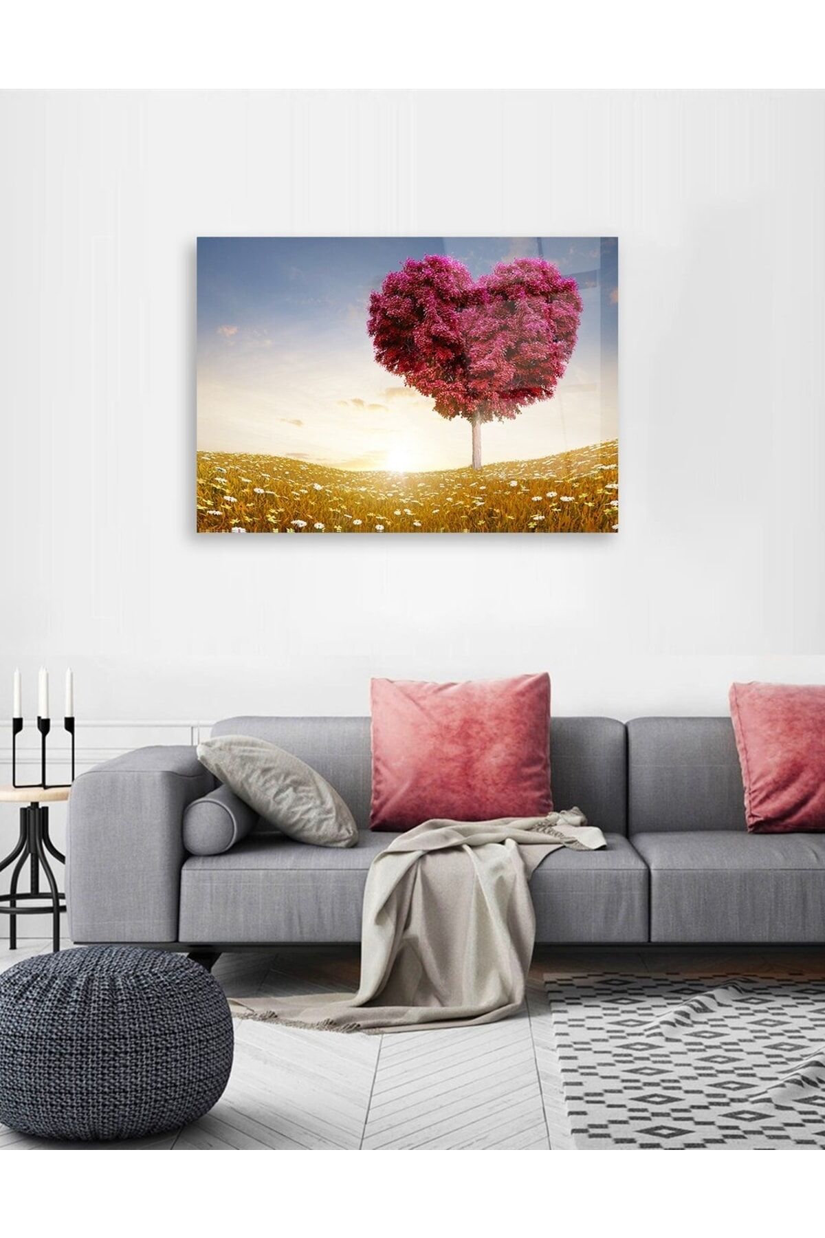 Kalp Ağaç Cam Tablo Renkli