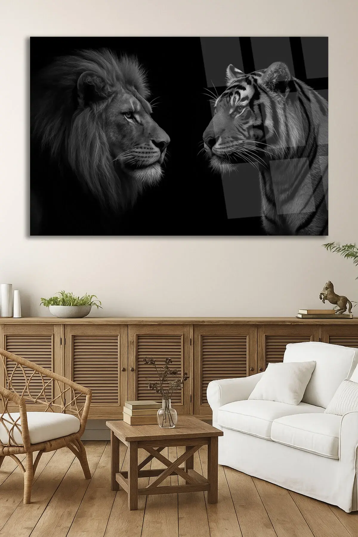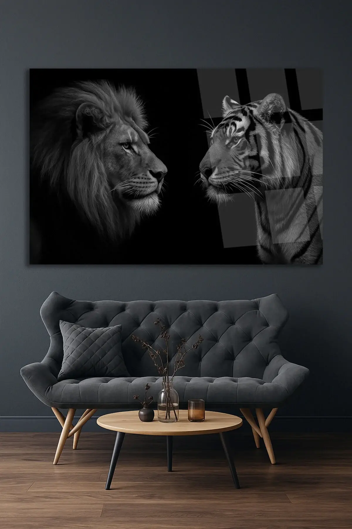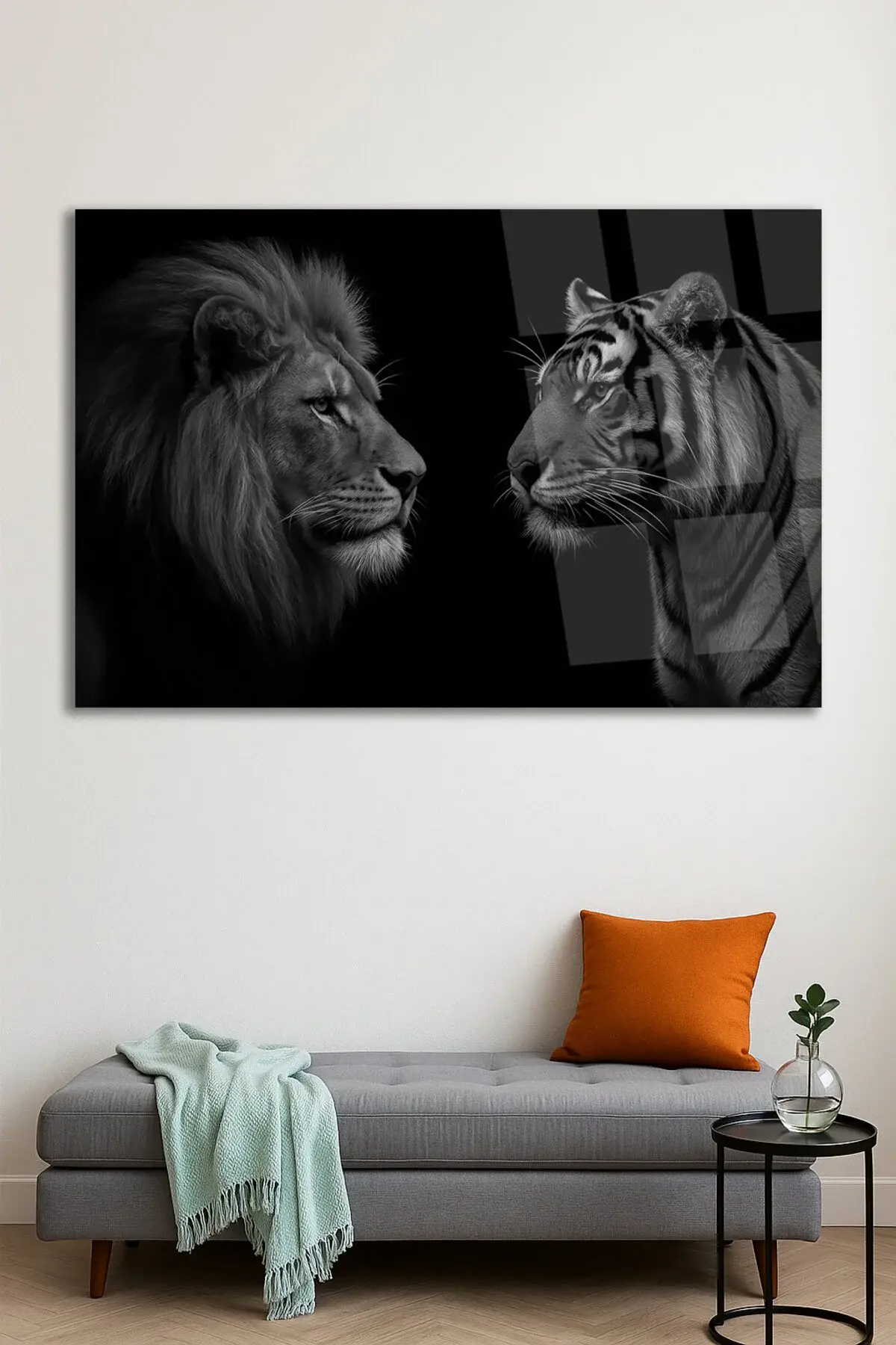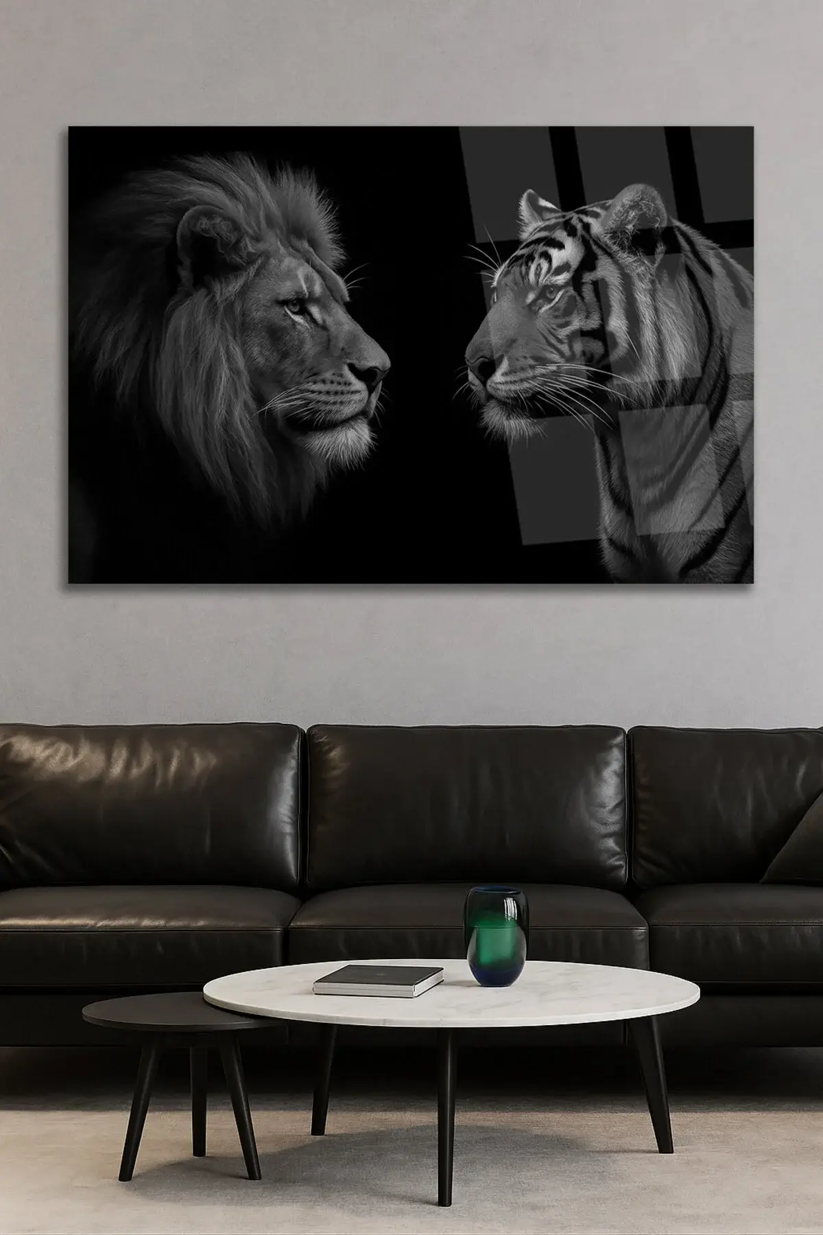 KAPLAN VE ASLAN ASİL GÖRKEMLİ KIRILMAZ LÜKS CAM TABLO ULTRA CANLI RENKLER LÜKS HEDİYE TABLO Siyah
