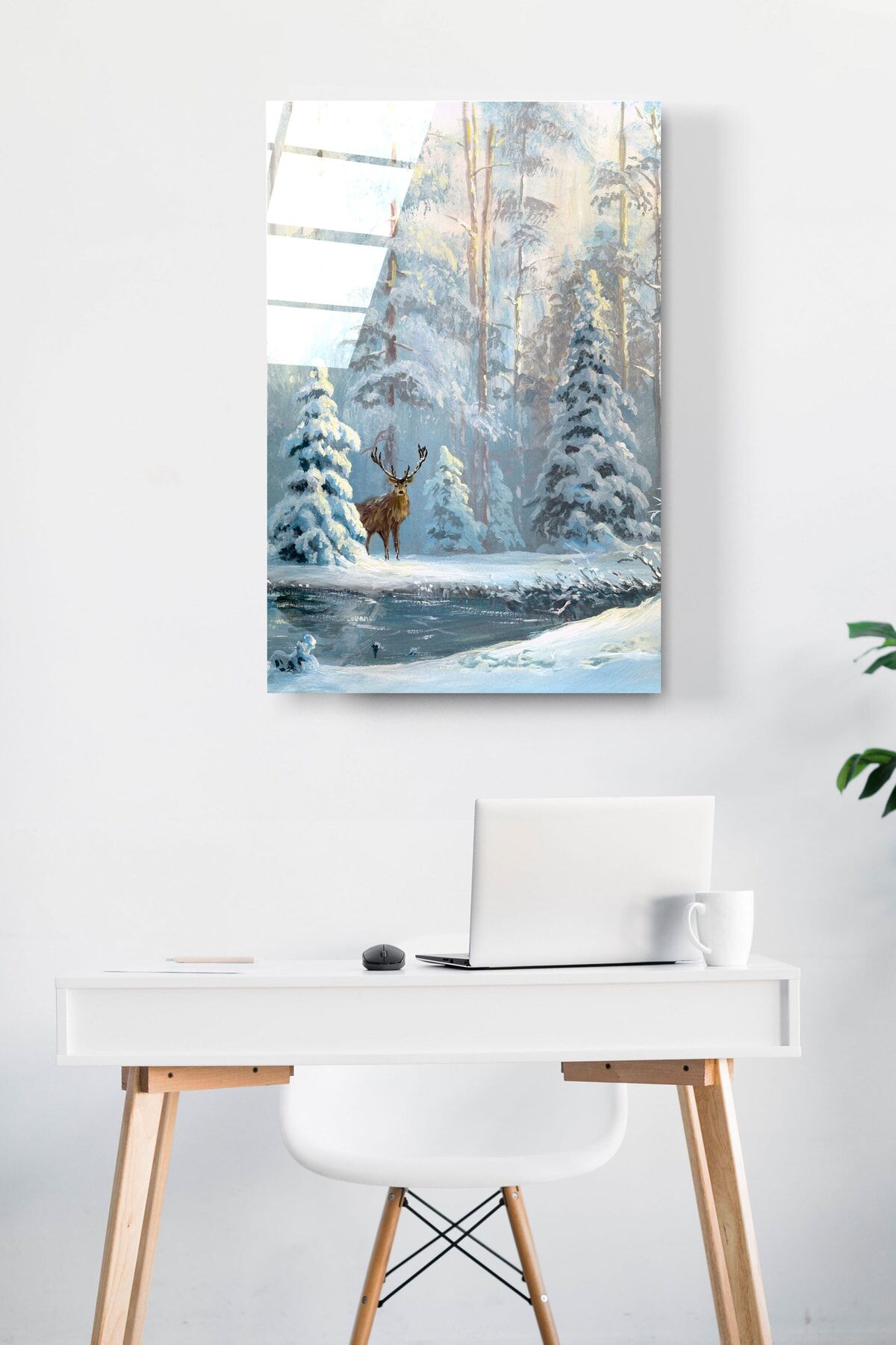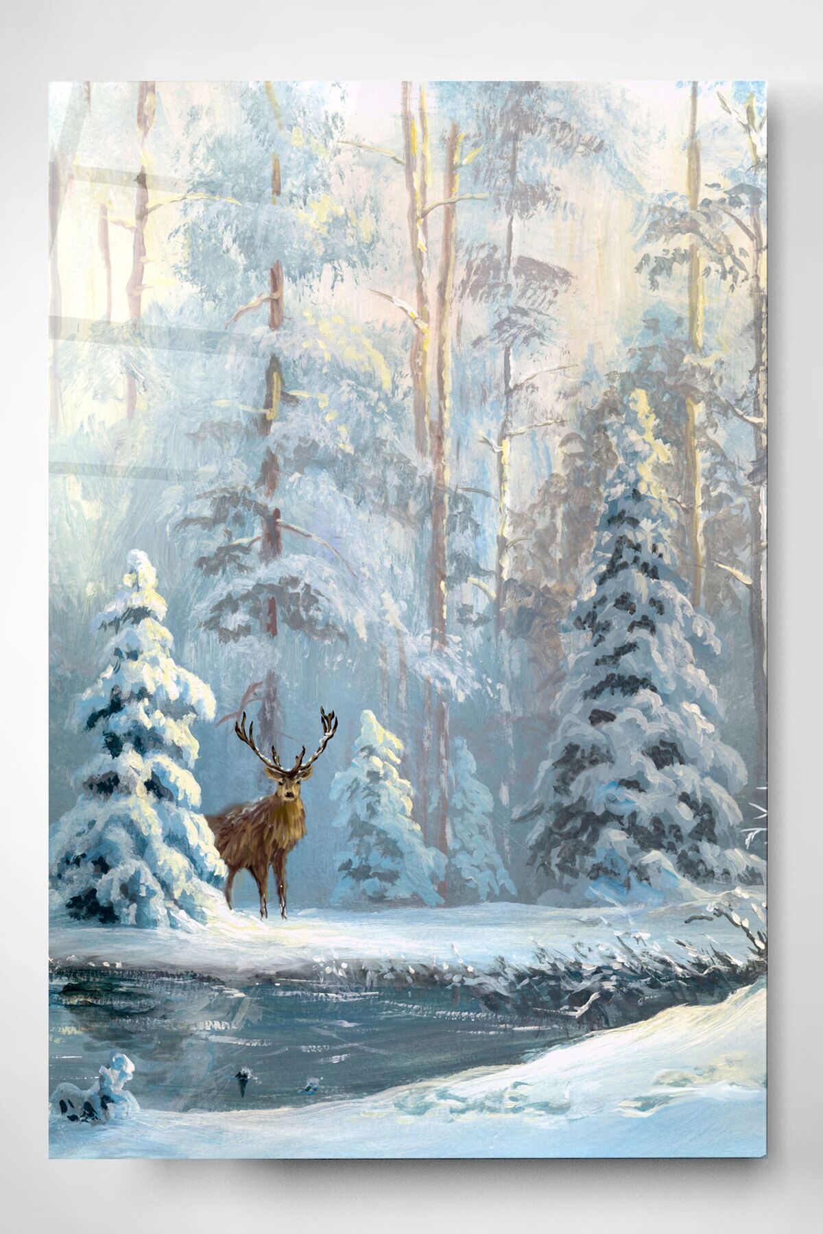 Kar Manzaralı Geyik Cam Tablo, Dekoratif Cam Tablo