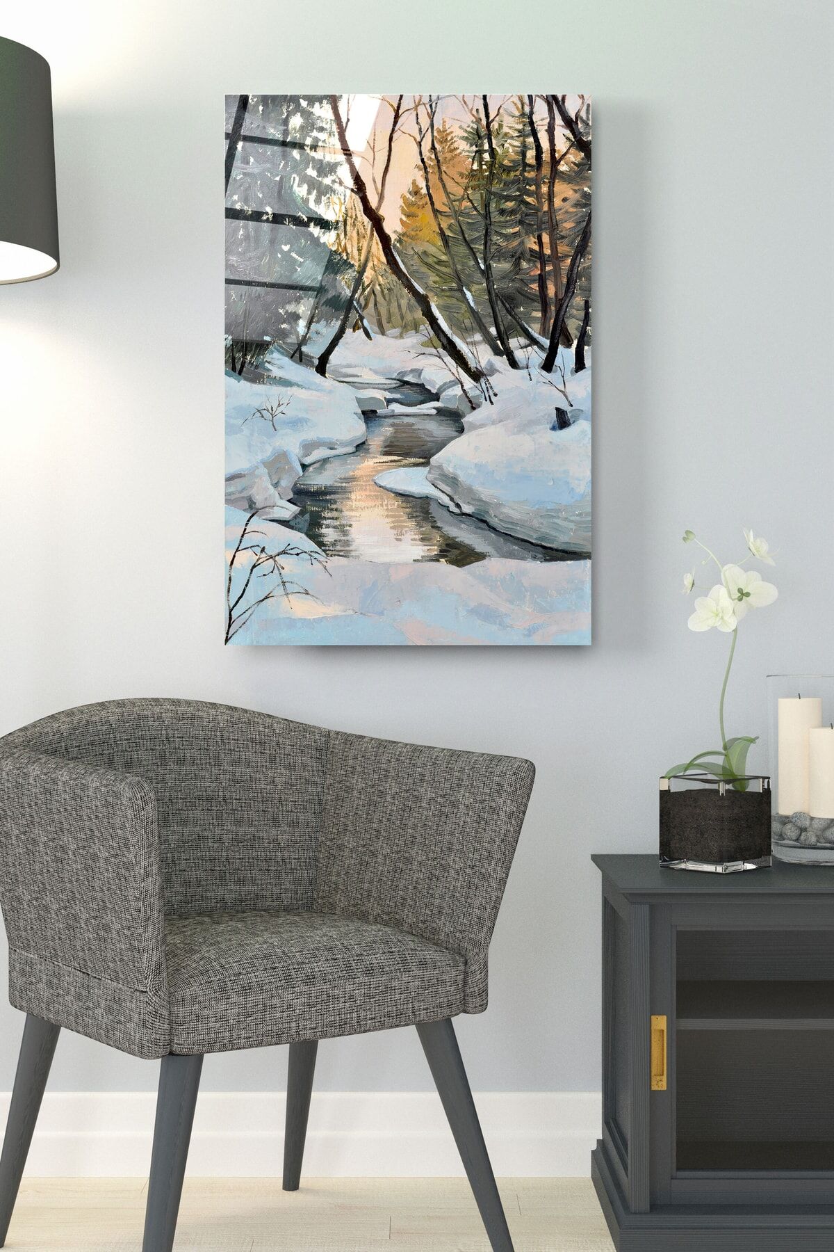 Kar Ve Dere Cam Tablo, Dekoratif Cam Tablo