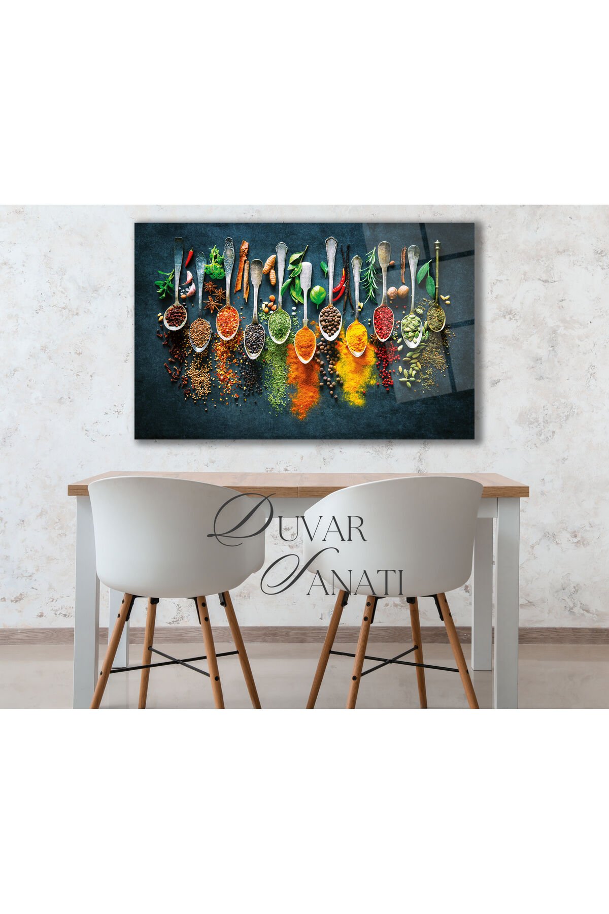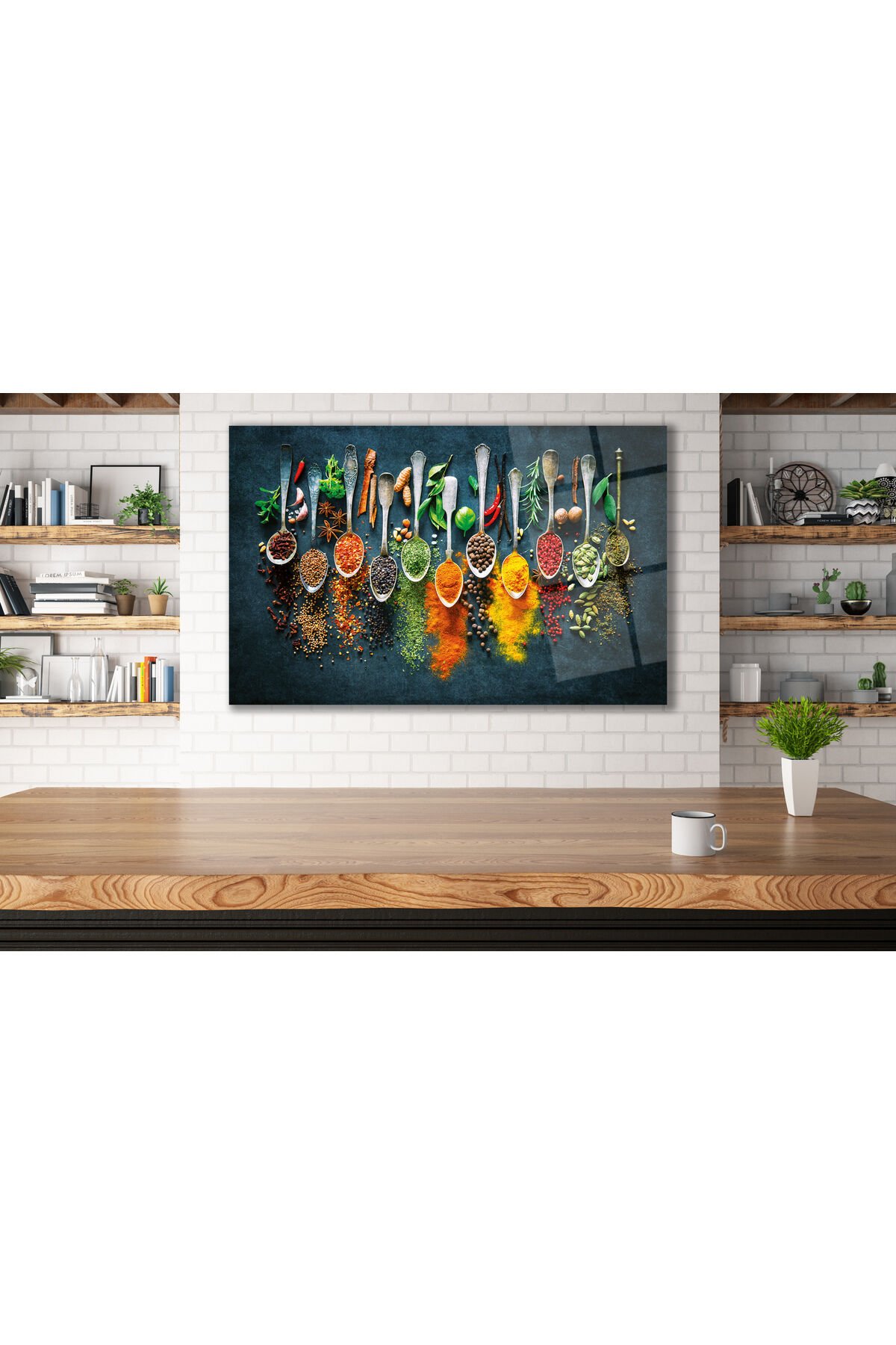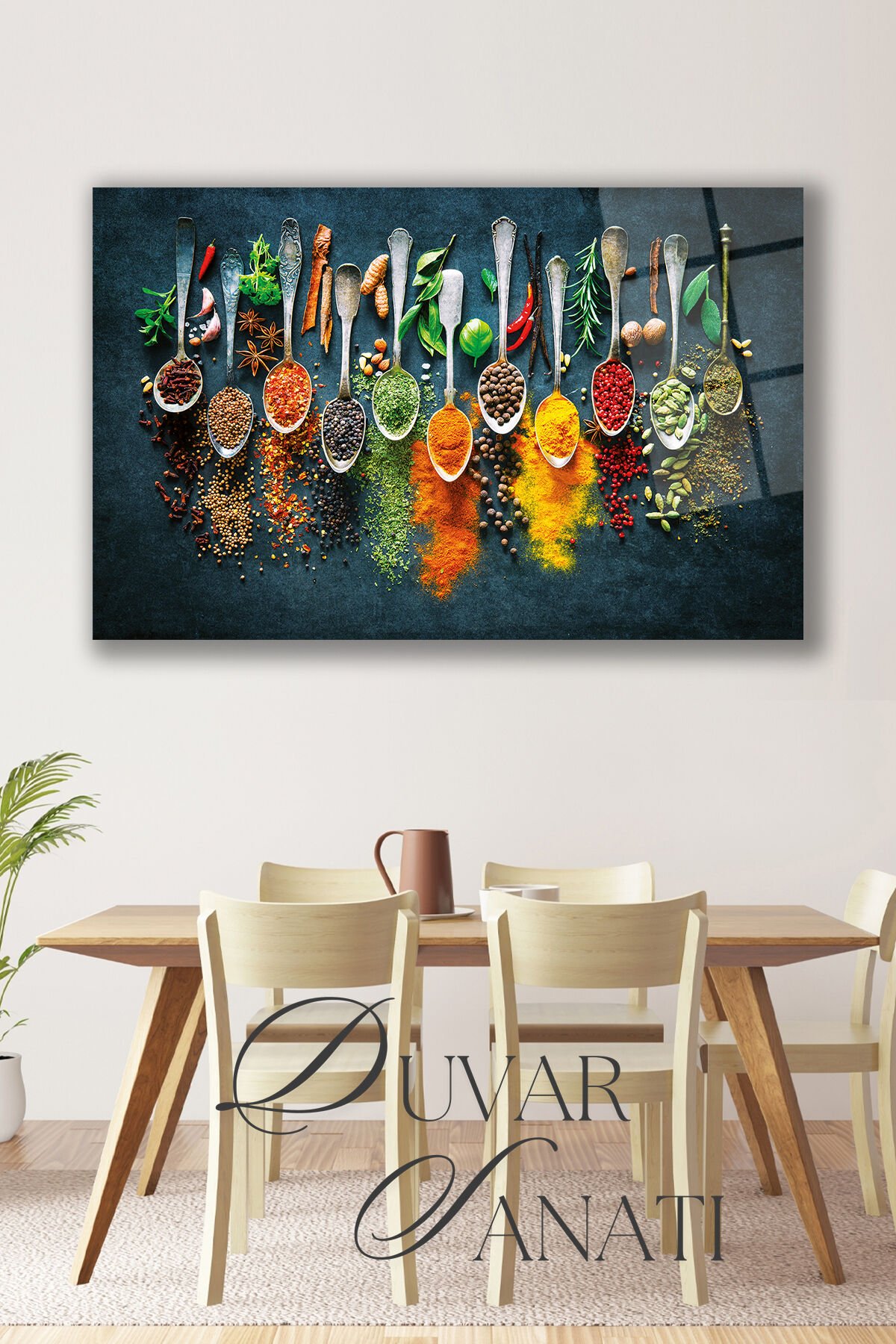 Kaşıklarda Baharatlar Cam Tablo,Modern Ev Mutfak Restaurant Duvar Dekoru,Hediyelik Çok Renkli
