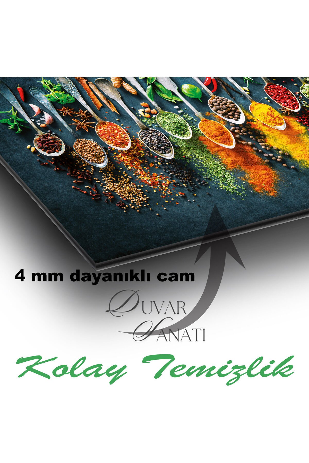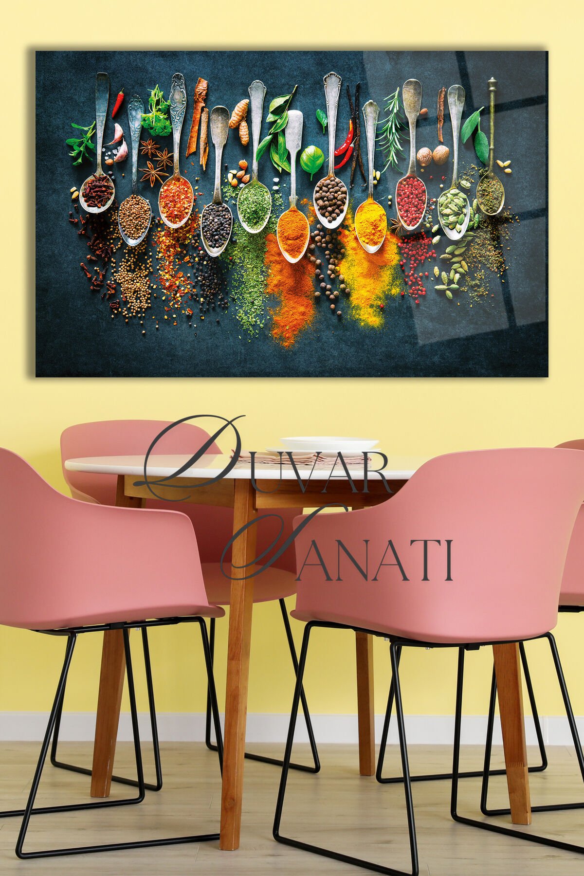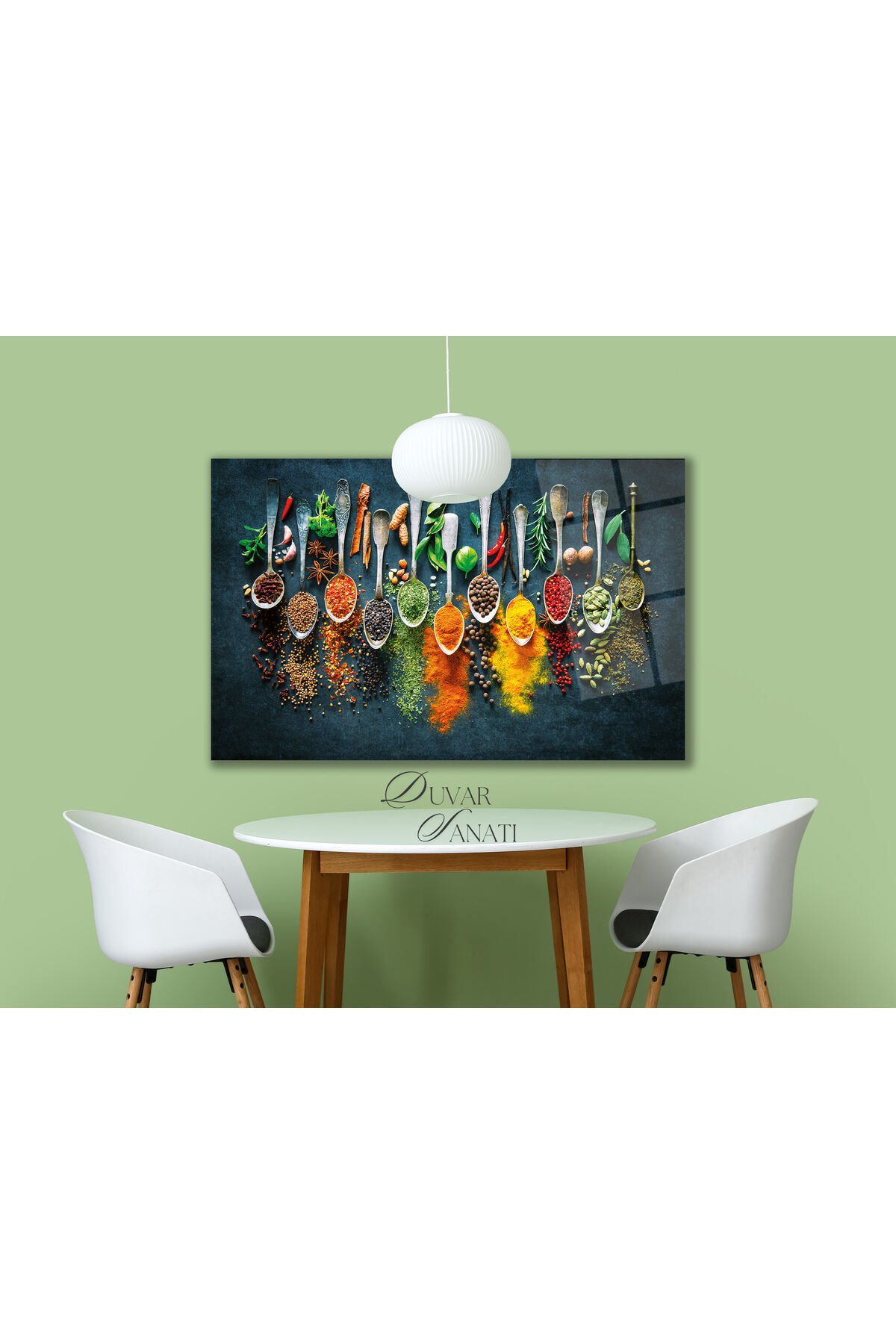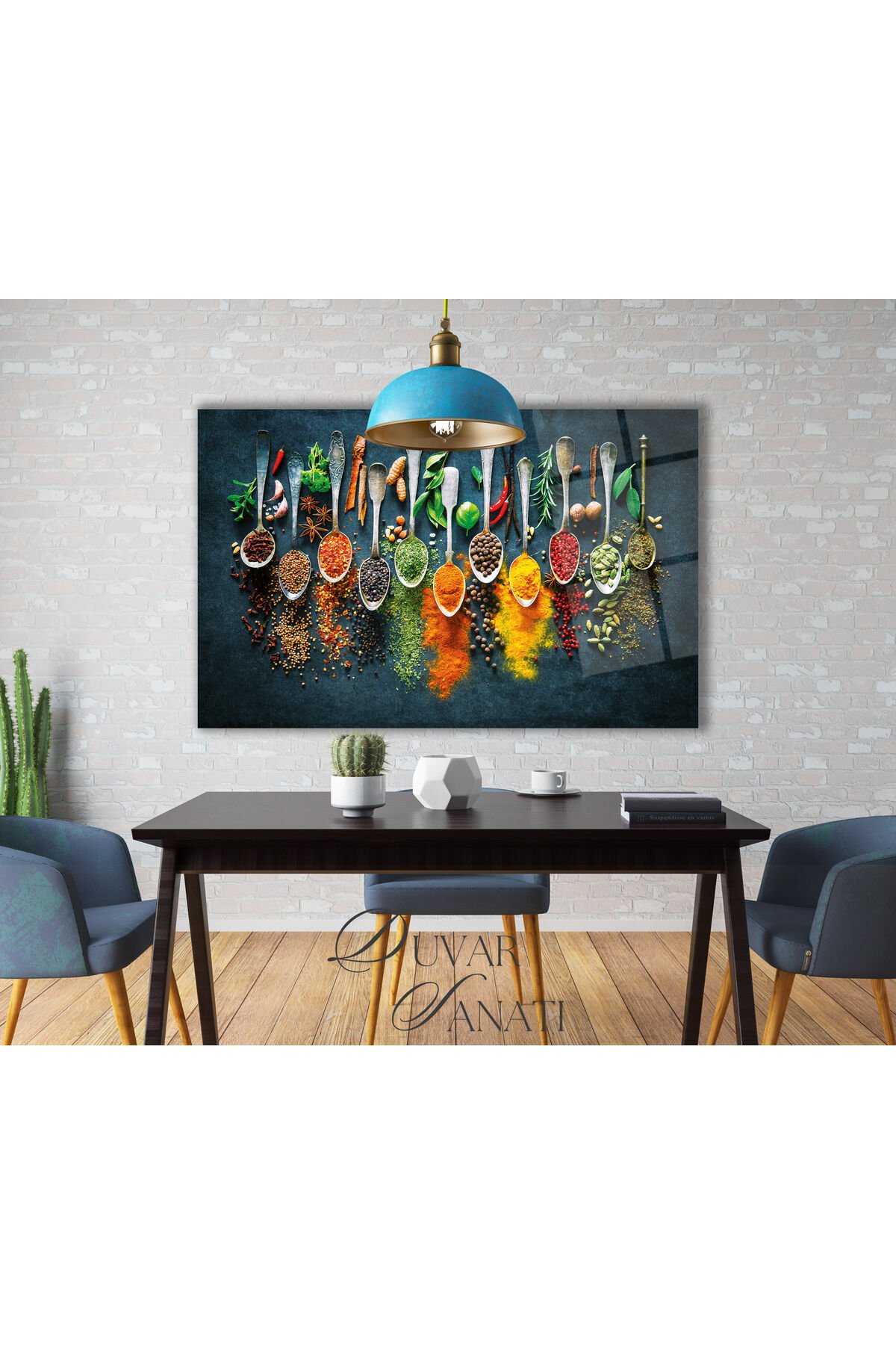 Kaşıklarda Baharatlar Cam Tablo,Modern Ev Mutfak Restaurant Duvar Dekoru,Hediyelik Çok Renkli