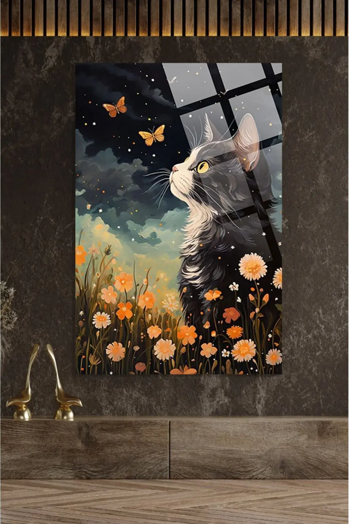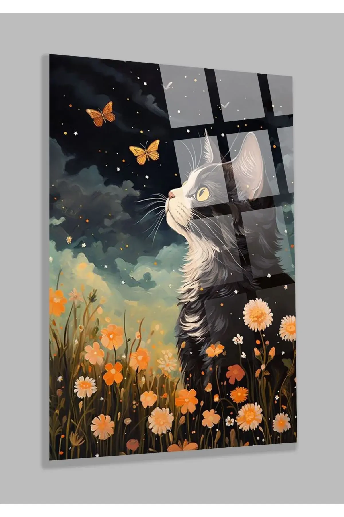 Kedi Sanatsal Görsel 4mm Lüks Kırılmaz Temperli Yüksek Çözünürlüklü Cam Tablo