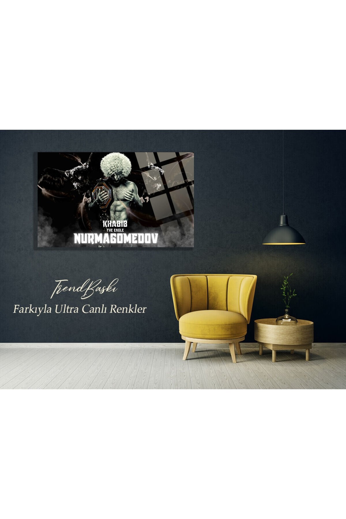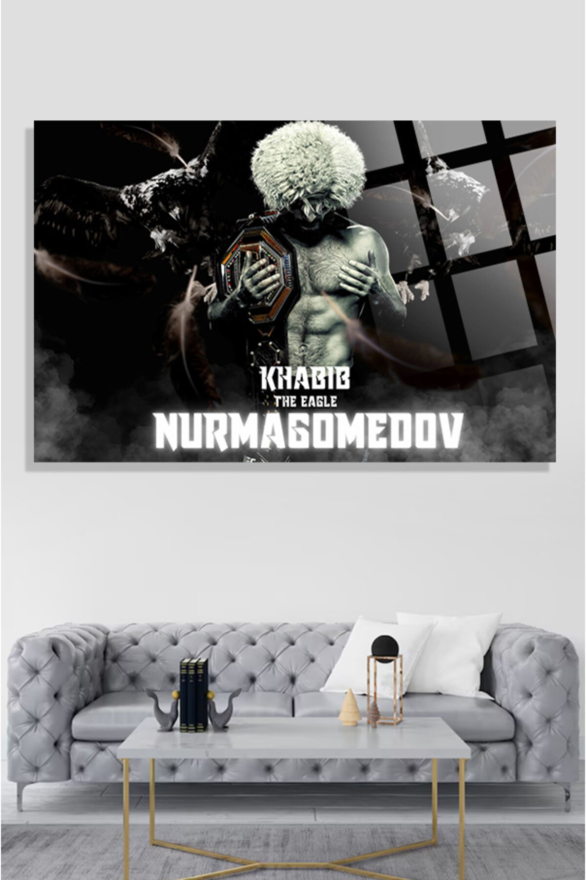 Khabib Habib Nurmagomedov 4mm Kırılmaz Temperli Yüksek Çözünürlüklü Cam Tablo siyah 1