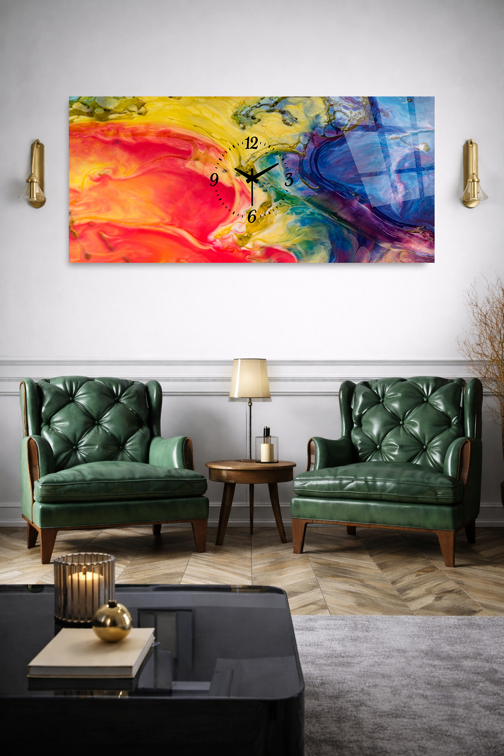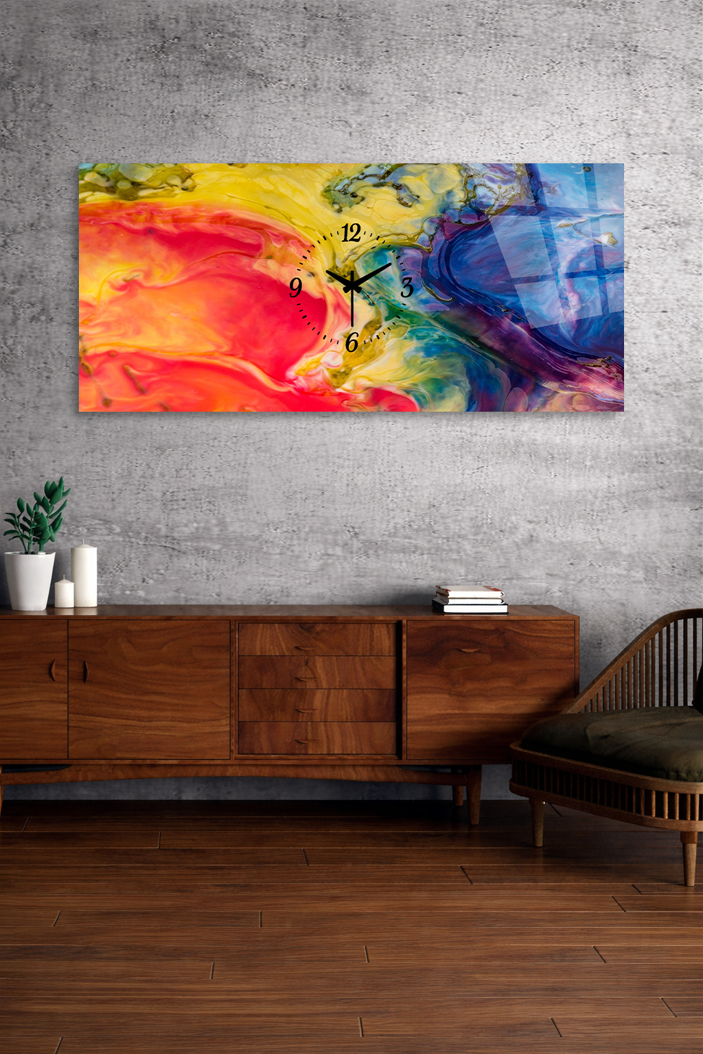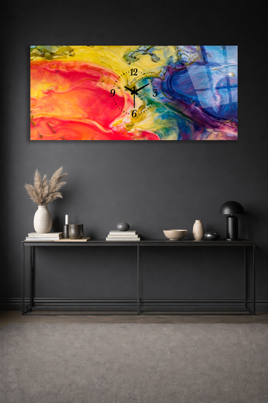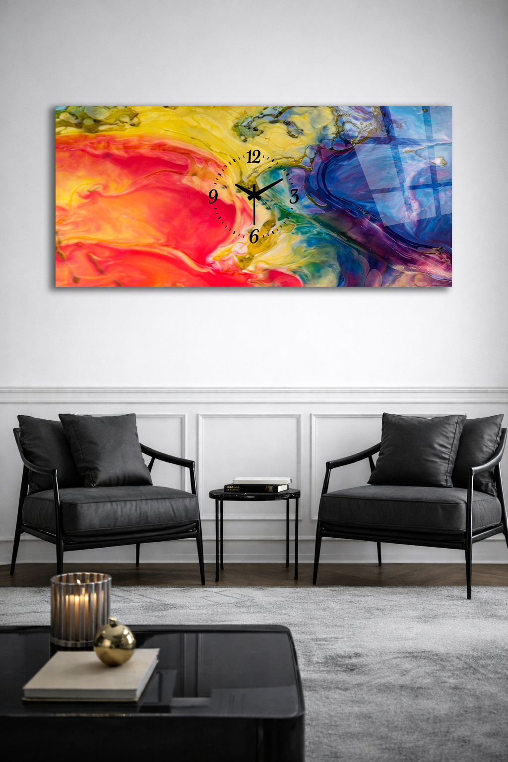 KIRILMAZ CAM DUVAR SAATİ , HEM TABLO HEM SAAT AKIŞKAN BOYA SANAT TASARIMI EV OFİS HEDİYESİ