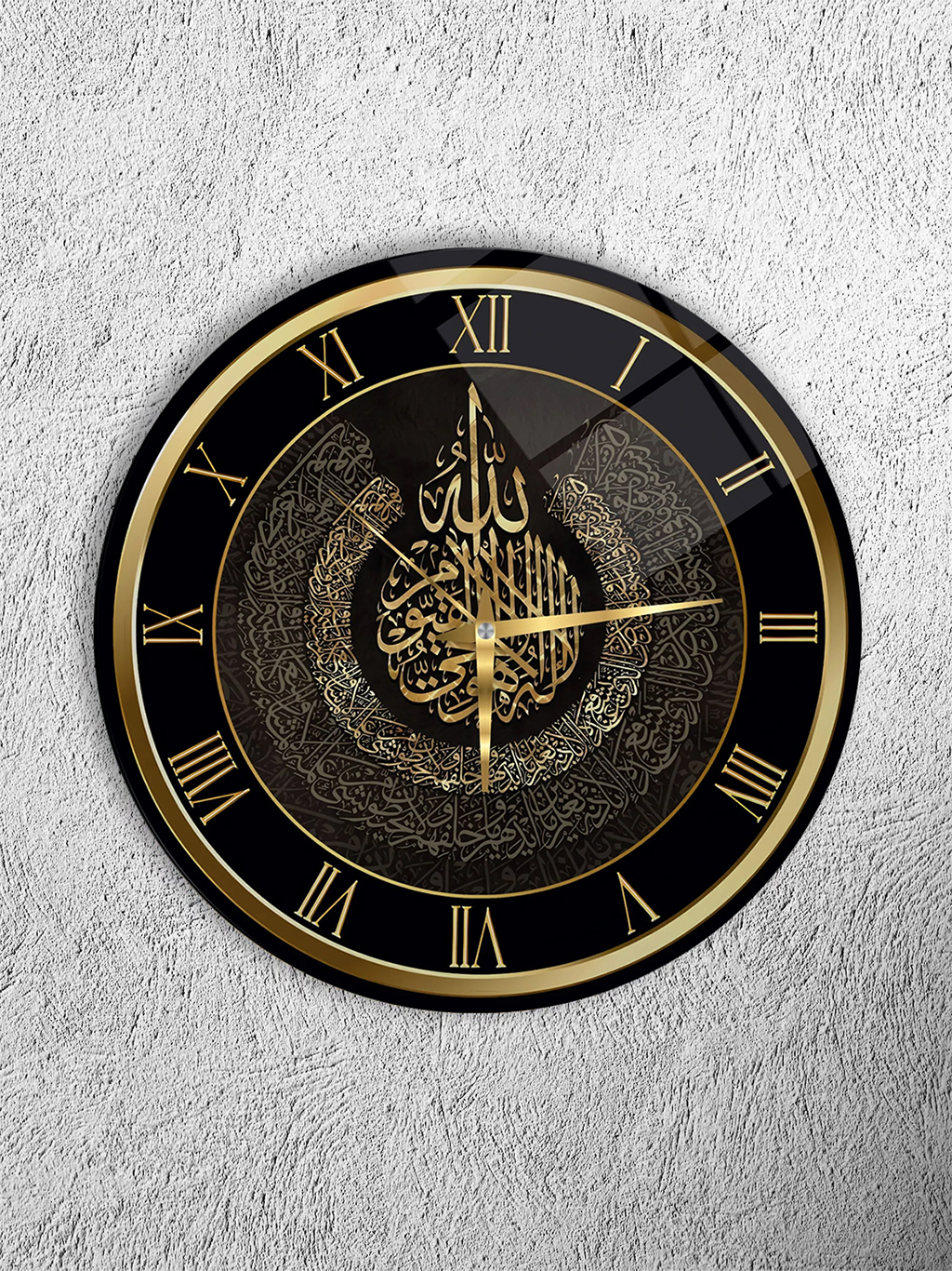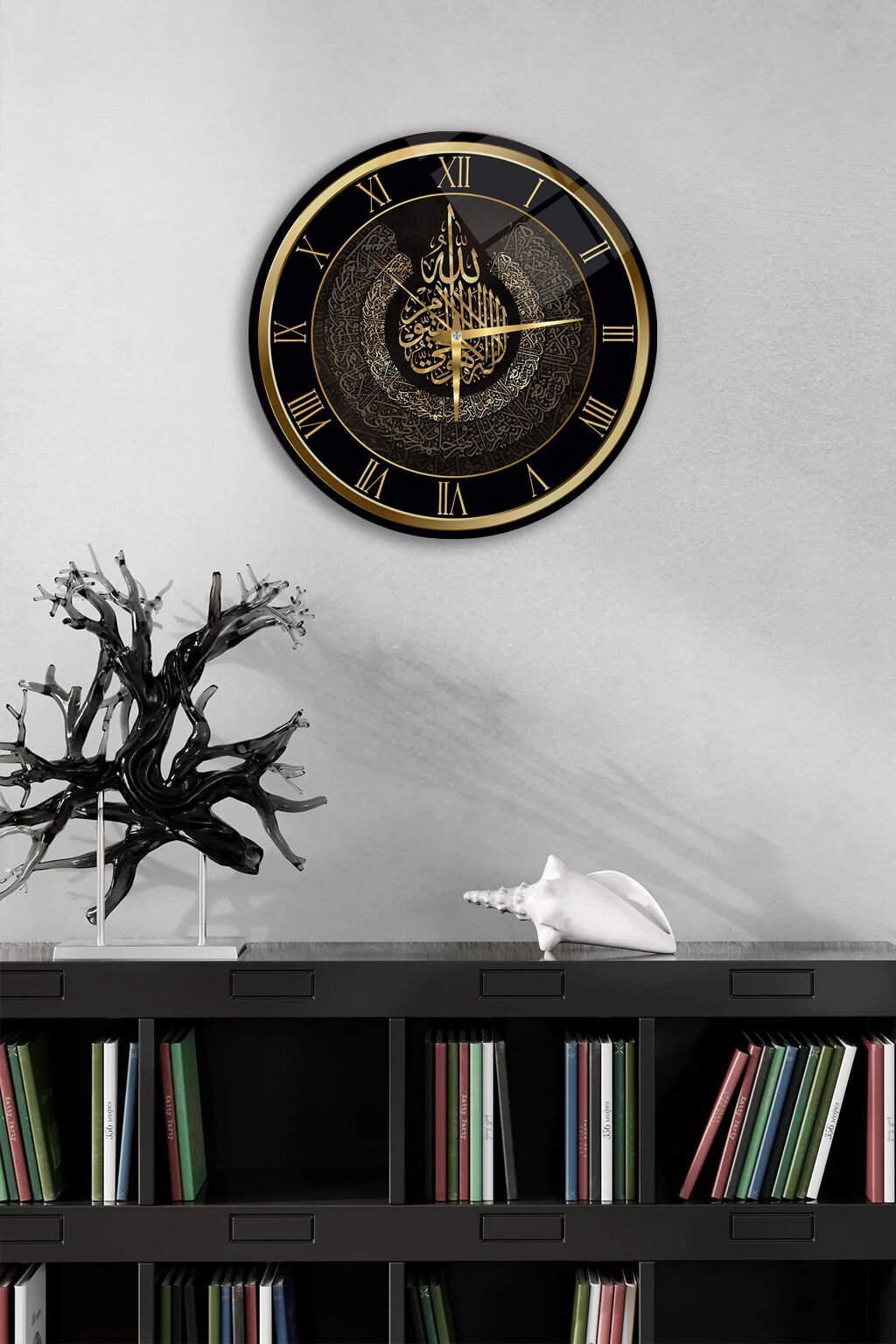 KIRILMAZ CAM DUVAR SAATİ,HEM TABLO HEM SAAT ALLAH LAFZI HAT SANATI İSLAMİ MOTİFLİ DEKORATİF SAAT EV OFİS HEDİYESİ
