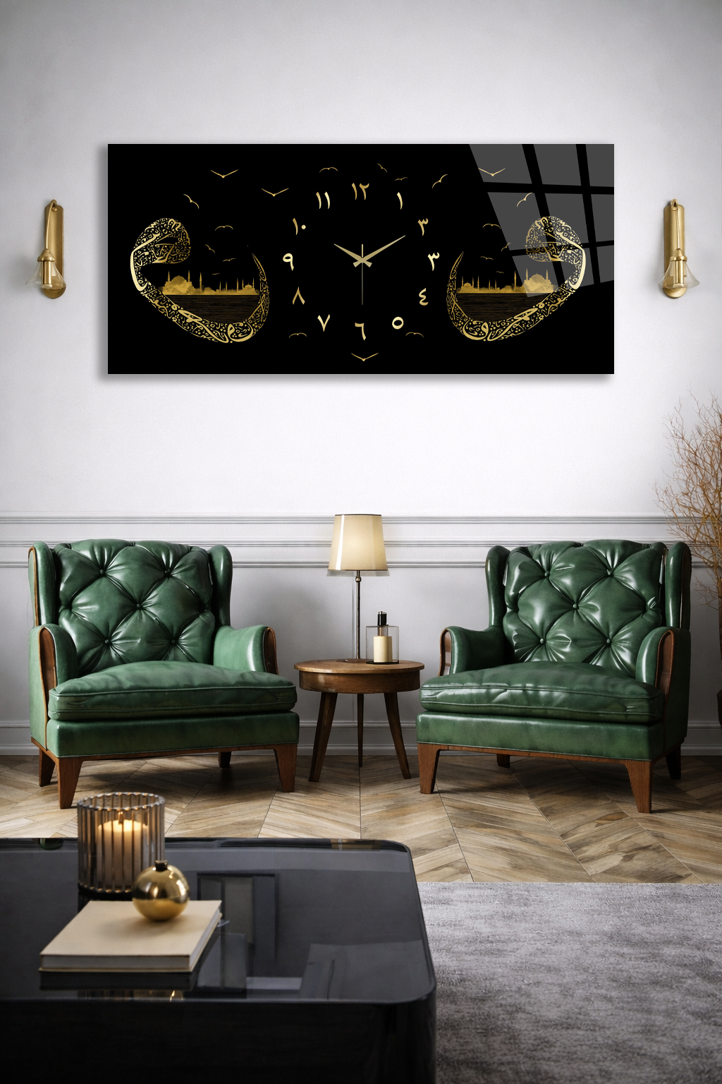 KIRILMAZ CAM DUVAR SAATİ , HEM TABLO HEM SAAT ALTIN İSLAMİ HAT SANATI EV OFİS HEDİYESİ