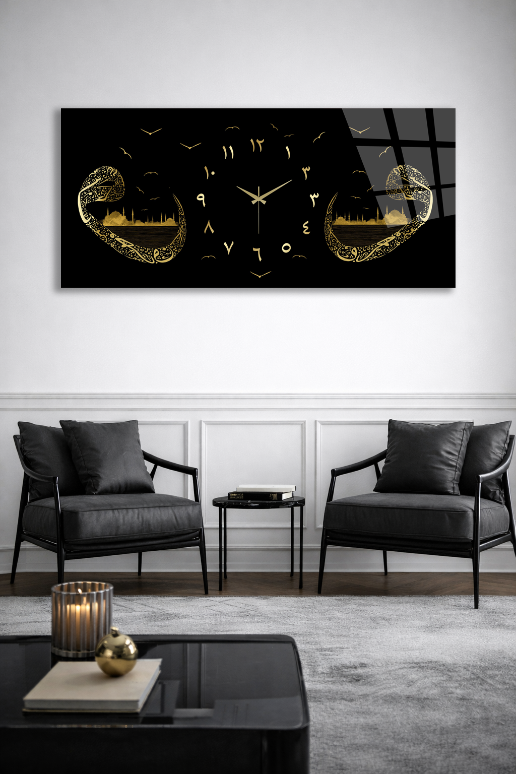 Hem şık bir tablo hem de işlevsel bir saat olarak tasarlanan bu özel ürün, ev ve ofis dekorasyonuna modern bir dokunuş katar.