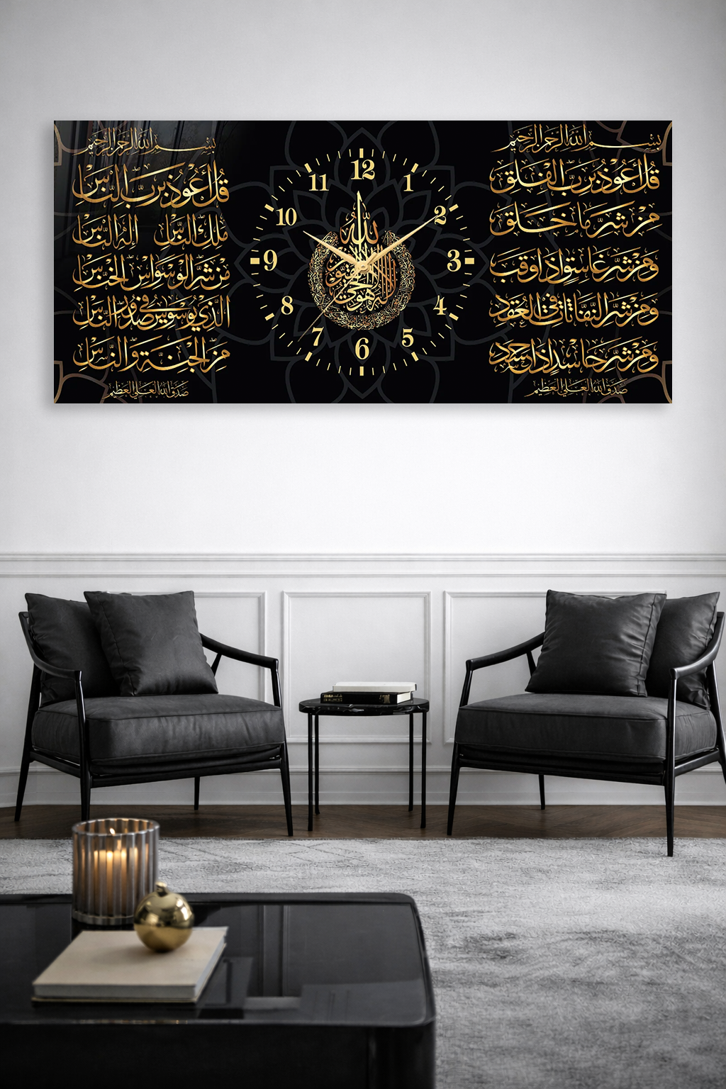KIRILMAZ CAM DUVAR SAATİ , HEM TABLO HEM SAAT ALTIN İSLAMİ HAT TASARIM EV OFİS HEDİYESİ