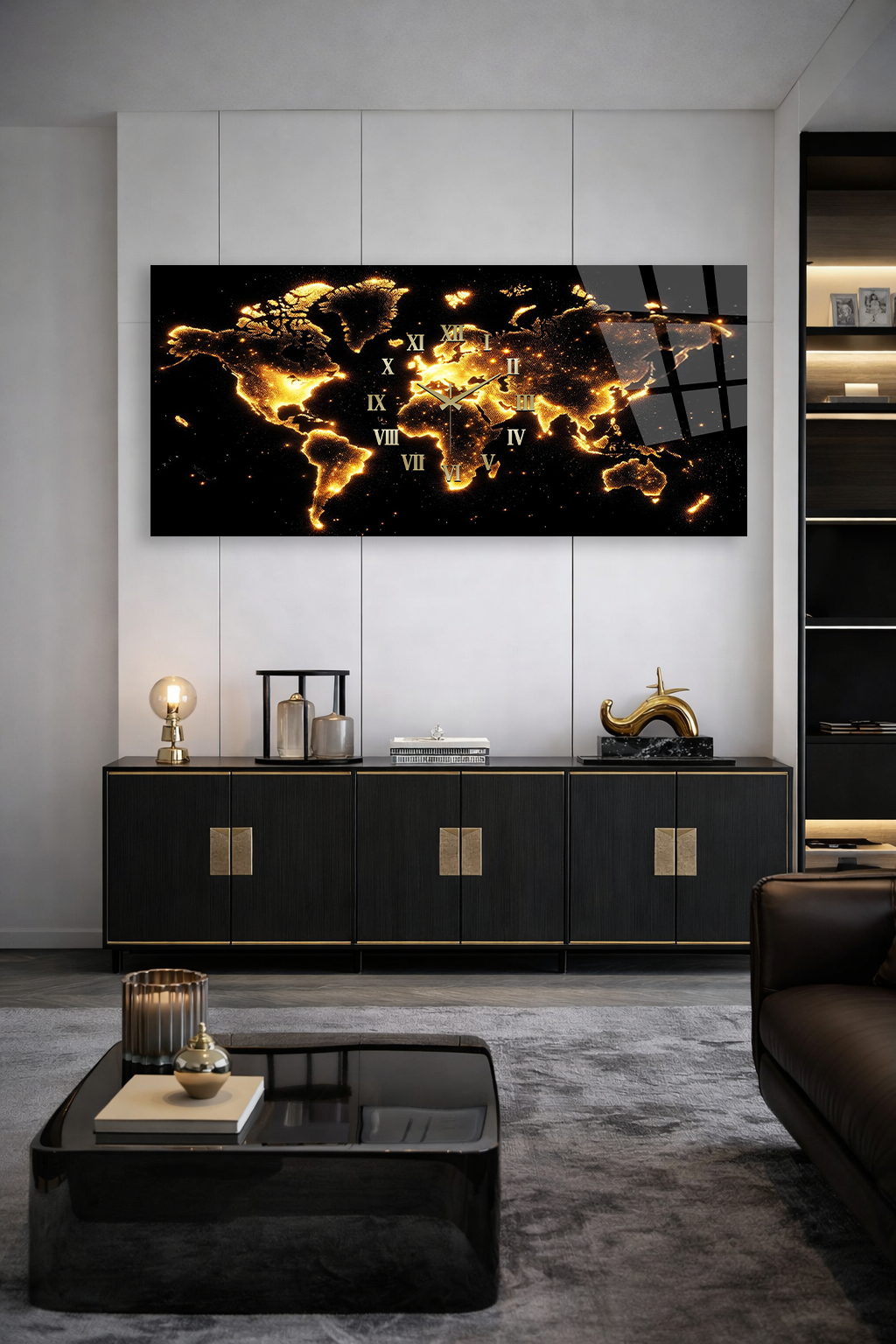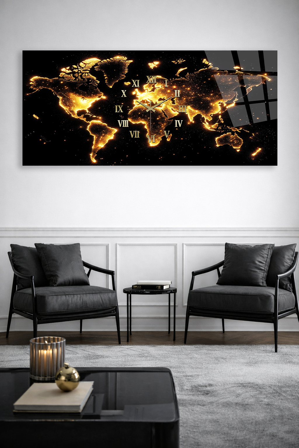Hem şık bir tablo hem de işlevsel bir saat olarak tasarlanan bu özel ürün, ev ve ofis dekorasyonuna modern bir dokunuş katar.