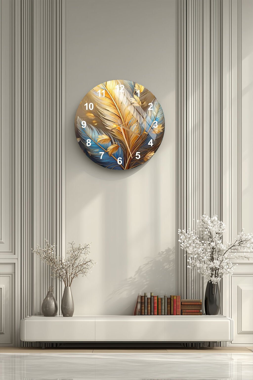 KIRILMAZ CAM DUVAR SAATİ, HEM TABLO HEM SAAT ALTIN TÜY DESENLİ ELEGANT TASARIM EV OFİS HEDİYESİ