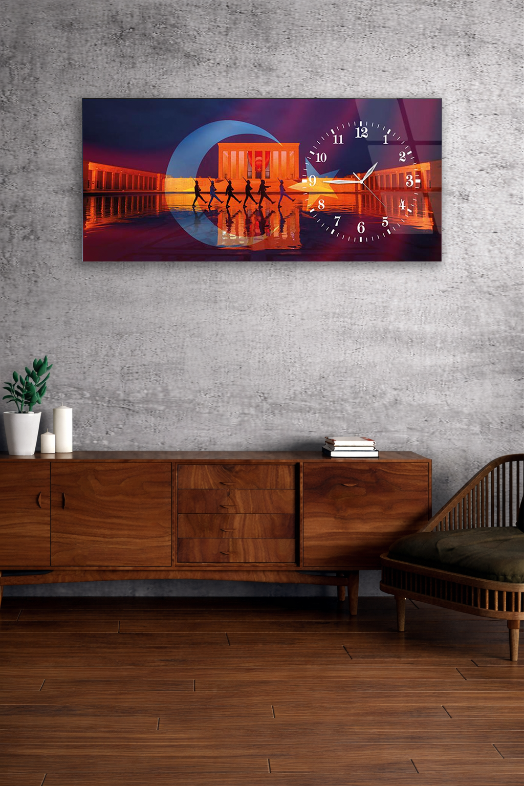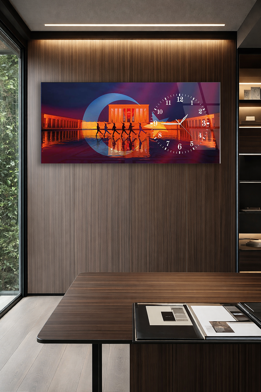 KIRILMAZ CAM DUVAR SAATİ , HEM TABLO HEM SAAT ANITKABİR GECE MANZARASI EV OFİS HEDİYESİ
