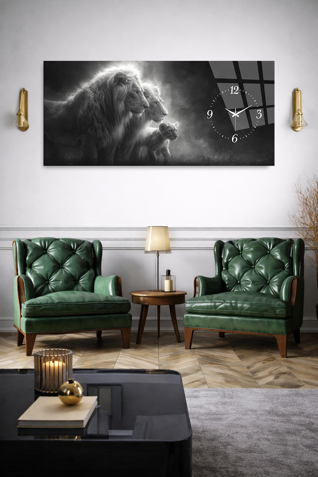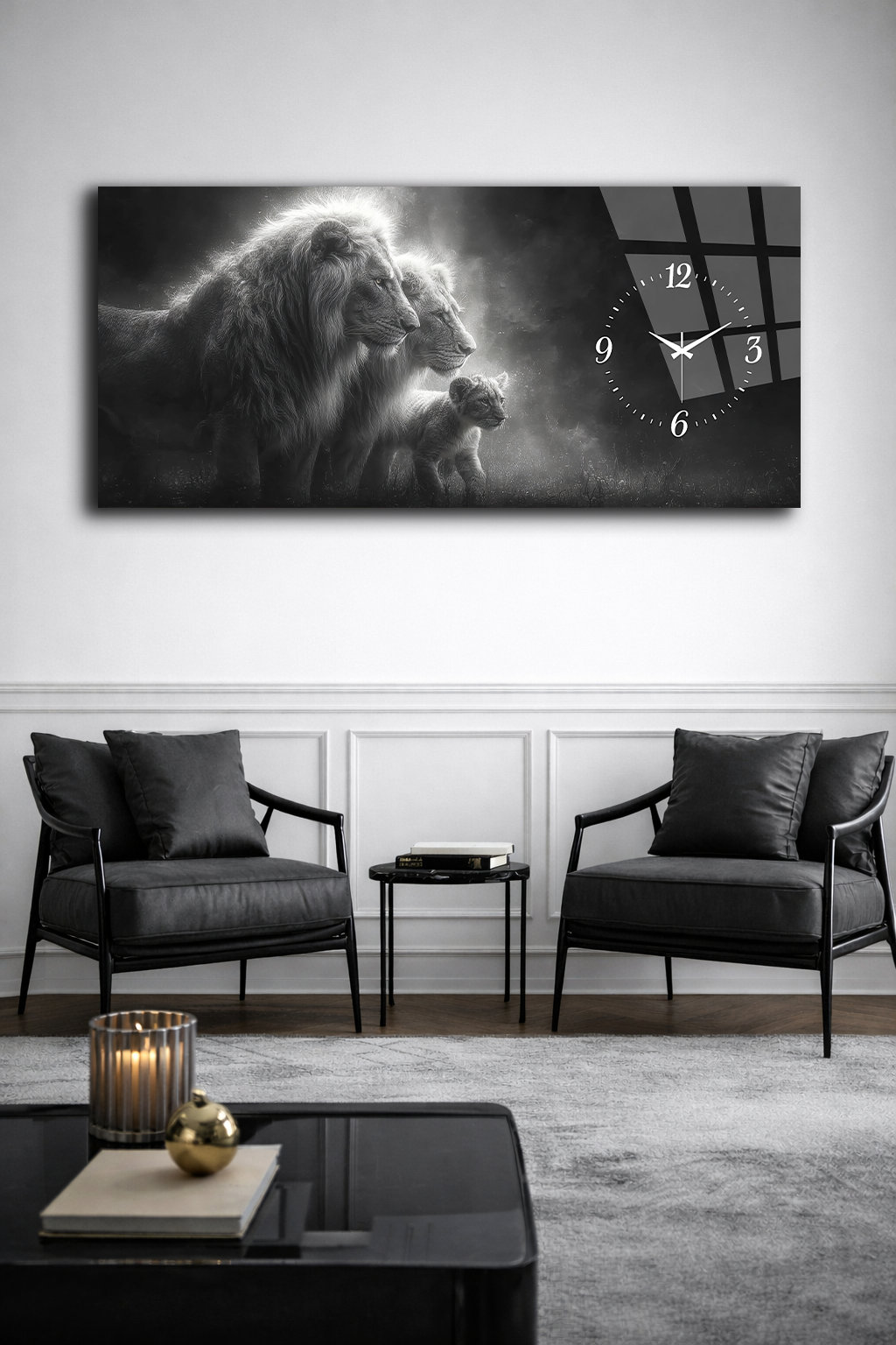 KIRILMAZ CAM DUVAR SAATİ , HEM TABLO HEM SAAT ASLAN AİLESİ GÜÇ TEMASI EV OFİS HEDİYESİ