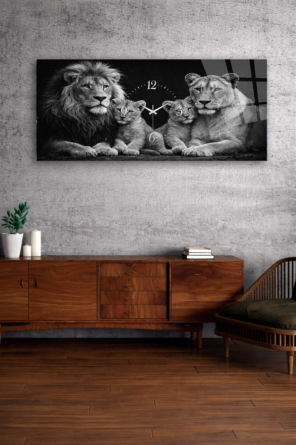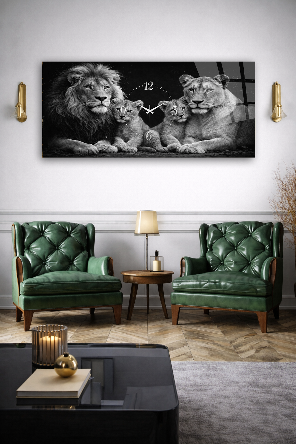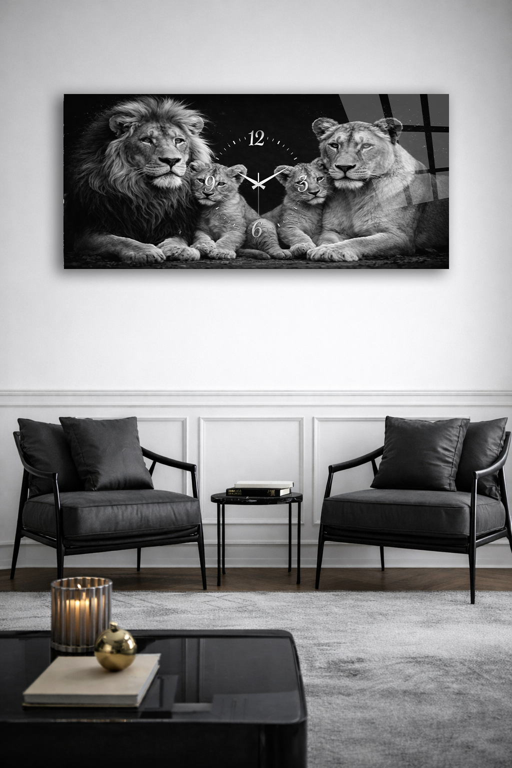 KIRILMAZ CAM DUVAR SAATİ , HEM TABLO HEM SAAT ASLAN AİLESİ SİYAH BEYAZ SANAT EV OFİS HEDİYESİ