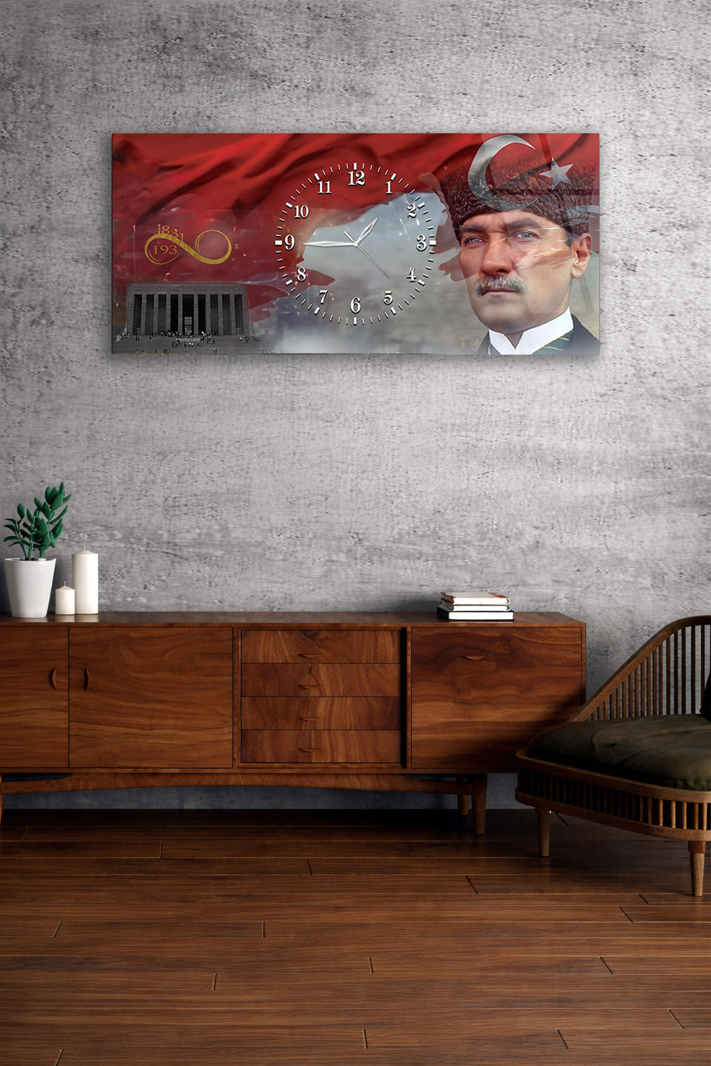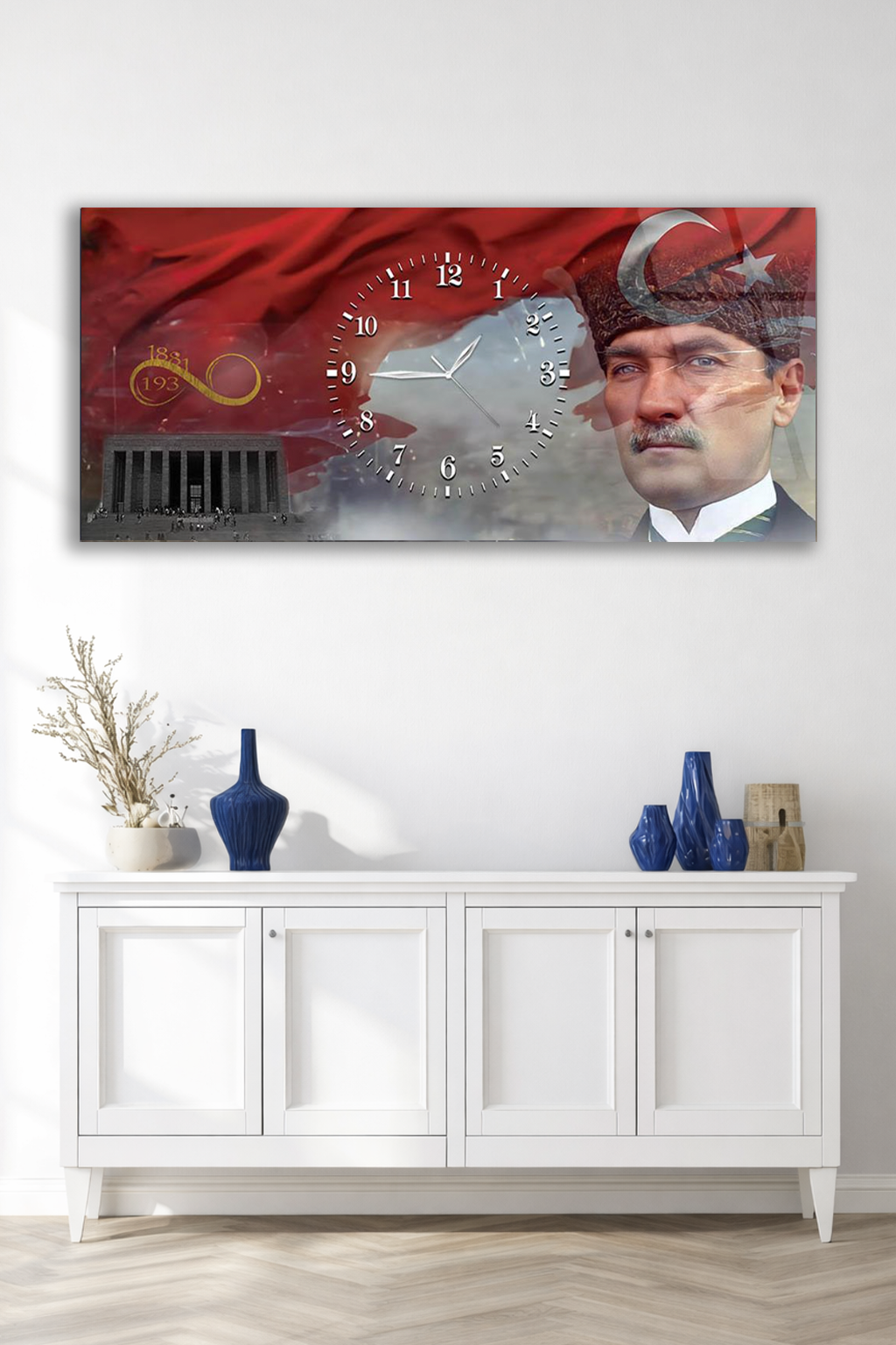 KIRILMAZ CAM DUVAR SAATİ , HEM TABLO HEM SAAT ATATÜRK ANITKABİR TÜRK BAYRAĞI EV OFİS HEDİYESİ